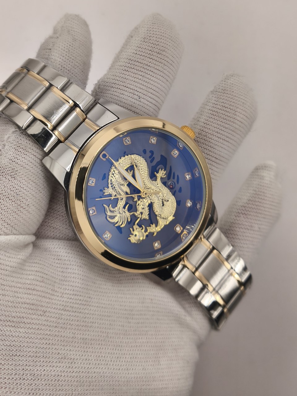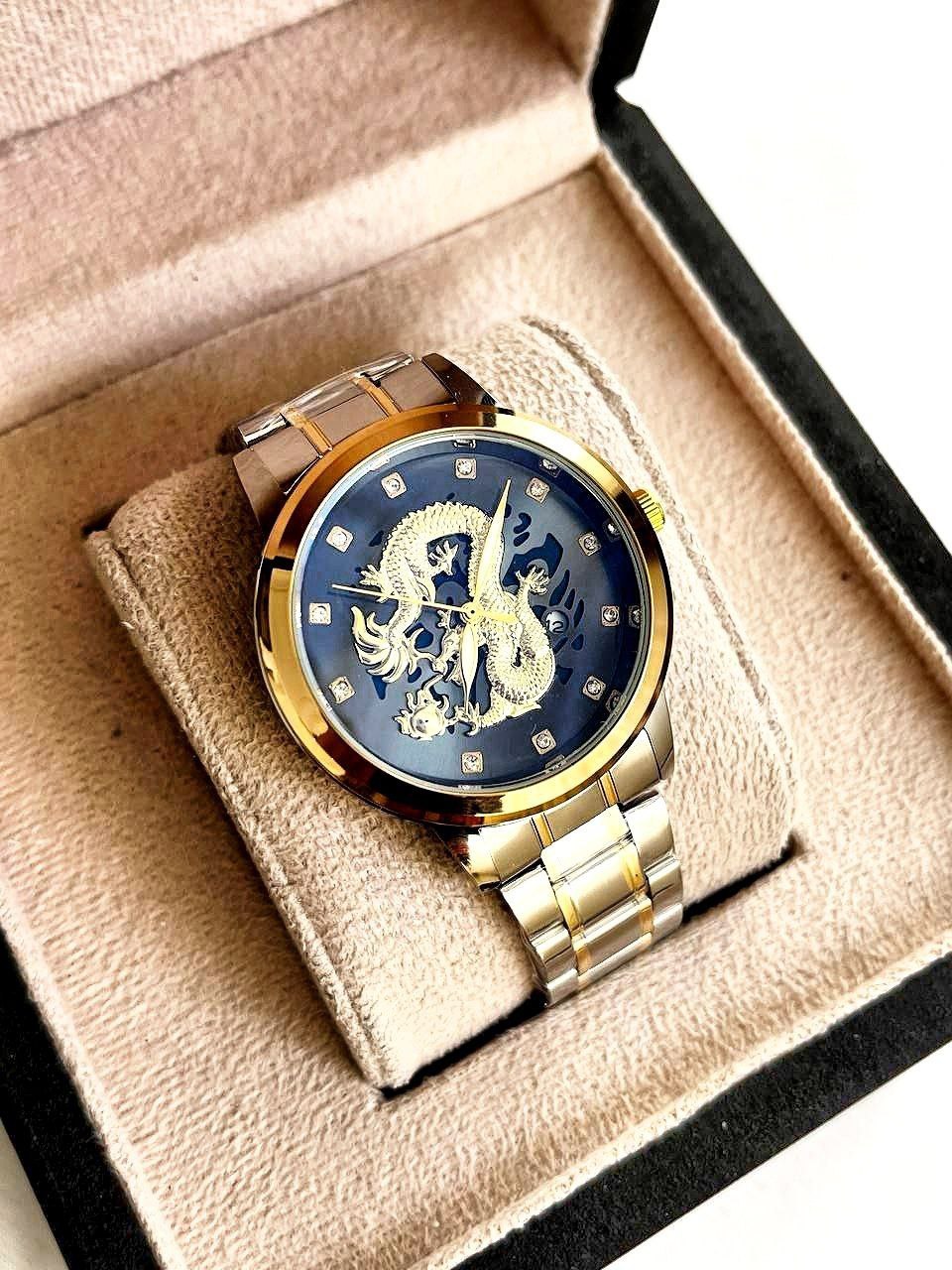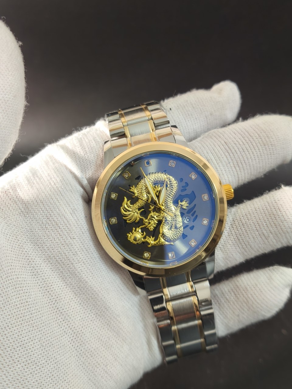 ساعت مچی مردانه دراگون طرح رولکس Dragon 🐉 انتخابی خاص برای آقایان خوشسلیقه است این ساعت با موتور کوارتز دقیق و بادوام ساخته شده و از استیل توپُر با رنگ ثابت و کیفیت درجه ۱ بهره میبرد طراحی تمام استیل همراه با قفل ضامندار و قفل کلیپسی امنیت و راحتی استفاده را تضمین میکند عقربههای شبنما و قابلیت تقویم دار آن کارایی بیشتری به همراه دارد و ویژگی ضد آب بودنش خیال شما را در استفاده روزمره راحت میسازد این محصول ویژه را میتوانید از فروشگاه اینترنتی روبی مد تهیه کنید.