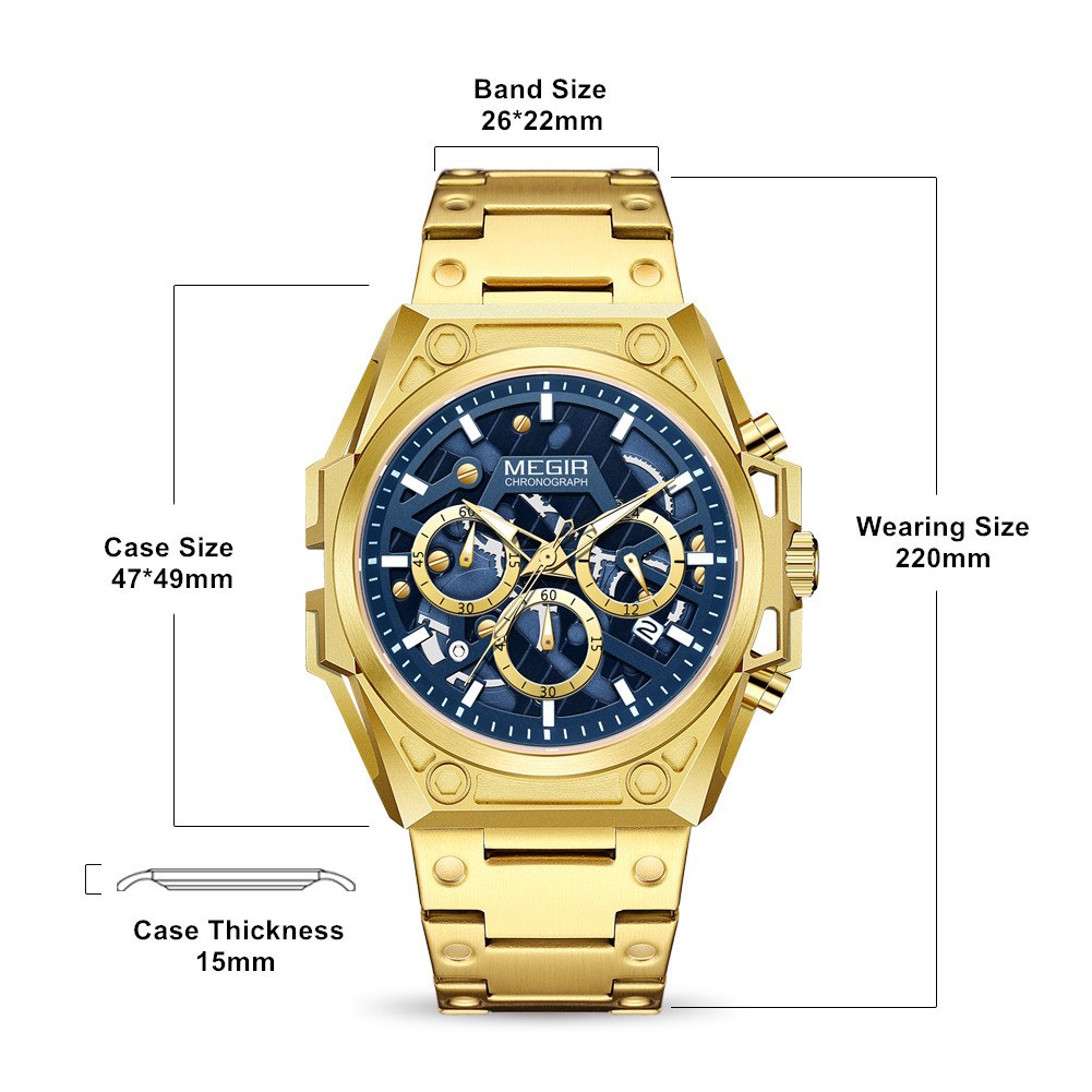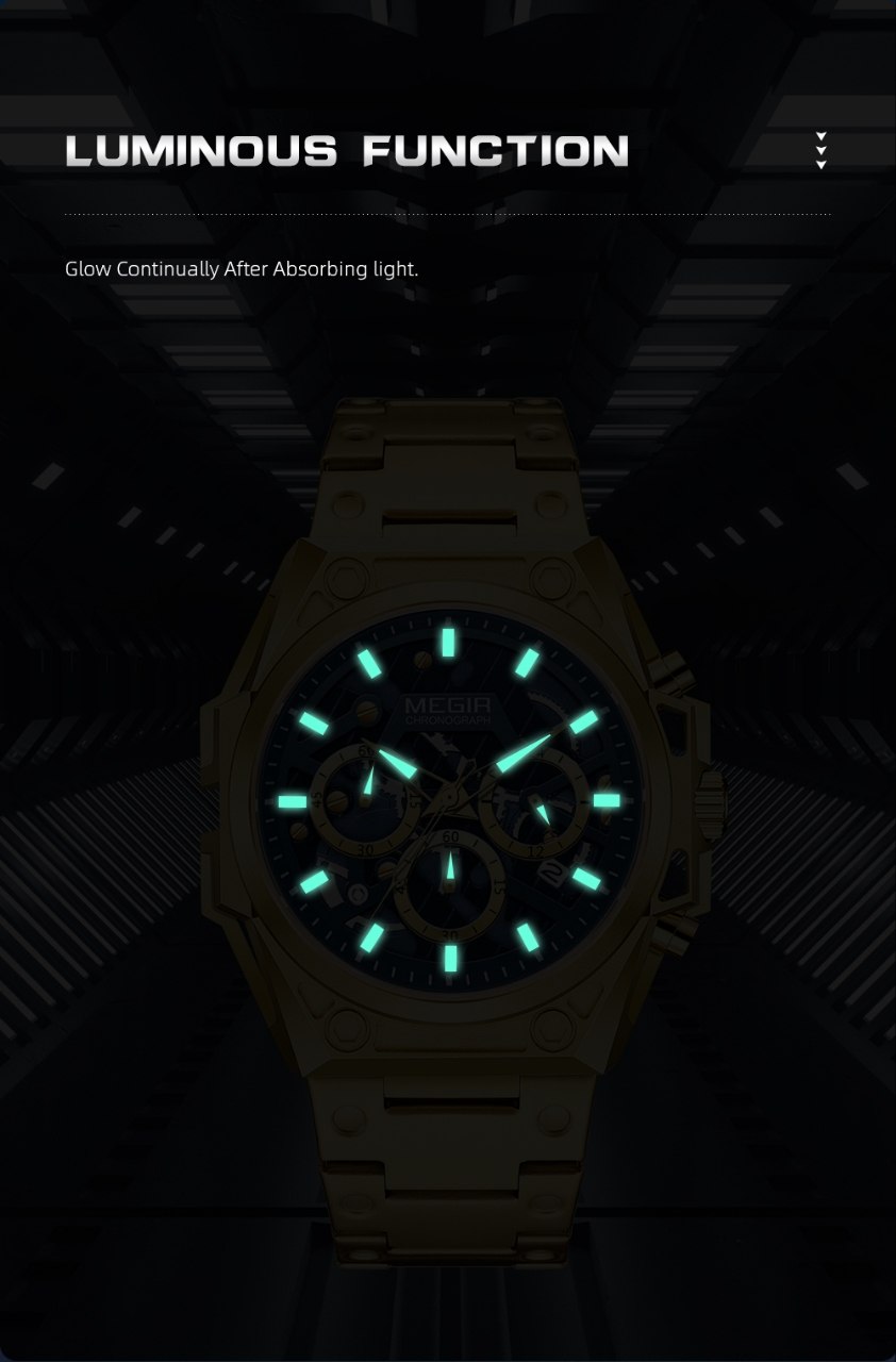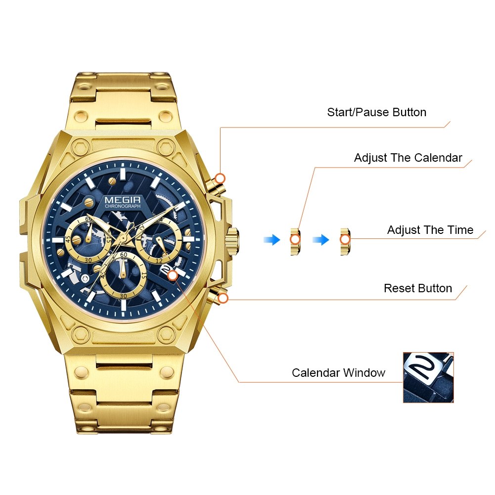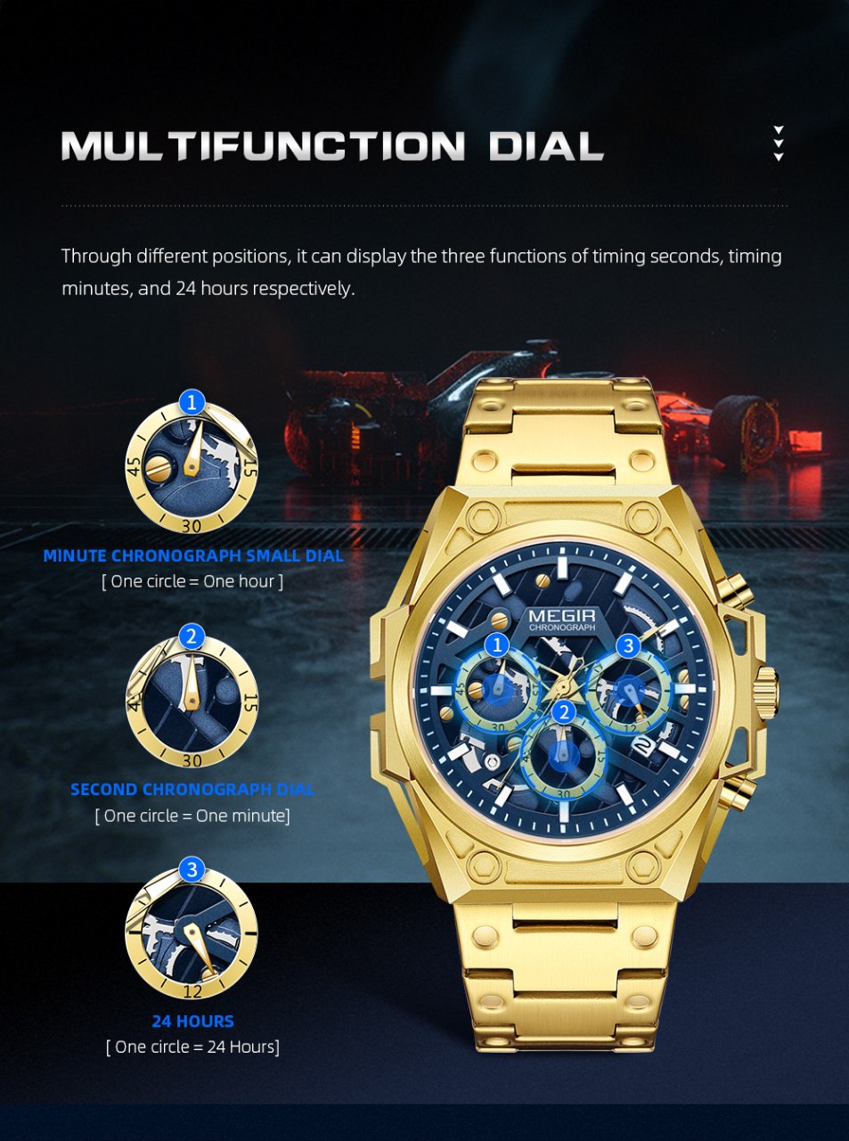 ساعت مچی کرنوگراف سه موتوره مردانه مگیر Megir مدل MS4220GGD-2N3 بند استیل