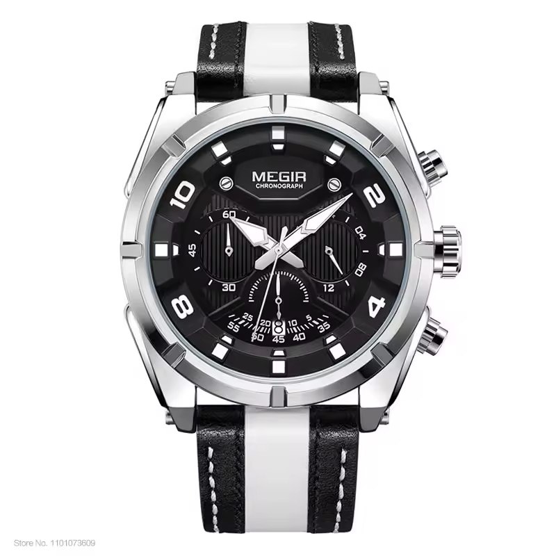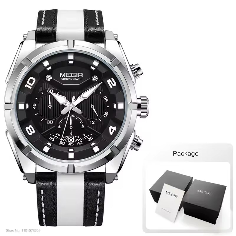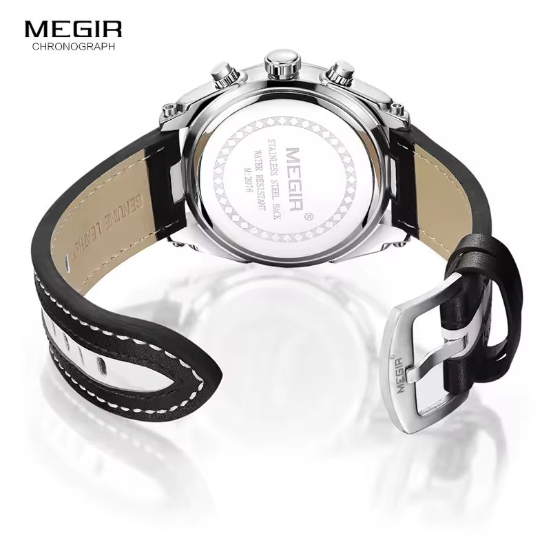 ساعت مچی کرنوگراف سه موتوره مردانه مگیر Megir مدل ML2076GBK-1 بند چرمی