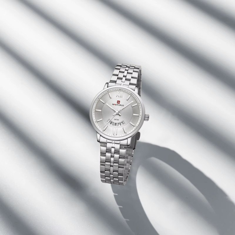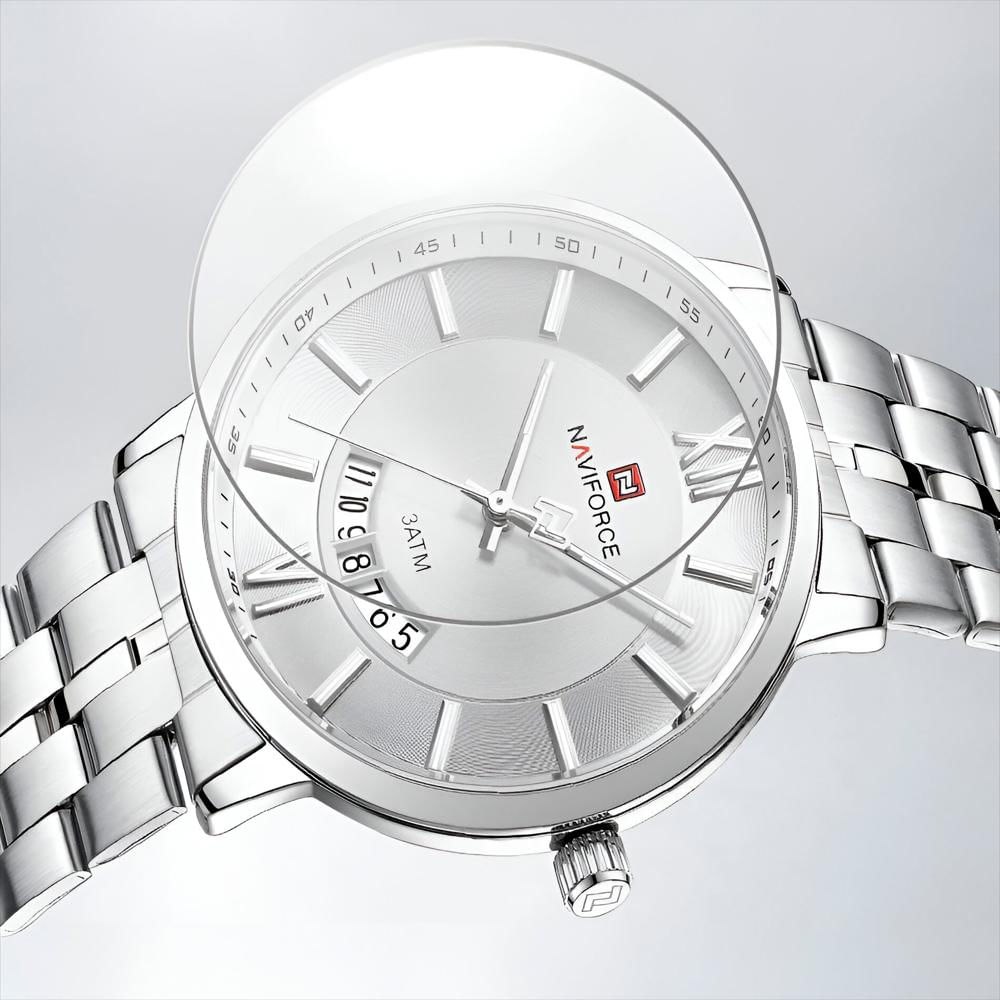 ساعت مچی عقربه ای مردانه نیوی فورس NAVIFORCE مدل Nf9238 با موتور ژاپن کوارتز یک انتخاب شیک و قابل اعتماد برای استفاده روزانه است ارجینال همراه با کارت گارانتی و جعبه عرضه میشود و با فرم صفحه دایره ای قاب استیل بند استیل رنگ ثابت و قفل کلیپسی ضامن دار ترکیبی از استحکام و زیبایی را ارائه میدهد این مدل دارای تقویم شیشه معدنی ضد خش بند ضد حساسیت پوستی و عقربه شب نما است و به لطف مقاومت بالا دربرابر آب برای استفاده روزمره کاملا مناسب است این محصول را میتوانید از فروشگاه اینترنتی روبی مد تهیه کنید.