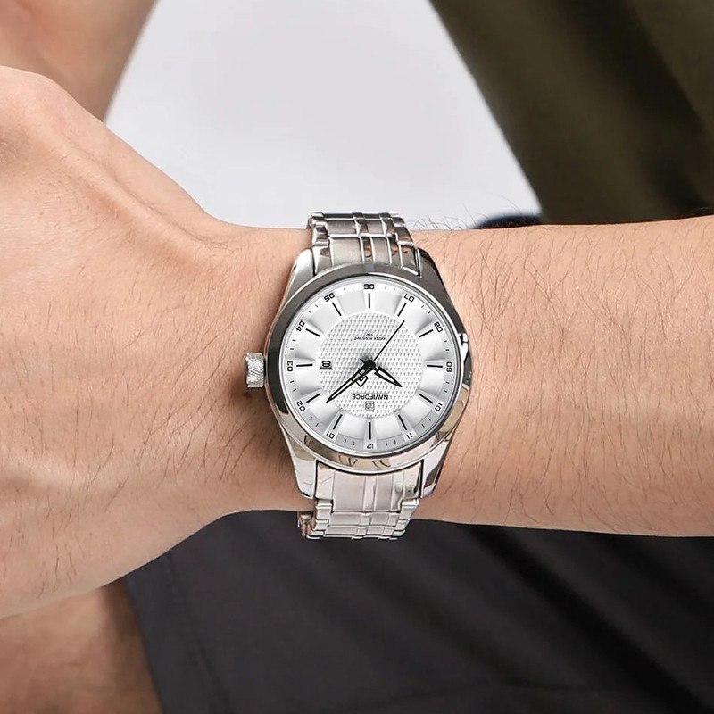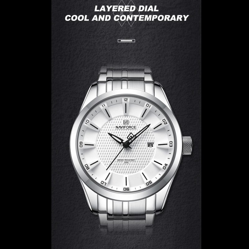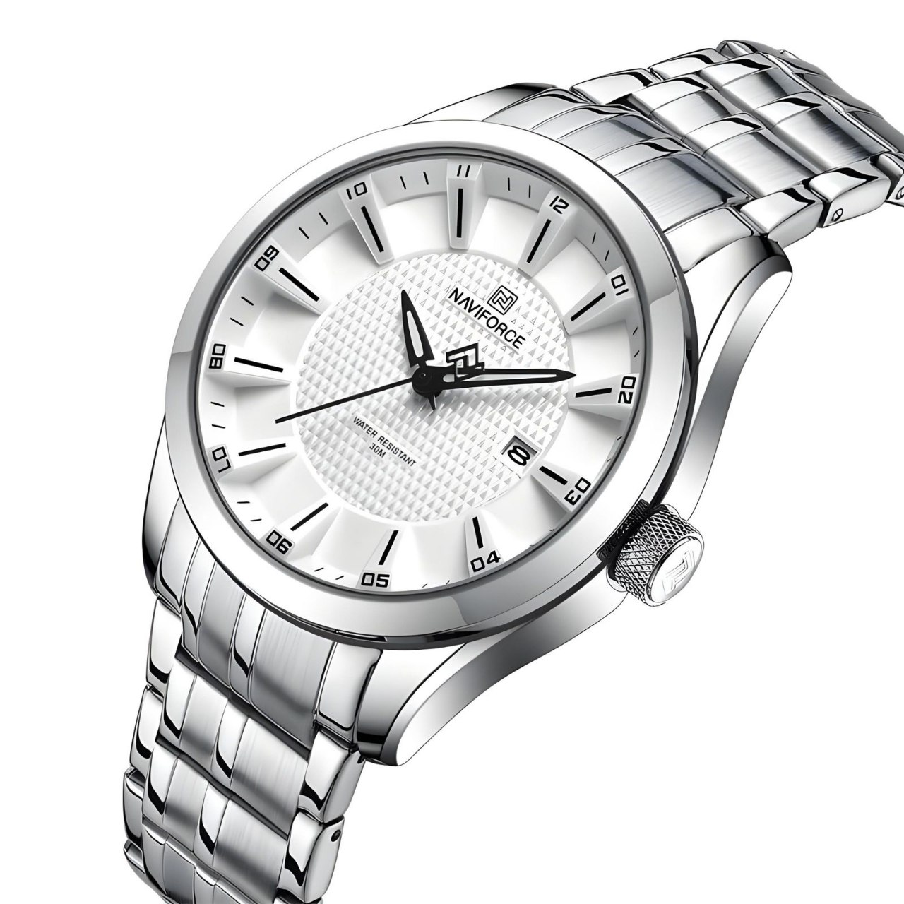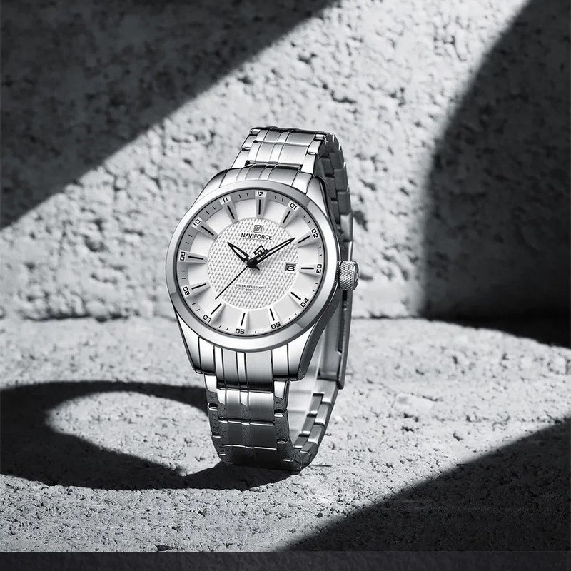 ساعت مچی عقربه ای مردانه نیوی فورس NAVIFORCE مدل Nf8032 یک گزینه ارجینال همراه با کارت گارانتی و جعبه است که با فرم صفحه دایره ای قاب استیل بند استیل رنگ ثابت و قفل کلیپسی ضامن دار ترکیبی از استحکام و زیبایی را ارائه میدهد این مدل مجهز به موتور ژاپن تقویم شیشه معدنی ضد خش بند ضد حساسیت پوستی و عقربه شب نما است و به لطف مقاومت بالا دربرابر آب برای استفاده روزمره کاملا مناسب محسوب میشود این محصول را میتوانید از فروشگاه اینترنتی روبی مد تهیه کنید.