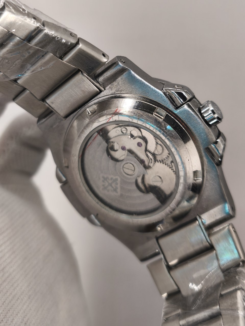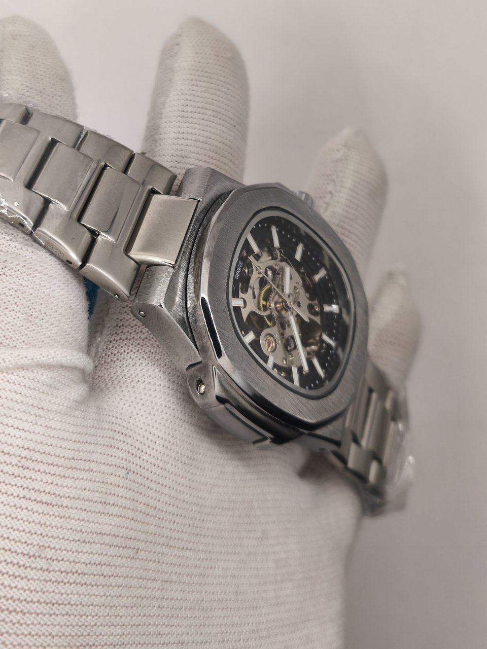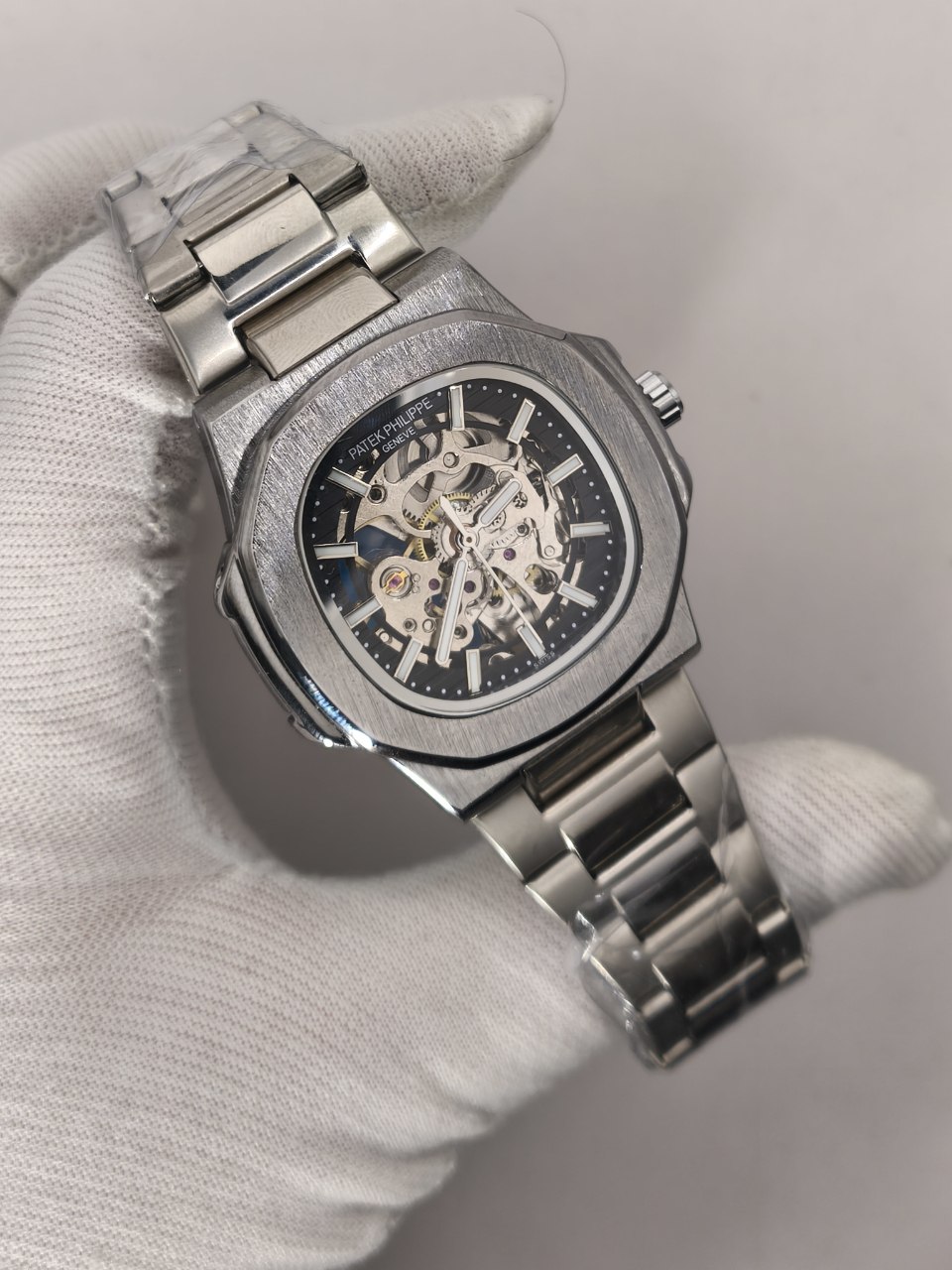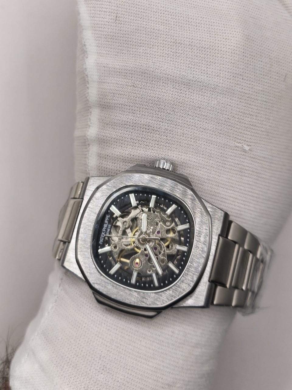 ساعت مچی مردانه اتوماتیک پتک فیلیپ اسکلتون PATEK PHILIPPE با طراحی چرخ دنده متحرک و صفحه پشت و رو نمایان یک مدل لوکس و چشمگیر برای استایل خاص است این ساعت با موتور اتومات بدون نیاز به باطری شیشه سافایر صفحه ضد خط و خش و پشت شیشه ای لنگر دار ساخته شده تا دوام و جذابیت را همزمان ارائه دهد بند ضد حساسیت پوستی رنگ ثابت قفل جدید پروانه ای و مقاومت بالا دربرابر آب کیفیت آن را کامل میکند این مدل خاص را میتوانید از فروشگاه اینترنتی روبی مد تهیه کنید.