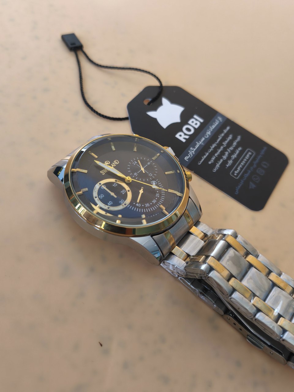 ساعت مچی مردانه سویسلند Swisland طرح کرنو تقویم دار با طراحی شیک و عملکرد دقیق انتخابی مناسب برای آقایان خوشسلیقه است این ساعت مجهز به موتور باکیفیت تایوان بوده و روزشمار ماه و هفته را به صورت کاربردی نمایش میدهد حک برند روی قاب جلوهای خاص ایجاد کرده و شیشه کریستال مقاوم آن دوام بالایی دارد بند ضد حساسیت پوستی راحتی استفاده طولانی مدت را تضمین میکند و قفل استیل کلیپسی فشاری امنیت و سهولت بیشتری فراهم میآورد این ساعت ضدآب در حد تماس روزمره با آب بوده و ترکیبی از زیبایی و کارایی را ارائه میدهد محصولی ارزشمند که از فروشگاه اینترنتی روبی مد قابل تهیه است.