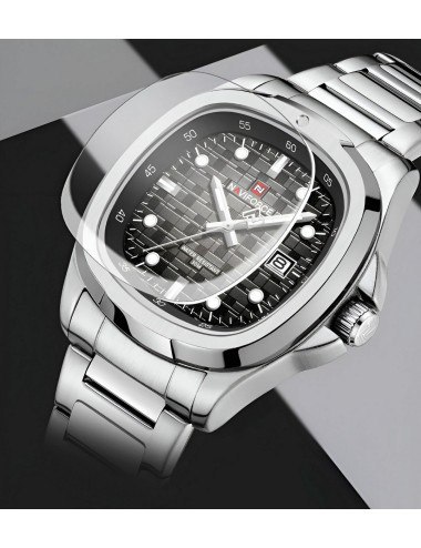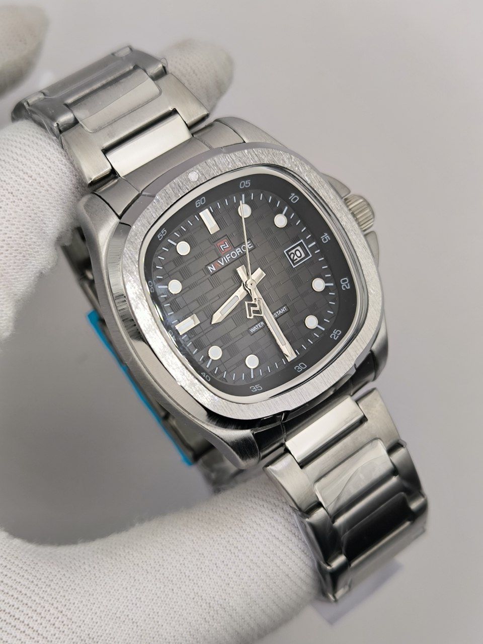 این ساعت مچی عقربهای مردانه نیوی فورس NAVIFORCE مدل Nf9240 اصلی با طراحی خاص و صفحه مربع طرح پتک در فروشگاه اینترنتی روبی مد عرضه میشود و با موتور ژاپنی دقیق و قابلیت تقویم عملکردی قابل اعتماد ارائه میدهد و قاب استیل مقاوم همراه با بند استیل توپُر رنگ ثابت دوام بالایی ایجاد میکند و شیشه معدنی ضد خش از صفحه محافظت میکند و بند ضد حساسیت پوستی راحتی استفاده روزانه را بالا میبرد و عقربه شبنما خوانایی ساعت را در نور کم حفظ میکند و قفل کلیپسی ضامندار امنیت استفاده را تضمین میکند و این مدل ضد آب بوده و همراه با جعبه و کارت گارانتی اورجینال ارائه میشود تا یک انتخاب شیک و ماندگار برای استایل روزمره و رسمی باشد.