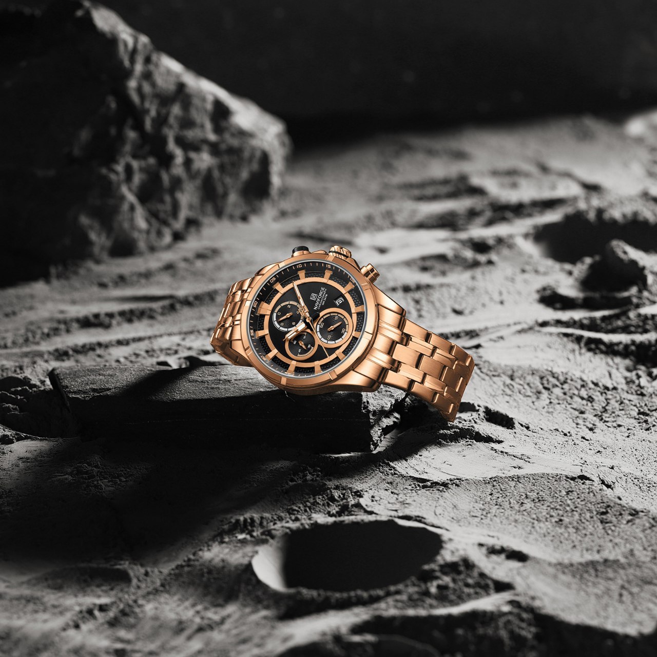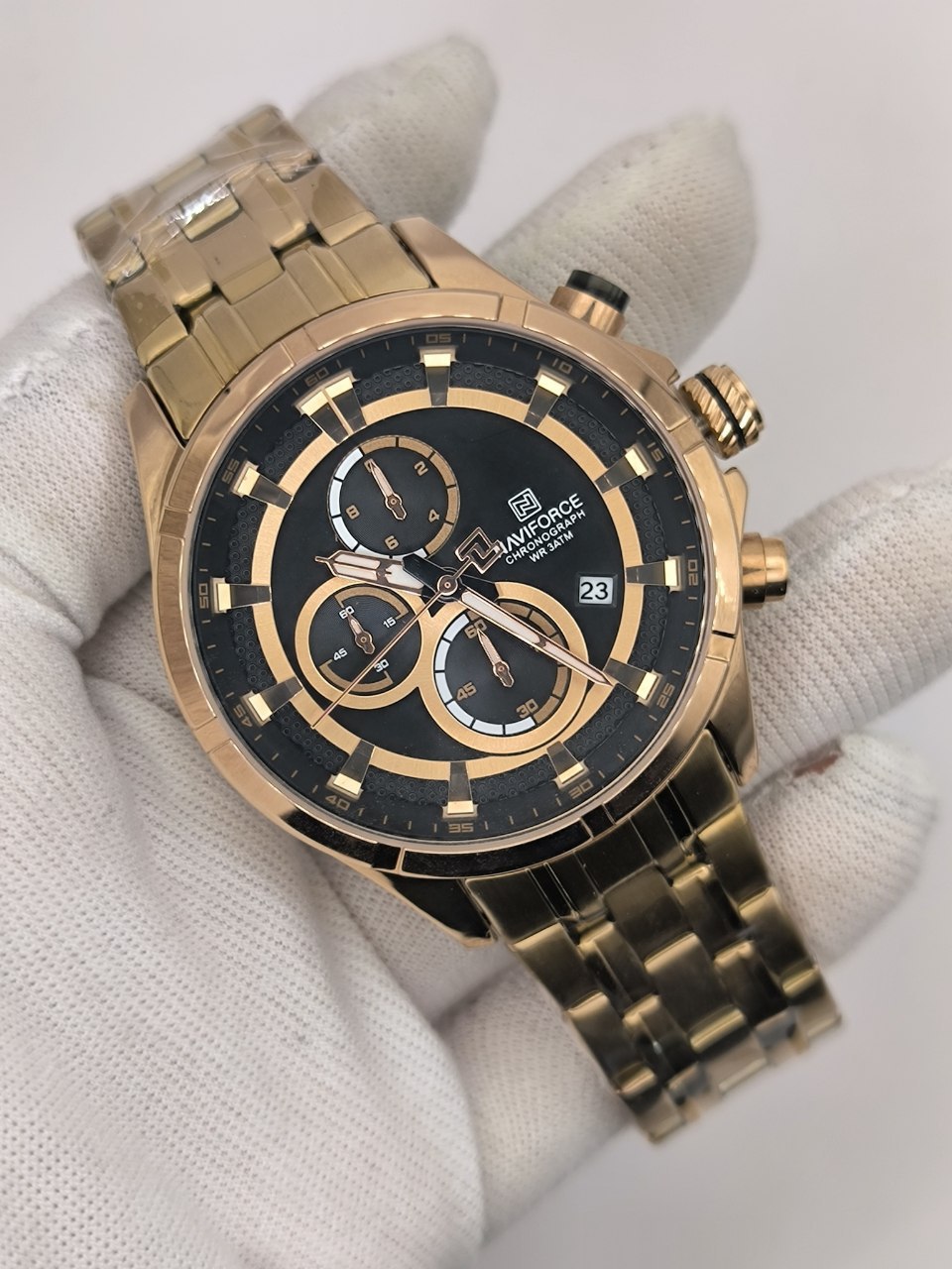 این مدل ساعت مچی کرنوگراف مردانه نیوی فورس NAVIFORCE مدل Nf8046 اورجینال رزگُلد با طراحی لوکس و کیفیت ساخت بالا در فروشگاه اینترنتی روبی مد عرضه میشود و با سه موتوره کرنوگراف دقیق و موتور ژاپنی عملکردی قابل اعتماد ارائه میدهد و به لطف قاب استیل و بند استیل توپُر با رنگ ثابت دوام بسیار خوبی دارد و شیشه معدنی ضد خش از صفحه دایرهای آن محافظت میکند و وجود عقربه شبتاب و تقویم کاربری روزمره را راحتتر میسازد و بند ضد حساسیت پوستی همراه با قفل کلیپسی ضامندار راحتی و امنیت استفاده را تضمین میکند و این مدل ضد آب بوده و همراه با کارت گارانتی و جعبه اورجینال ارائه میشود تا یک انتخاب مطمئن و شیک برای استایل روزانه و رسمی باشد.
