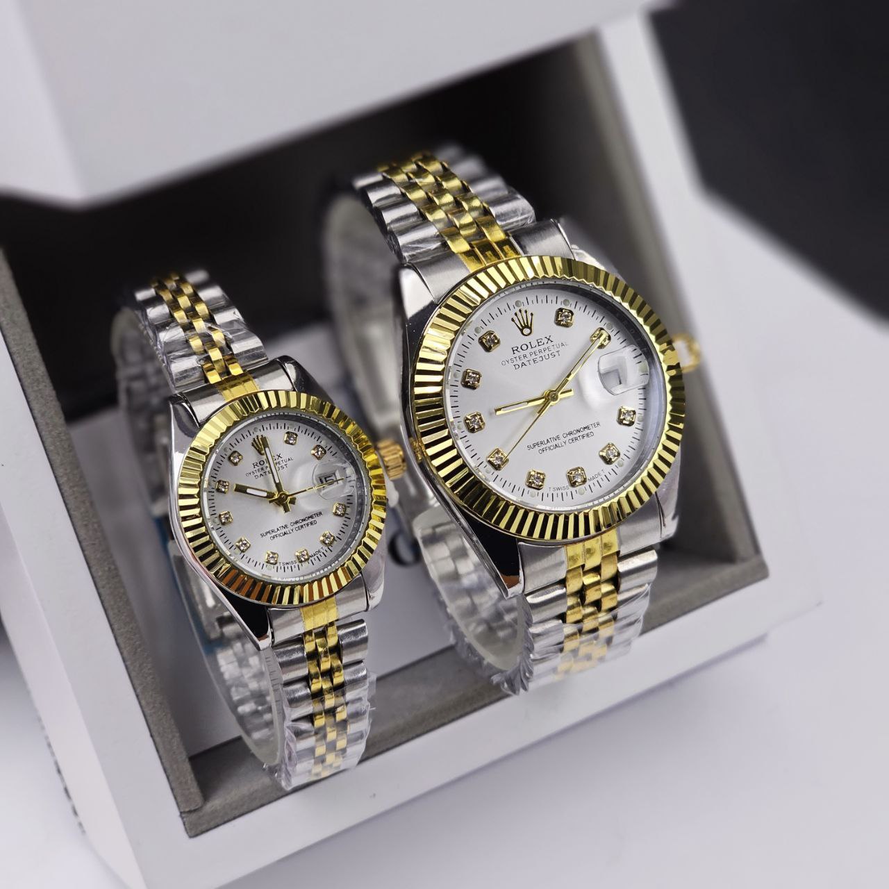ست ساعت رولکس ديت جاست زنانه و مردانه ROLEX Date just کيفيت عالي نقره اي
