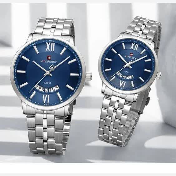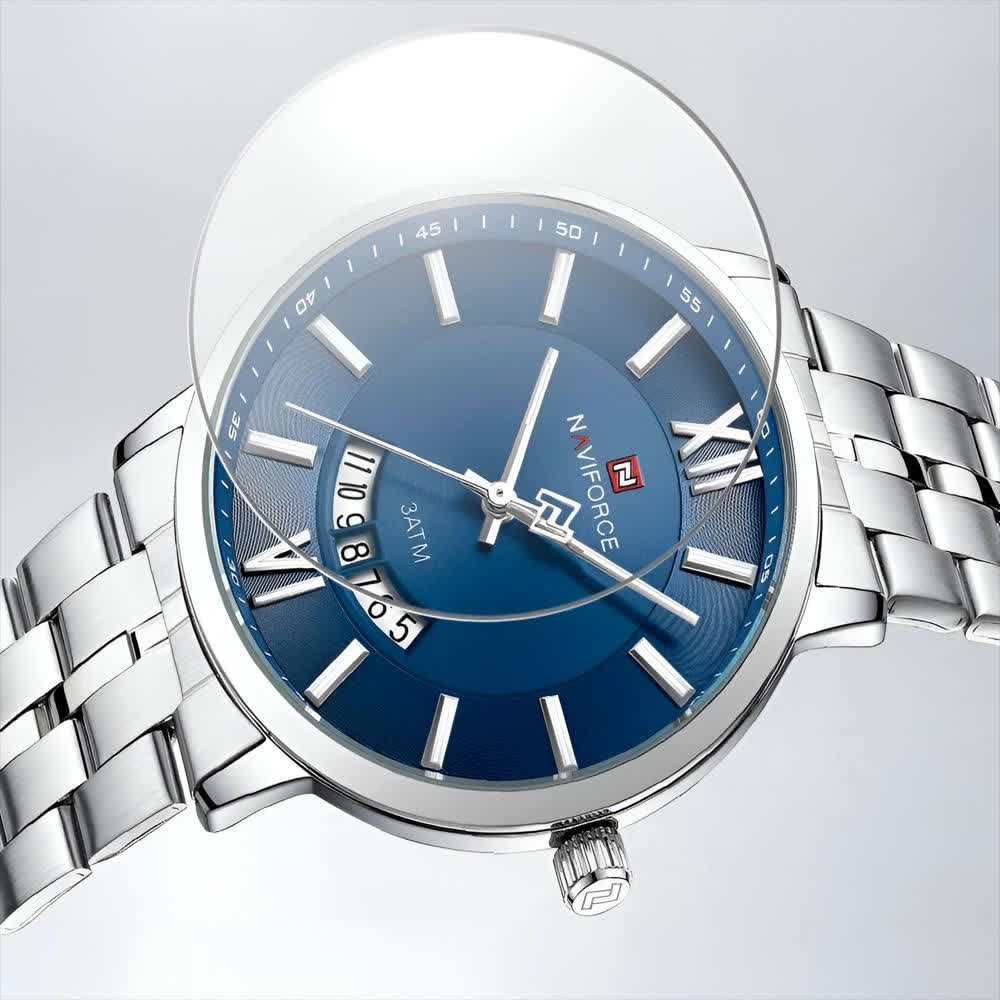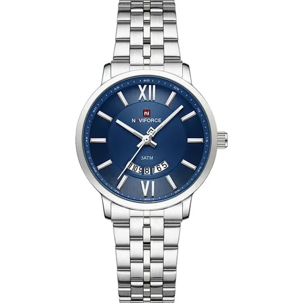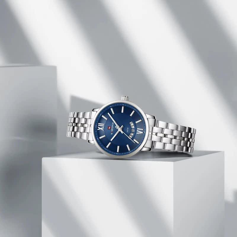 ساعت مچی عقربه ای زنانه نیوی فورس NAVIFORCE مدل NF9238 با موتور ژاپن کوارتز و صفحه آبي گزینه ای شیک و بادوام است که توسط فروشگاه اینترنتی روبی مد ارائه می شود. این ساعت ارجینال با کارت گارانتی و جعبه دارای قاب و بند استیل رنگ ثابت با طراحی زیبا و فرم صفحه دایره ای می باشد. شیشه معدنی ضد خش به همراه عقربه شب نما و تقویم دار بودن کارایی بالایی در استفاده روزمره ایجاد می کند. بند ضد حساسیت پوستی با قفل کلیپسی ضامن دار راحتی و امنیت را فراهم می سازد. این مدل ضد آب بوده و مناسب هر سلیقه و استایلی طراحی شده است.