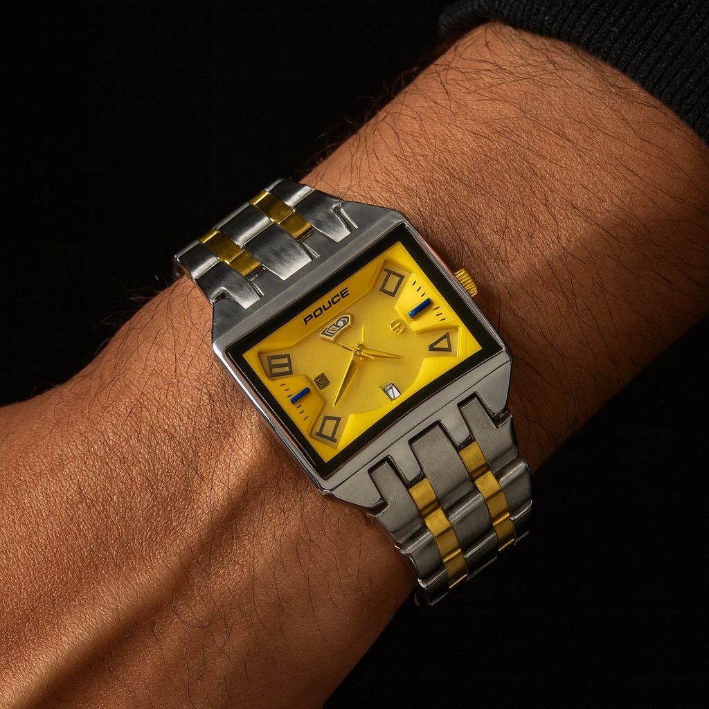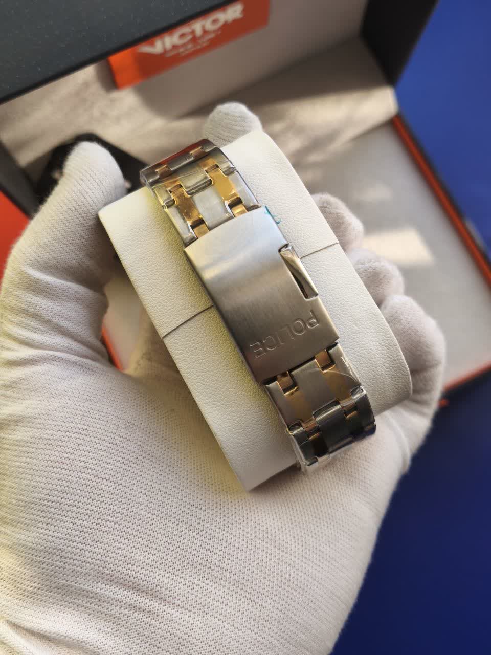 ساعت مچی مردانه ایتالیایی پلیس POLICE استیل سیلور با طراحی فوق العاده خاص و منحصر به فرد، انتخابی بینظیر برای افرادی با سلیقه خاص است. این ساعت با بند نقرهای رگه طلایی و صفحه طلایی جذاب، تقویم دار چند موتوره، عقربه شب نما، و موتور شرکتی با کیفیت درجه یک، امکانات عالی را به شما میدهد. ضد آب، شیشه معدنی ضد خش، بند استیل ضد زنگ، و بند ضد حساسیت پوستی از ویژگیهای آن هستند. همچنین فرم صفحه مربع خاص و بند توپُر سنگین، این ساعت را تبدیل به یک استایل حرفهای و شیک میکند. این ساعت به همراه جعبه شیک در فروشگاه اینترنتی روبی مد موجود است.