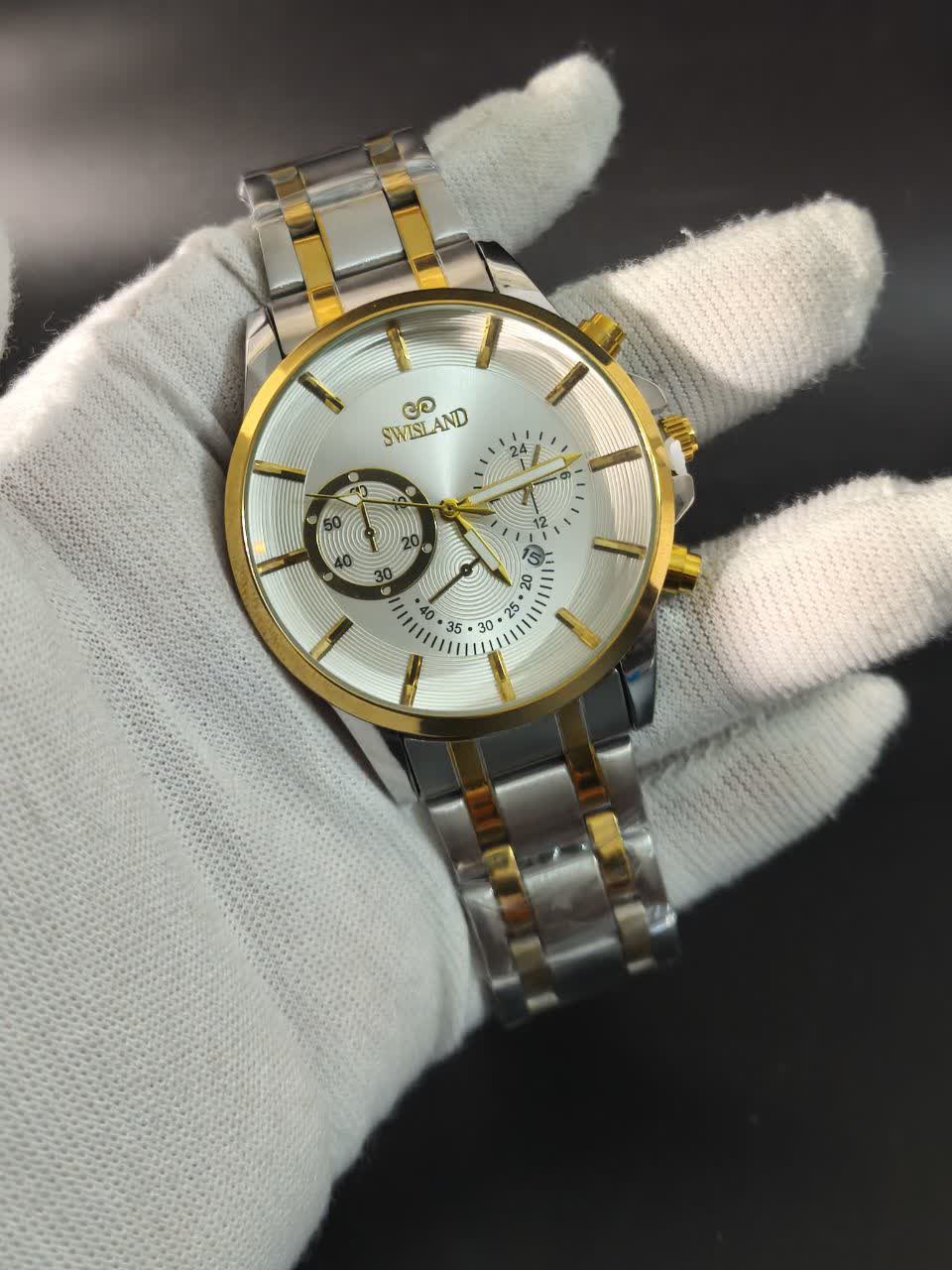 ساعت مچی مردانه سوئیس لند Swisland طرح کرنو با روزشماری ماه و هفته، یکی از بهترینهای این برند است. این ساعت با بند نقرهای رگه طلایی و صفحه سفید، موتور باکیفیت تایوان، شیشه کریستال مقاوم و حک برند روی قاب، طراحی بینظیری دارد. بند ضد حساسیت پوستی و قفل استیل کلیپسی فشاری آن، راحتی و استحکام را تضمین میکند. ضد آب بودن در حد تماس روزمره با آب و همراه داشتن جعبه هدیه، این ساعت را به انتخابی مناسب برای هر مناسبتی تبدیل میکند. برای خرید این ساعت شیک، به فروشگاه اینترنتی روبی مد مراجعه کنید.