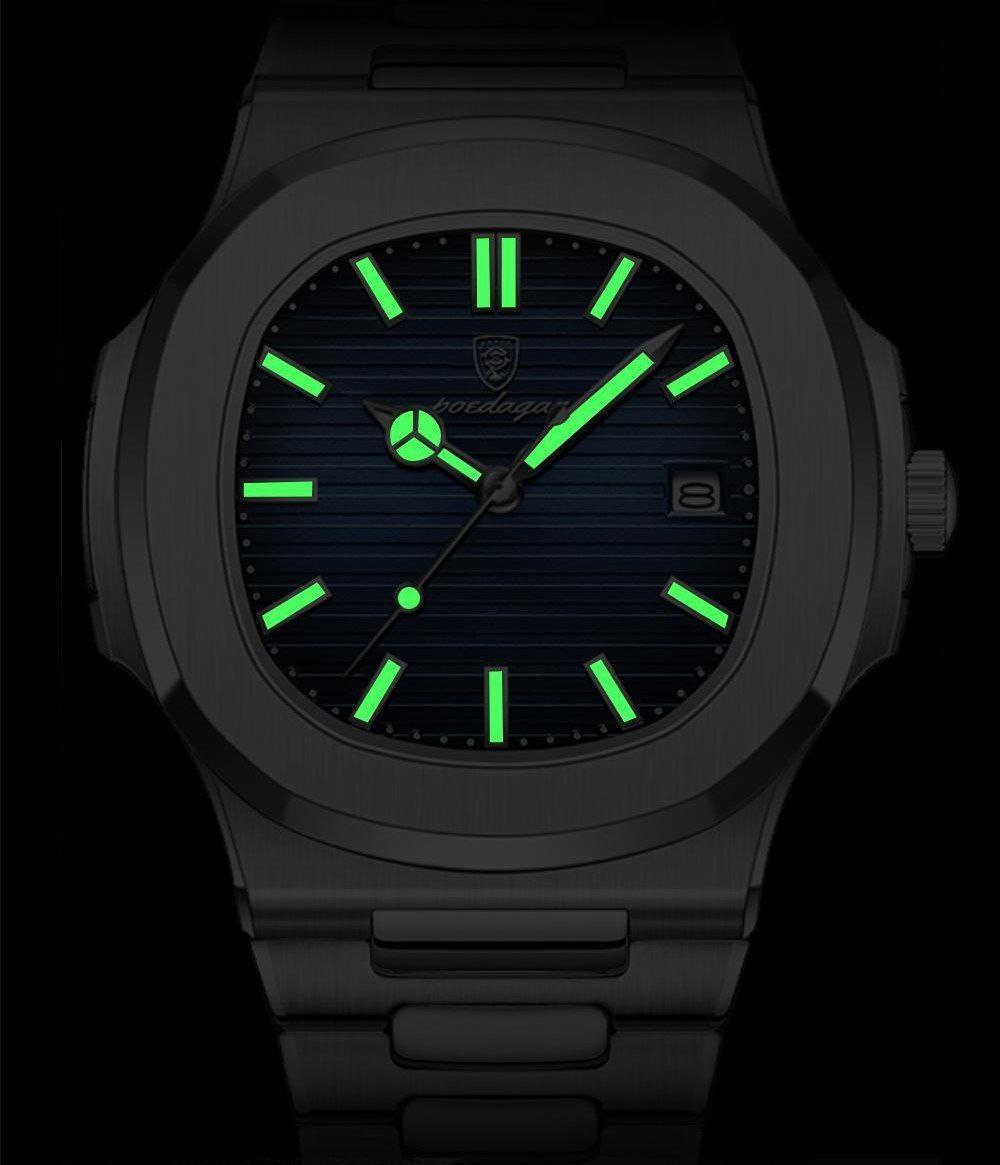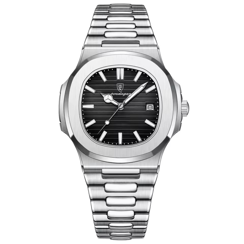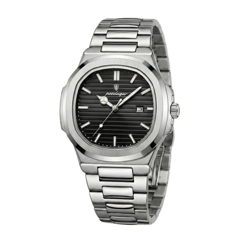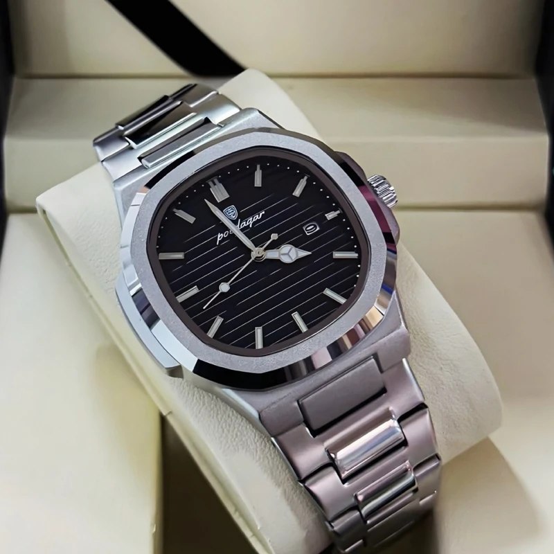 ساعت مچی مردانه پوداگار مربعی خاص poedagar با بند استیل انتخابی شیک و قدرتمند برای آقایان خاص پسند است. این مدل ارجینال از برند اصلی پوداگار با کیفیت فوق العاده عرضه میشود و دارای بند استیل تو پر رنگ ثابت و ضد حساسیت پوستی است. موتور کوارتز دقیق صفحه شب نما تقویم دار و شیشه معدنی ضد خط و خش کارایی و دوام بالایی را تضمین میکند. طراحی کاملا مقاوم در برابر آب به همراه قفل پروانه ای جدید استفاده روزمره را آسان و مطمئن میسازد. فروشگاه اینترنتی روبی مد این ساعت را فوق العاده به معنای واقعی کلمه برای شما فراهم کرده است.