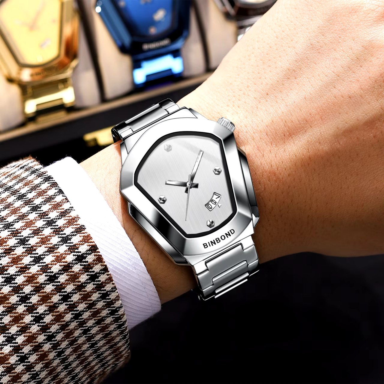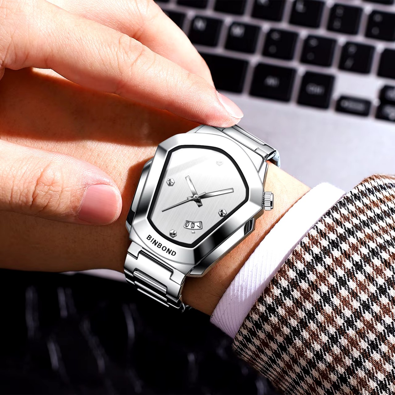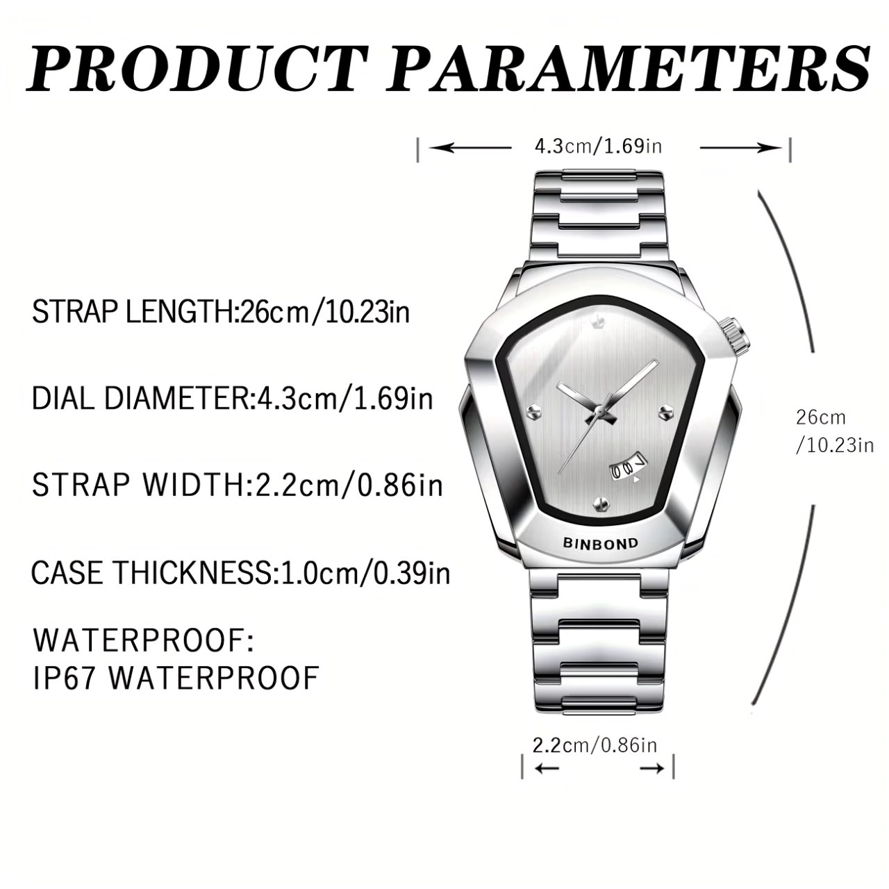 ساعت مچی مردانه مدل بوگاتی برند بین باند BIN BOND با بند استیل و صفحه سفید یک کار خاص مثل بوگاتی است. این مدل شرکتی اوریجینال با موتور کوارتز دارای روزشمار شیشه معدنی ضد خش رفلکس دار و کاملا مقاوم در برابر آب میباشد. بند استیل فولادی ضد حساسیت پوستی با قفل دو پروانه در کنار قطر صفحه ۴۵ میل و ضخامت ۱۱ میل طراحی قدرتمند آن را کامل کرده و فروشگاه اینترنتی روبی مد این ساعت را همراه با کارت گارانتی ارائه میدهد.