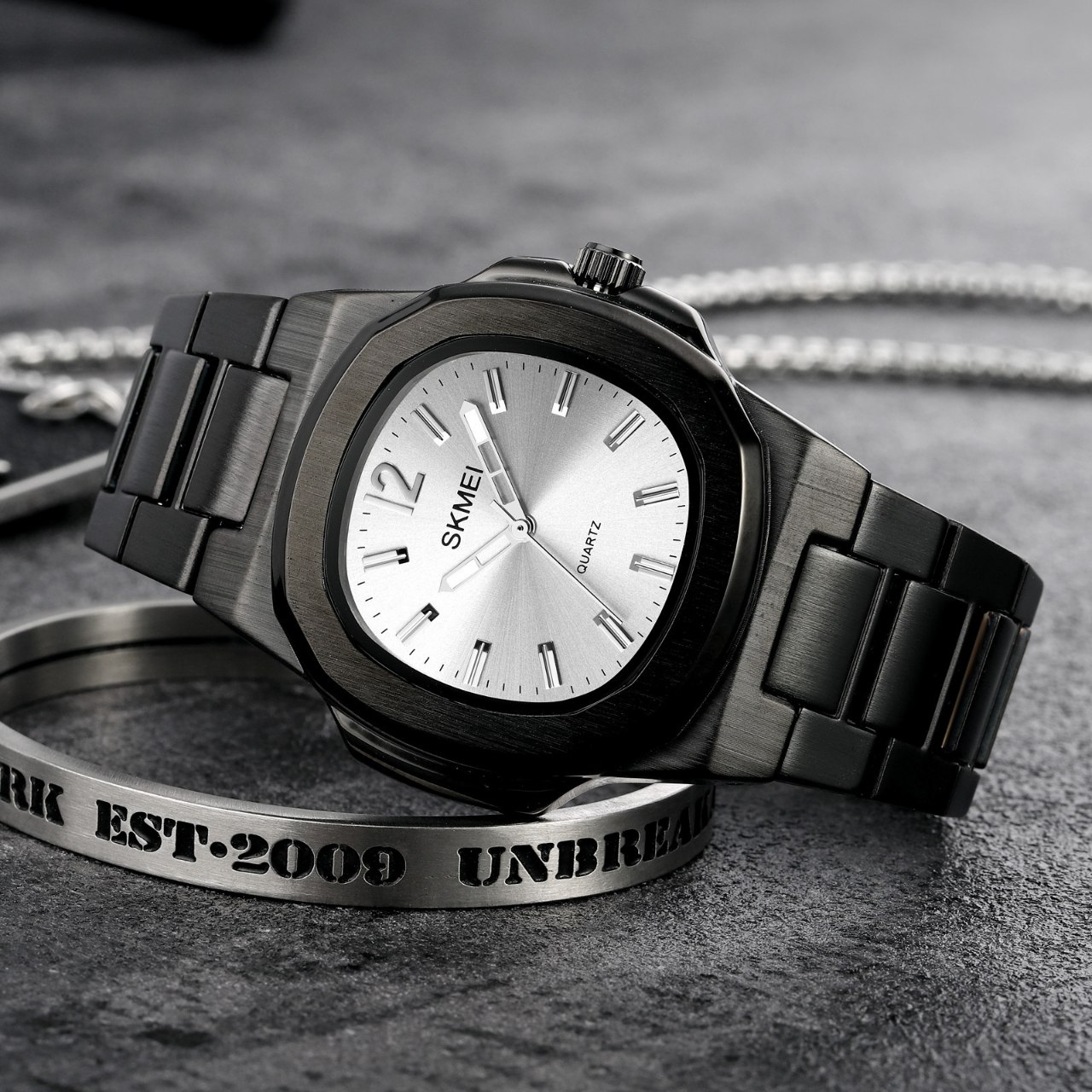 ساعت مچی عقربه ای مردانه اسکمی Skmei مدل 1794 با بند استیل رنگ ثابت و صفحه سفید طراحی ساده اما فوق العاده زیبا و شیک دارد. این ساعت با تکنولوژی کوارتز و موتور ژاپن کوارتز مجهز به قاب استیل شیشه معدنی ضد خش و صفحه دید در شب است و خاصیت ضد آب دارد. بند ضد حساسیت پوستی و قفل کلیپسی ضامن دار راحتی و امنیت استفاده را تضمین میکند. فرم صفحه مربع خاص جلوه متفاوت و مدرنی به ساعت داده است و محصول ارجینال با جعبه و گارانتی از فروشگاه اینترنتی روبی مد عرضه میشود.