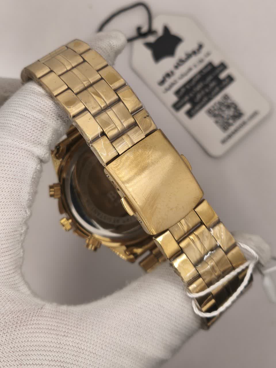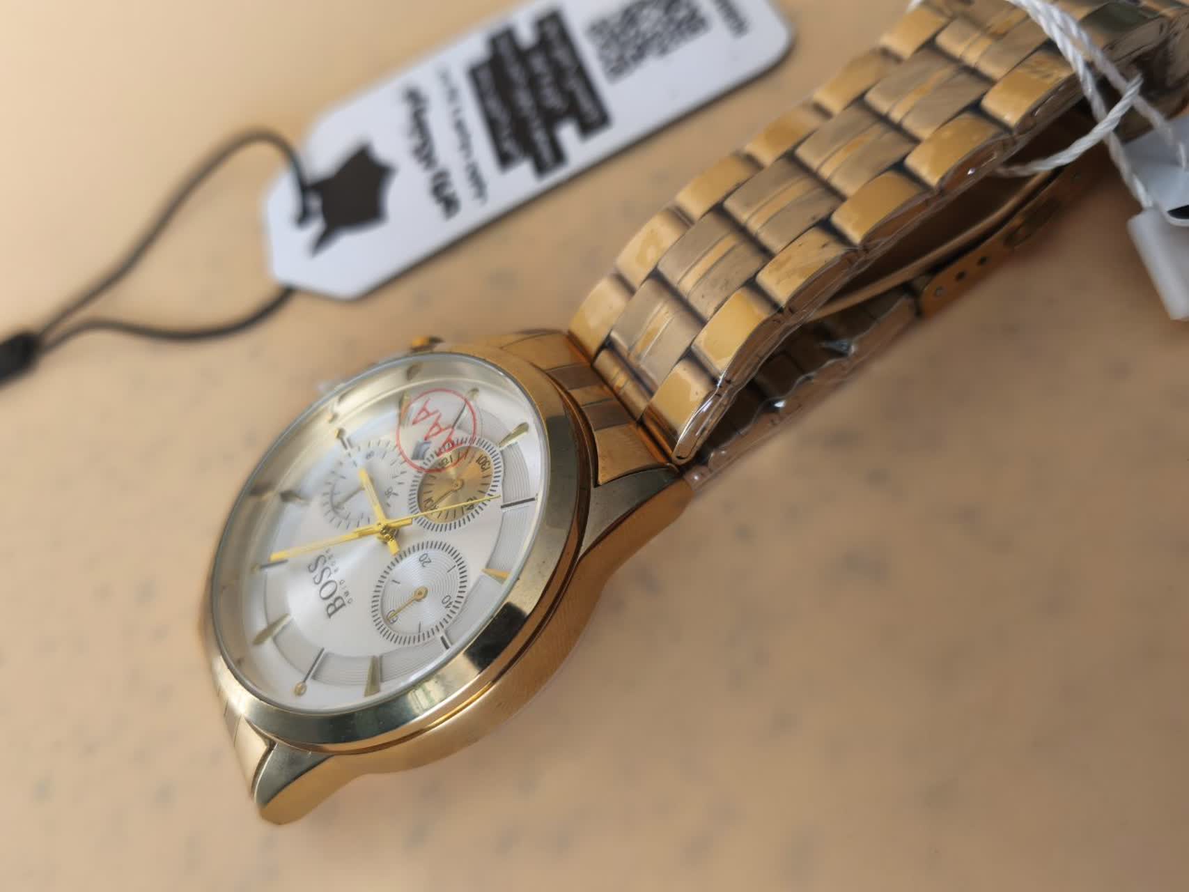 ساعت مچی مردانه طرح کرنوگراف باس BOOS با کیفیت فوق العاده و رنگ طلایی انتخابی شیک و لوکس برای آقایان سخت پسند است. دارای موتور کوارتز دقیق، صفحه گرد سفید شب نما، تقویم دار، شیشه معدنی کریستال ضد خط و خش، بند استیل رنگ ثابت ضد زنگ و ضد حساسیت با قفل کلیپسی تاشو ضامن دار می باشد. این مدل ضد آب بوده و در رنگ های دیگر نیز موجود است و به همراه جعبه هدیه و جا کلیدی چرمی از فروشگاه اینترنتی روبی مد عرضه می شود.