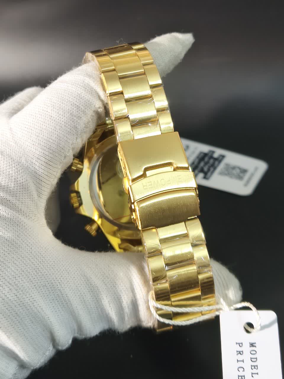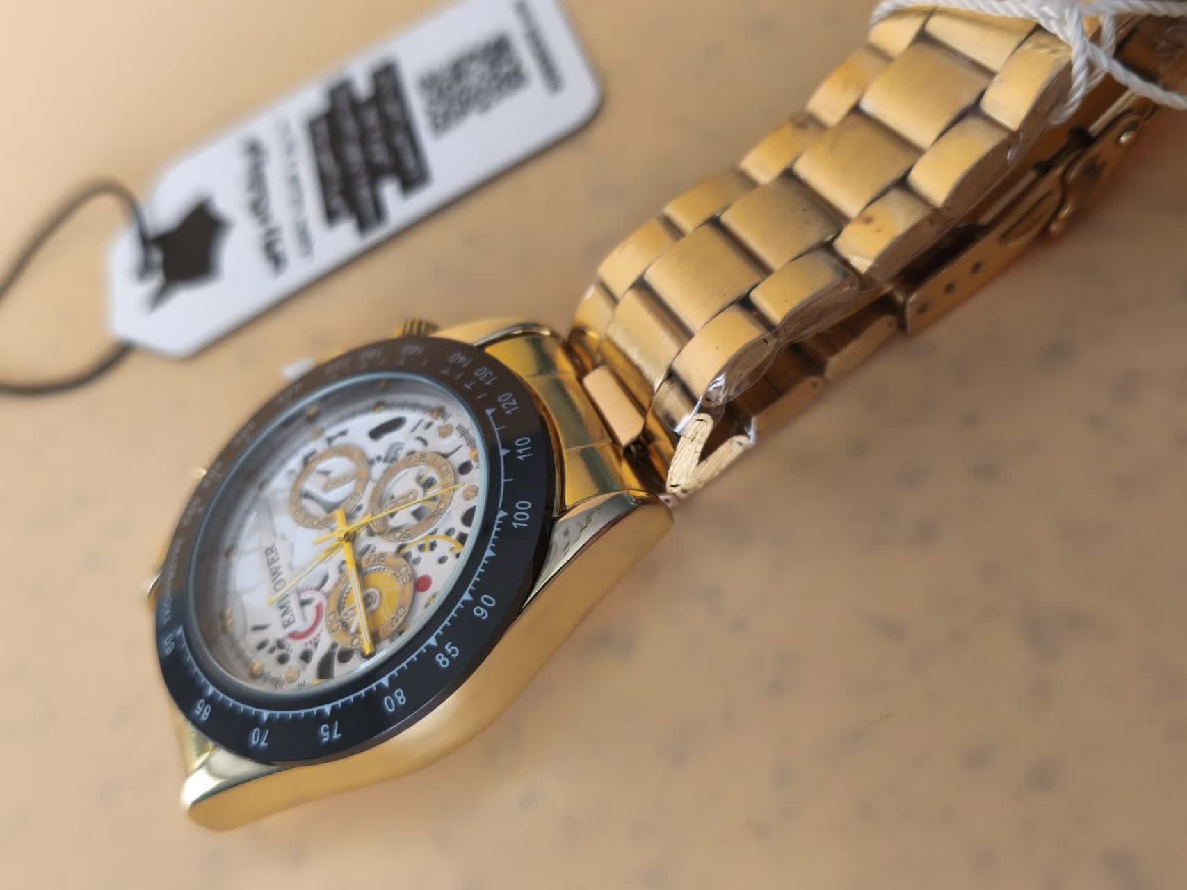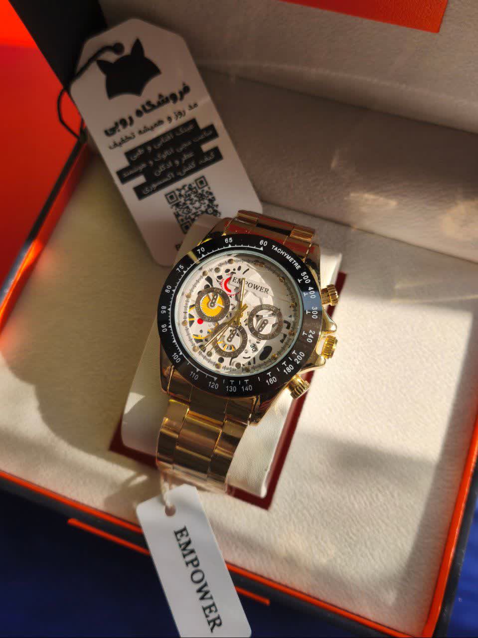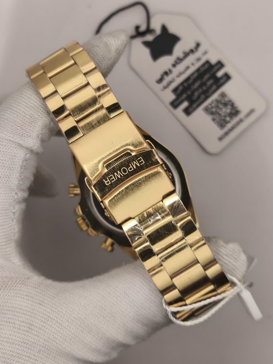 ساعت مچی مردانه امپاور EMPOWER طرح سه موتوره با کیفیت عالی و طراحی خاص تقدیم نگاه زیبای شما می شود. این مدل با بند توپُر رنگ ثابت طلایی سفید طرح چرخ دنده، صفحه دایره ای ضد خش و طرح سه موتوره جذاب جلوه ای لوکس دارد. دارای موتور کوارتز دقیق، تقویم دار، قابلیت ضد آب و قفل مخفی ضامن دار دو قفله می باشد. برند شرکتی معتبر این ساعت را به انتخابی شیک و ماندگار تبدیل کرده است. محصول به همراه جعبه هدیه از فروشگاه اینترنتی روبی مد ارائه می شود.
