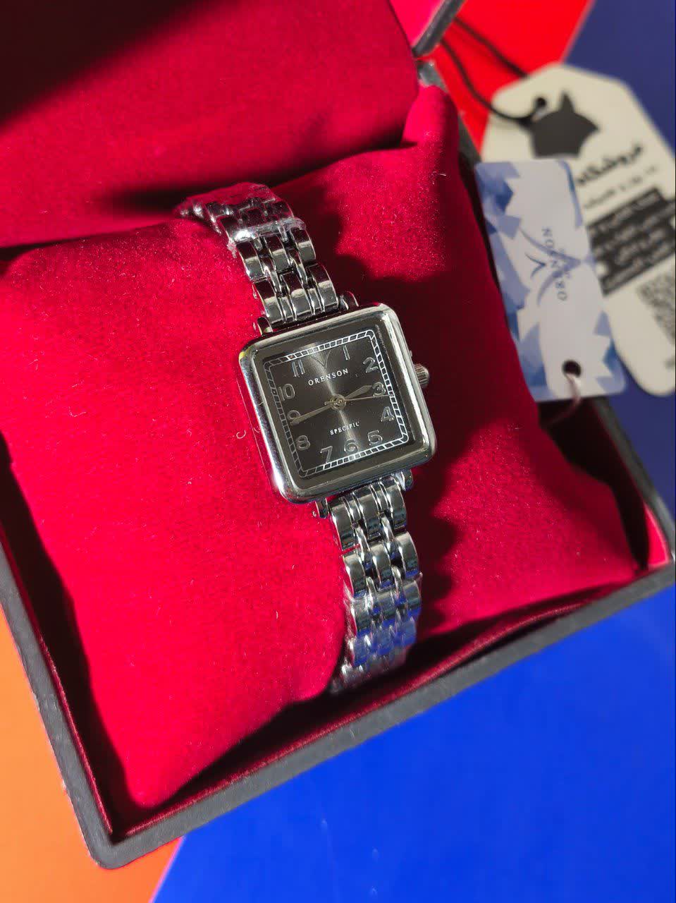ساعت مچی زنانه اورنسون با طراحی مدرن و جذاب، انتخابی ایدهآل برای خانمهای شیکپوش است. این ساعت با موتور تکنولوژی کوارتز و بند نقرهای با صفحه مشکی، ظاهری خیرهکننده دارد. بند فوقالعاده جذاب با طرح آجری خاص و آبکاری عالی رنگ ثابت، زیبایی ساعت را دوچندان کرده است. ضد آب بودن، صفحه نگین و قفل پروانهای جدید، از ویژگیهای برجسته این مدل است. این ساعت زیبا و شیک به همراه جعبه هدیه از فروشگاه اینترنتی روبیمد قابل سفارش است.