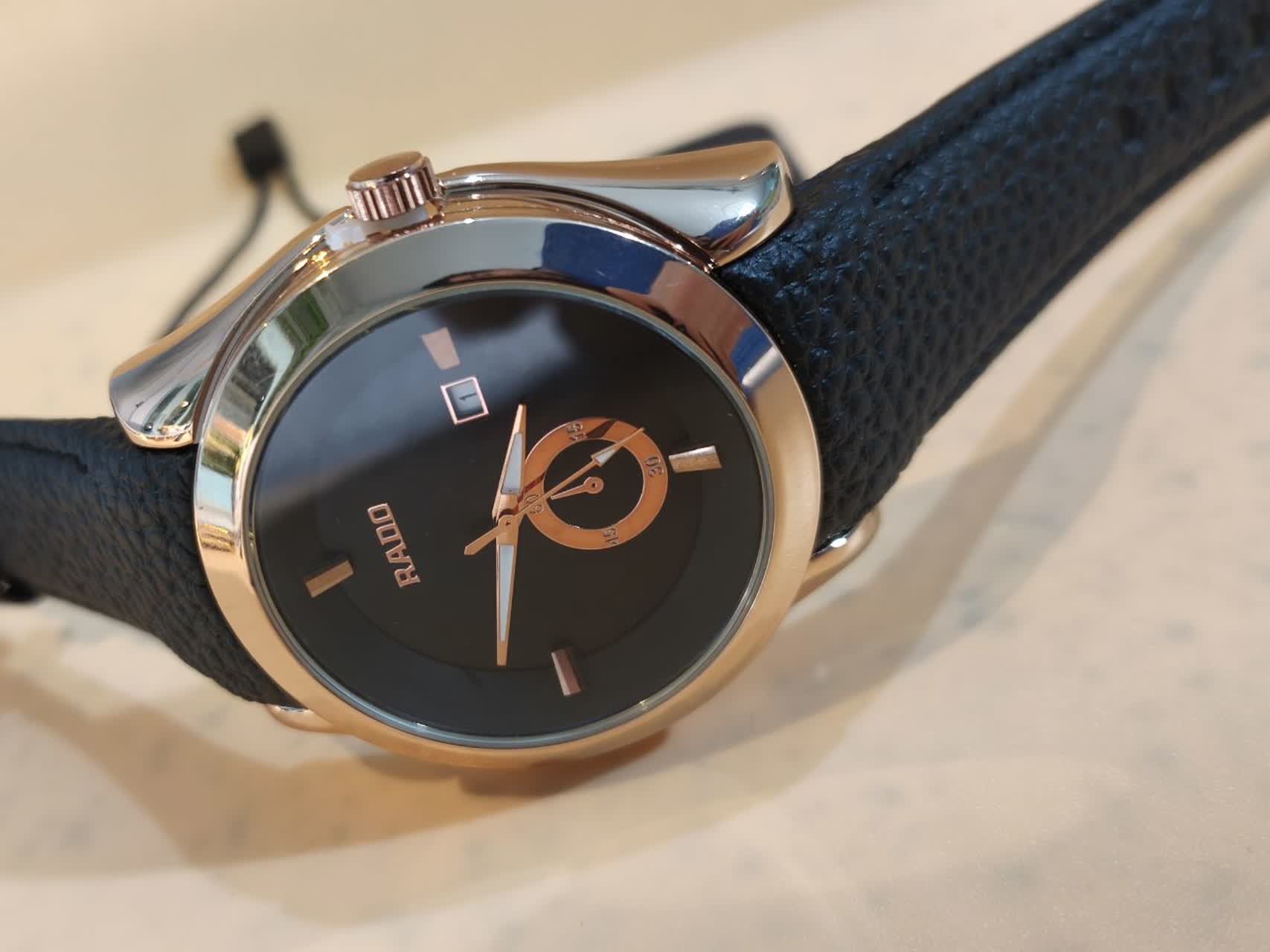 ساعت مچی مردانه رادو با بند چرمی، یک انتخاب بینظیر برای آقایان با سلیقهی خاص است. این ساعت با موتور ژاپن و طراحی شیک، دارای بند چرم باکیفیت دور دوخت، صفحه مشکی و قاب طلایی است. رنگهای متنوع دیگری نیز موجود است که میتوانید از طریق پیام با ما هماهنگ کنید. این ساعت ضد آب، تقویم دار و مجهز به عقربه شبنما است و با قفل کمربندی محکم بسته میشود. با ضمانت یک ساله و همراه با جعبه هدیه، این کار معرکه را از فروشگاه اینترنتی روبیمد تهیه کنید.