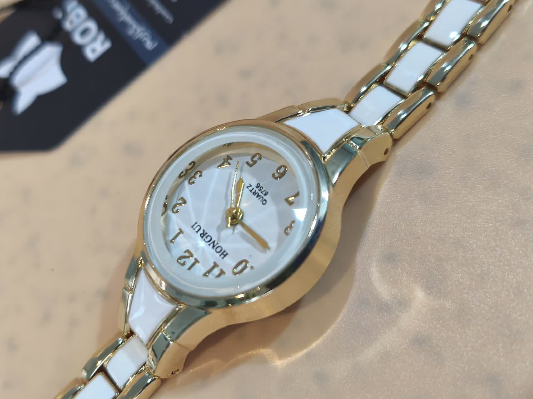 ساعت مچی دخترانه هونگريو با رنگ بند سفید رگه زلایی و صفحه سفید، ظاهری زیبا و چشمنواز دارد که شما را جلوتر از زمان میبرد. این ساعت با موتور کوارتز درجه یک و برند شرکتی، کیفیت بالایی را ارائه میدهد و بند سرامیکی خاص آن، جلوهای منحصر به فرد به آن بخشیده است. بند استیل رنگ ثابت، قفل آسان و عقربه شب نما، کاربری آن را آسانتر کرده است. با ضد آب بودن و به همراه جعبه هدیه، این ساعت در فروشگاه اینترنتی روبیمد در دسترس شماست.