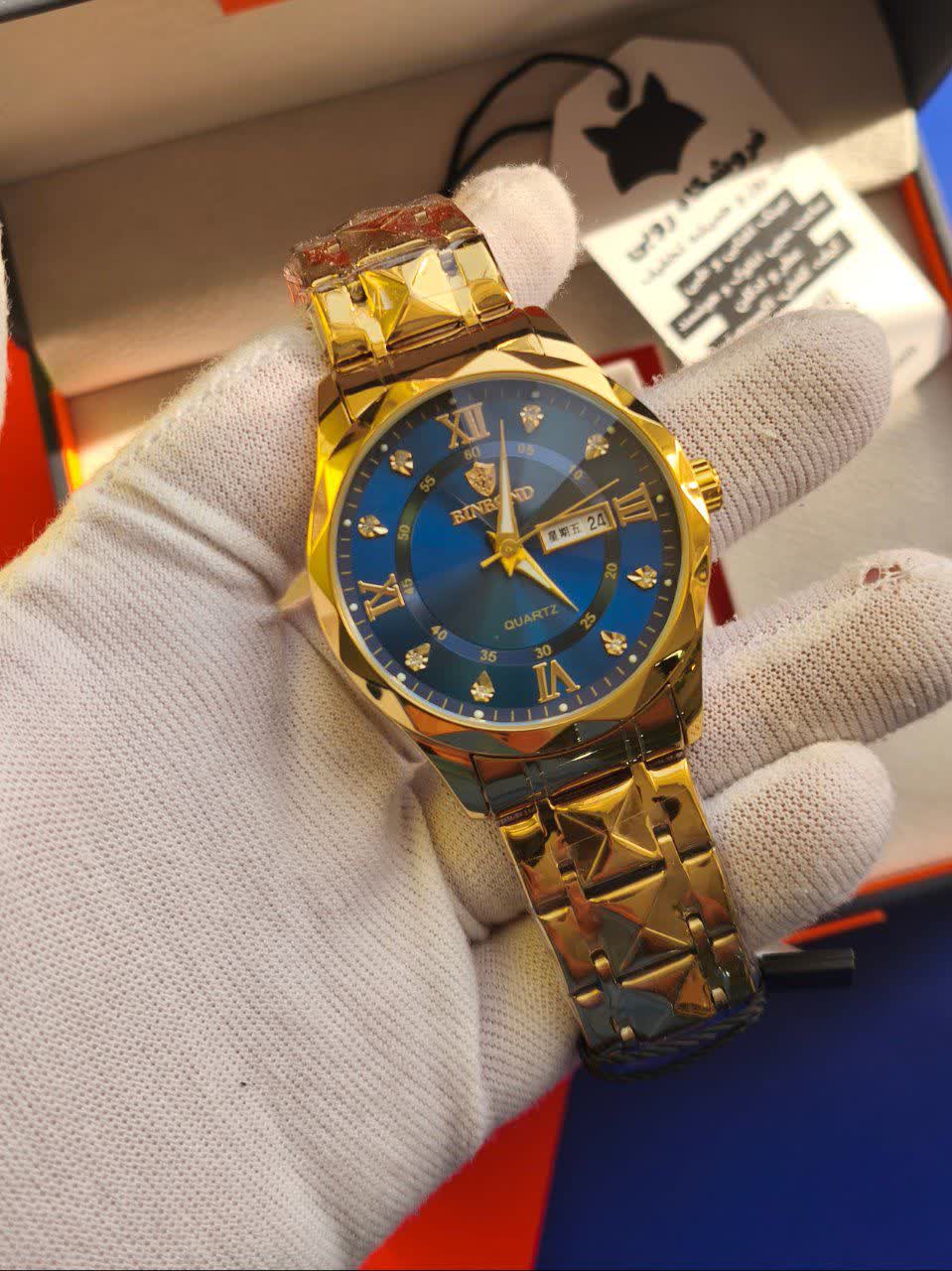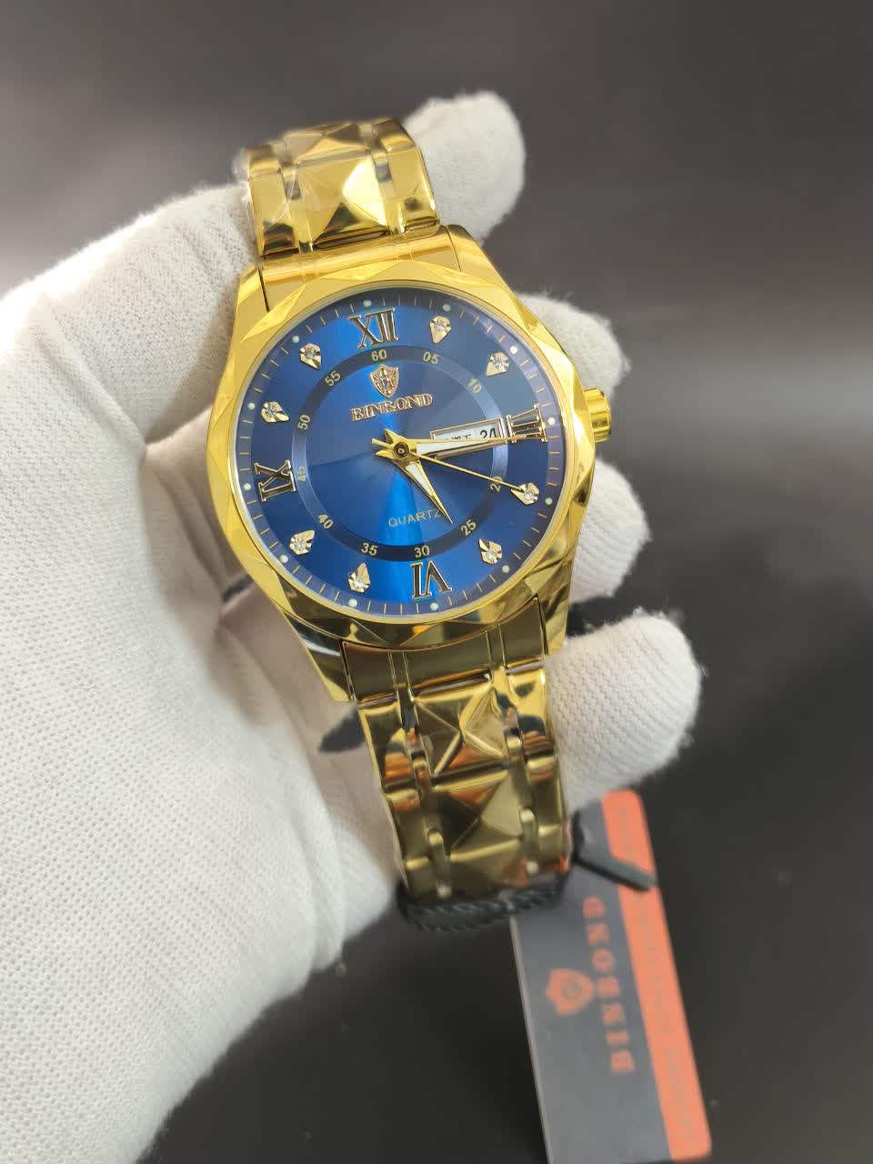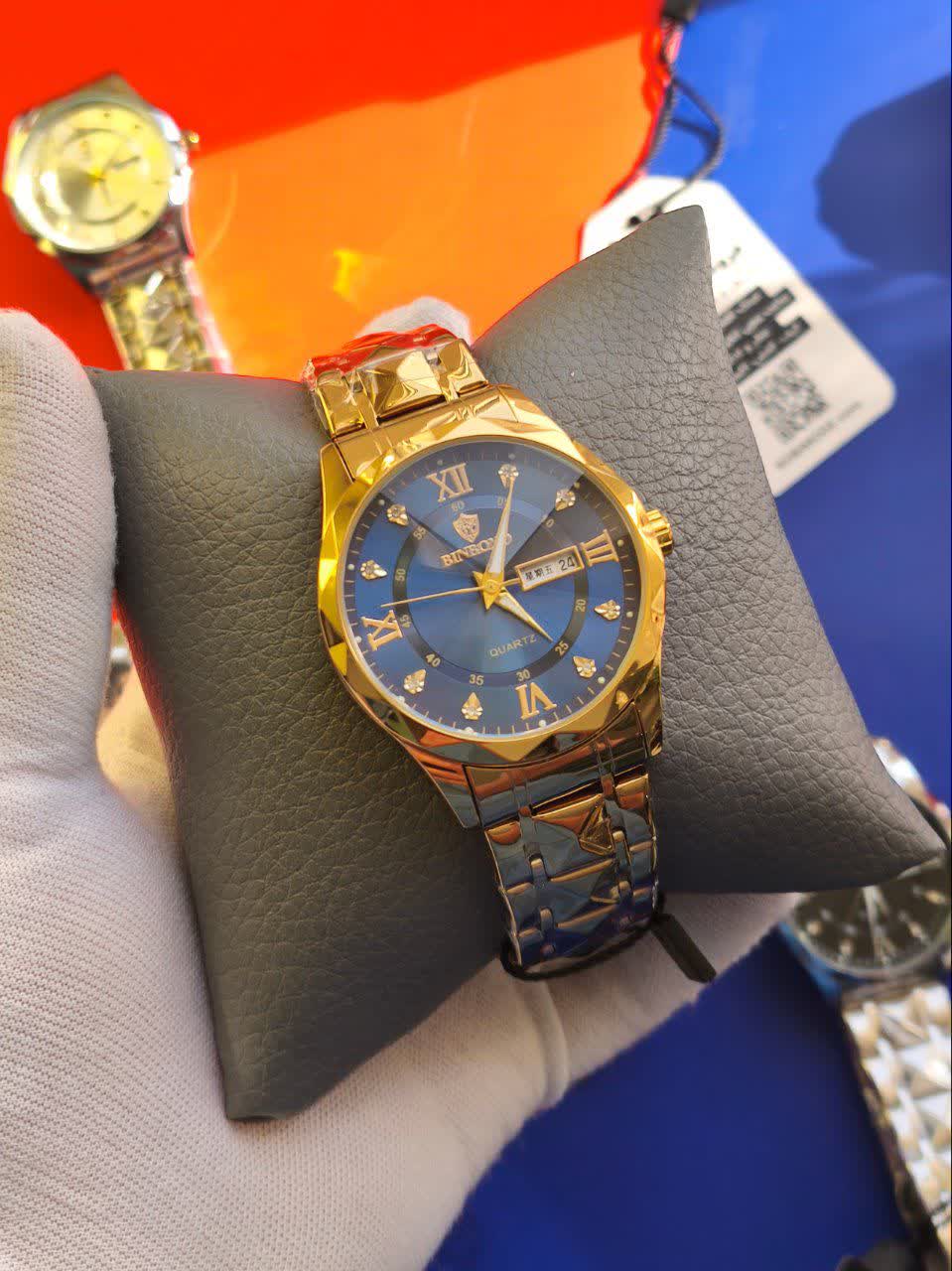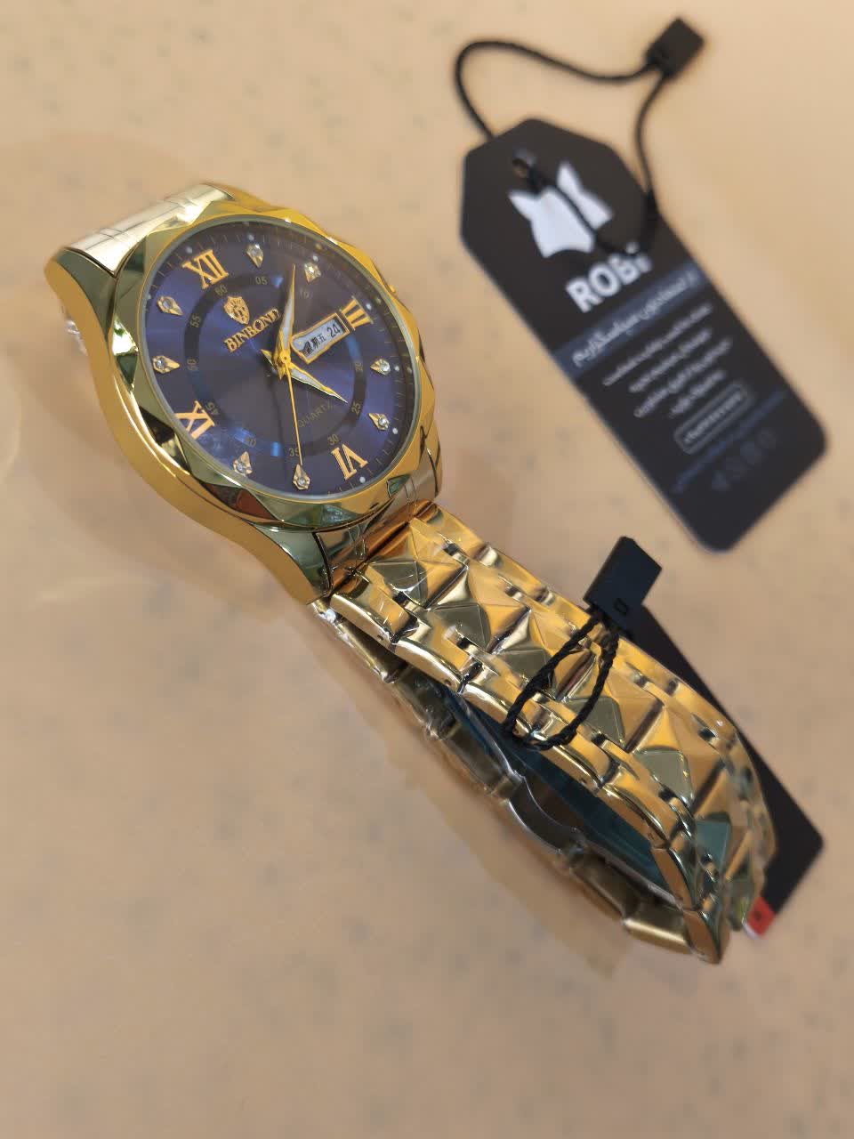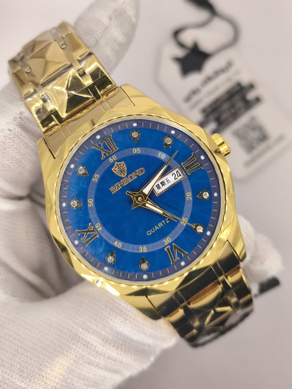 ساعت مچی مردانه بین باند (BIN BOND) الماسی اورجینال با رنگ طلایی و صفحه آبی، یک انتخاب بینظیر و لوکس برای آقایان است. این ساعت با بند استیل فولاد توپر و قفل پروانه ای خاص دو قفله، ظاهری مجلل و در عین حال مدرن دارد. صفحه الماس کاری، شیشه الماسی برجسته و ضد خط و خش نشکن، به همراه موتور کوارتز ژاپنی با دقت عالی، این ساعت را به یک اثر هنری تبدیل کرده است. مقاوم در برابر آب، دارای تقویم، روز شمار و صفحه شب نما بوده و با جعبه هدیه عرضه میشود. برای خرید این ساعت ارزشمند و باکیفیت، به فروشگاه اینترنتی روبی مد سر بزنید.