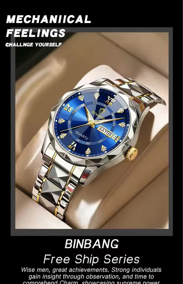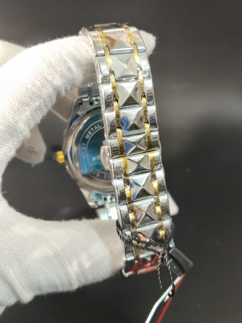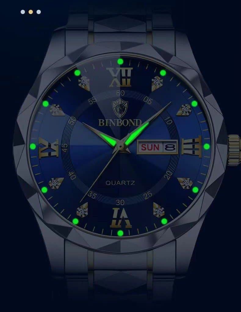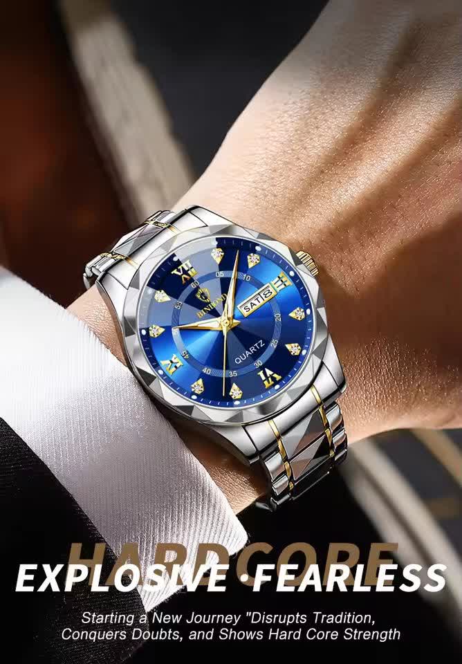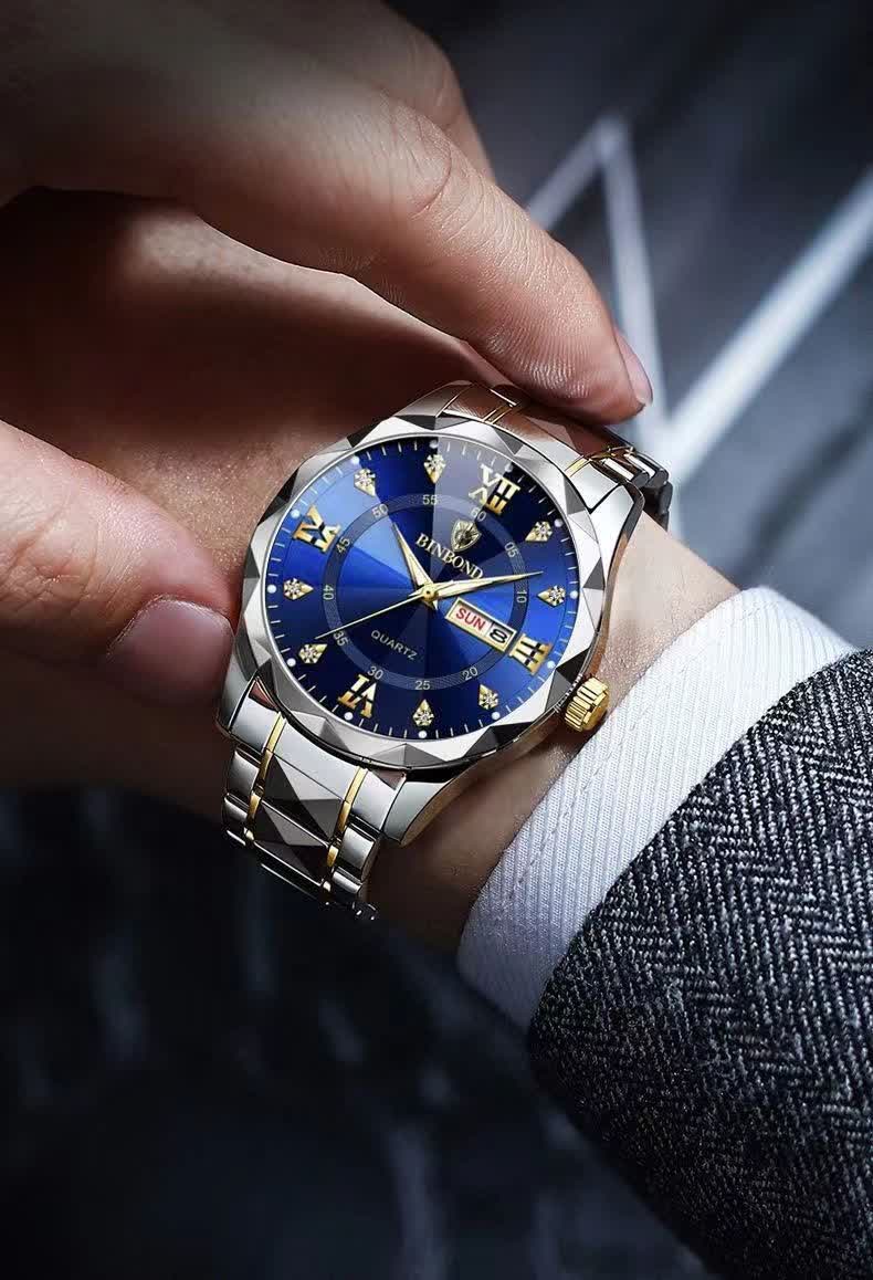 ساعت مچی مردانه بین باند (BIN BOND) الماسی اورجینال با رنگ بند نقرهای رگه طلایی و صفحه آبی، یک انتخاب بینظیر و لوکس برای آقایان است. این ساعت با بند استیل فولاد توپر و قفل پروانه ای خاص دو قفله، ظاهری مجلل و مدرن دارد. صفحه الماس کاری، شیشه الماسی برجسته و ضد خط و خش نشکن، به همراه موتور کوارتز ژاپنی با دقت عالی، این ساعت را به یک اثر هنری تبدیل کرده است. مقاوم در برابر آب، دارای تقویم، روز شمار و صفحه شب نما بوده و با جعبه هدیه عرضه میشود. برای خرید این ساعت ارزشمند و باکیفیت، به فروشگاه اینترنتی روبی مد سر بزنید.
