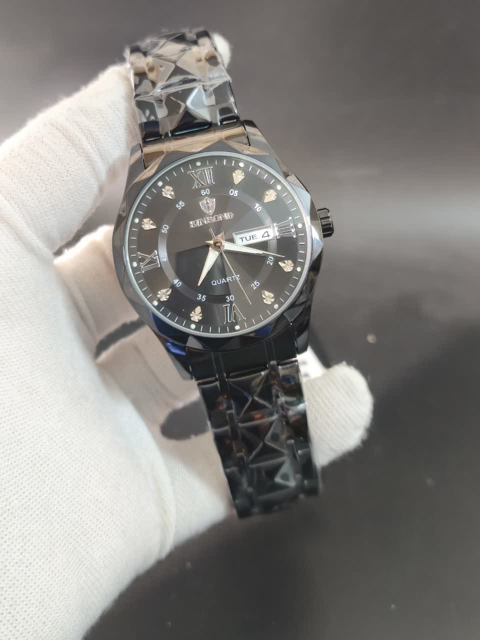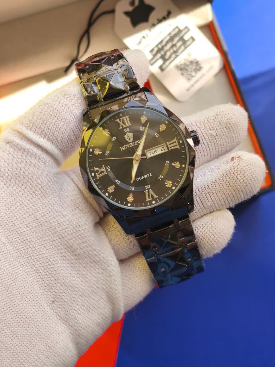 ساعت مچی مردانه بین باند (BIN BOND) الماسی اورجینال با رنگ بند و صفحه مشکی، یک انتخاب شیک و خاص برای آقایان با سلیقه است. این ساعت با بند استیل فولاد توپر و قفل پروانه ای خاص دو قفله، ظاهری مدرن و جذاب دارد. صفحه الماس کاری، شیشه الماسی برجسته و ضد خط و خش نشکن، به همراه موتور کوارتز ژاپنی با دقت عالی، این ساعت را به یک اثر هنری تبدیل کرده است. مقاوم در برابر آب، دارای تقویم، روز شمار و صفحه شب نما بوده و با جعبه هدیه عرضه میشود. برای خرید این ساعت ارزشمند و باکیفیت، به فروشگاه اینترنتی روبی مد سر بزنید.