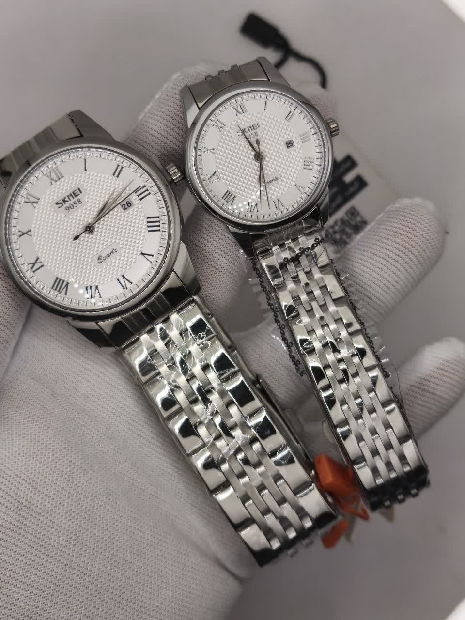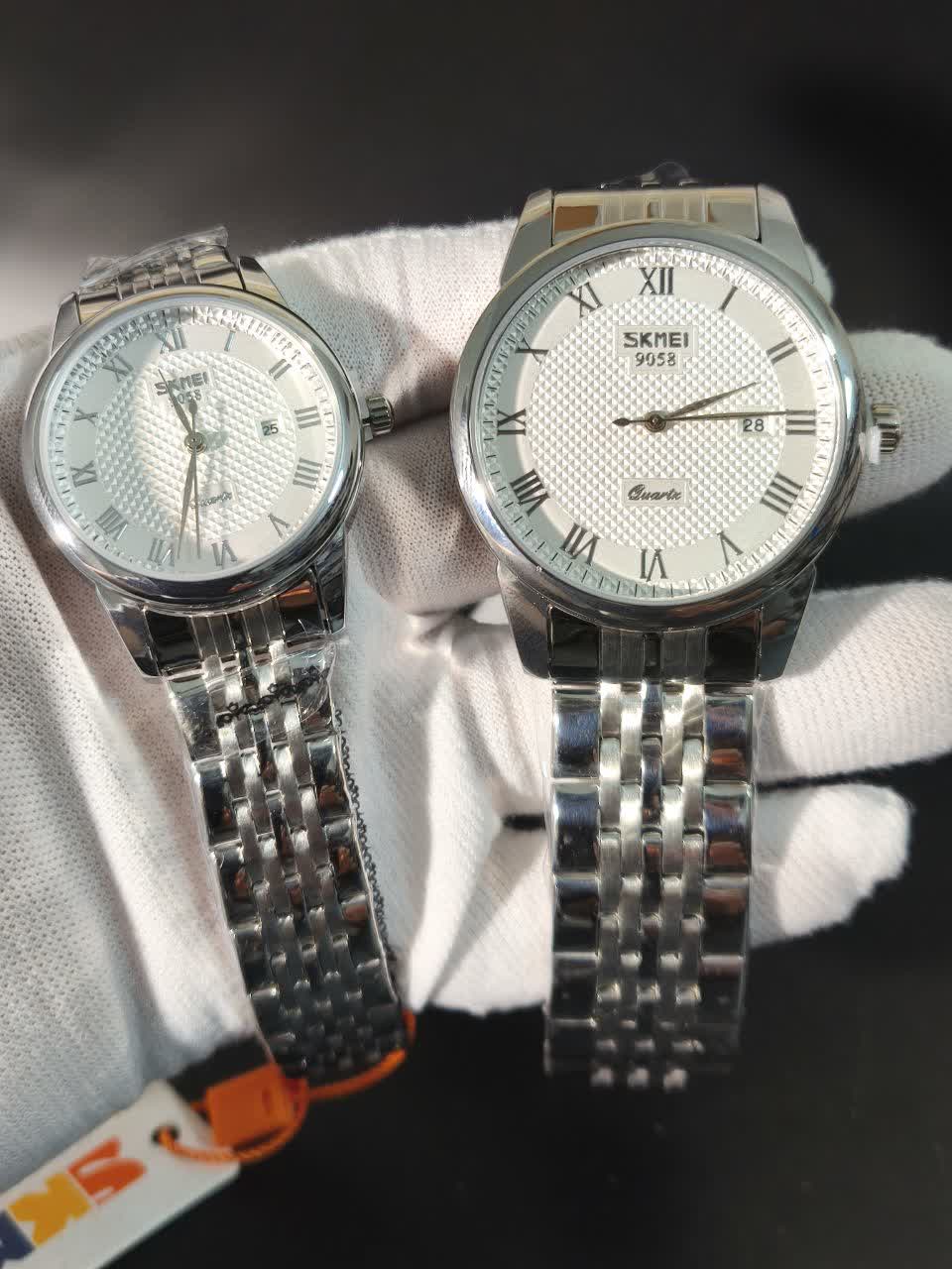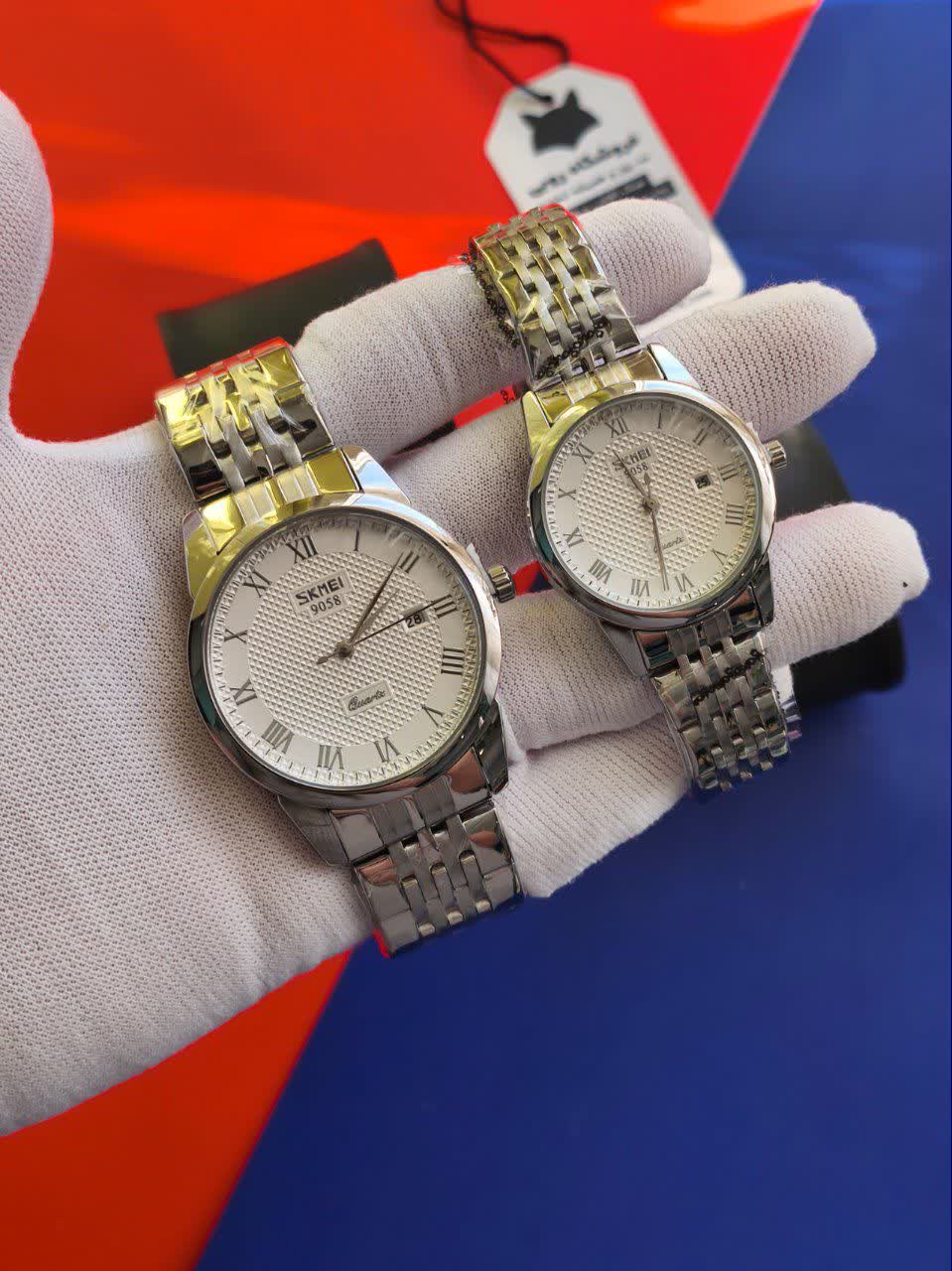 با ست ساعت مچی زنانه و مردانه اسکمی SKMEI مدل 9058 استیل، ظاهری شیک و هماهنگ داشته باشید. این ست با رنگ بند نقرهای و صفحه سفید، جلوهای بینظیر به استایل شما میبخشد. مجهز به موتور کوارتز عقربهای، تقویم و ضد آب بودن، این ساعتها برای استفاده روزمره بسیار مناسب هستند. قاب و بند استیل ضد زنگ، شیشه معدنی ضد خش و عقربه شب تاب از ویژگیهای برجسته این ست هستند که در فروشگاه اینترنتی روبیمد به همراه جعبه هدیه 🎁 تقدیم شما میشود. انتخاب ایدهآلی برای ست کردن با هر سلیقهای!