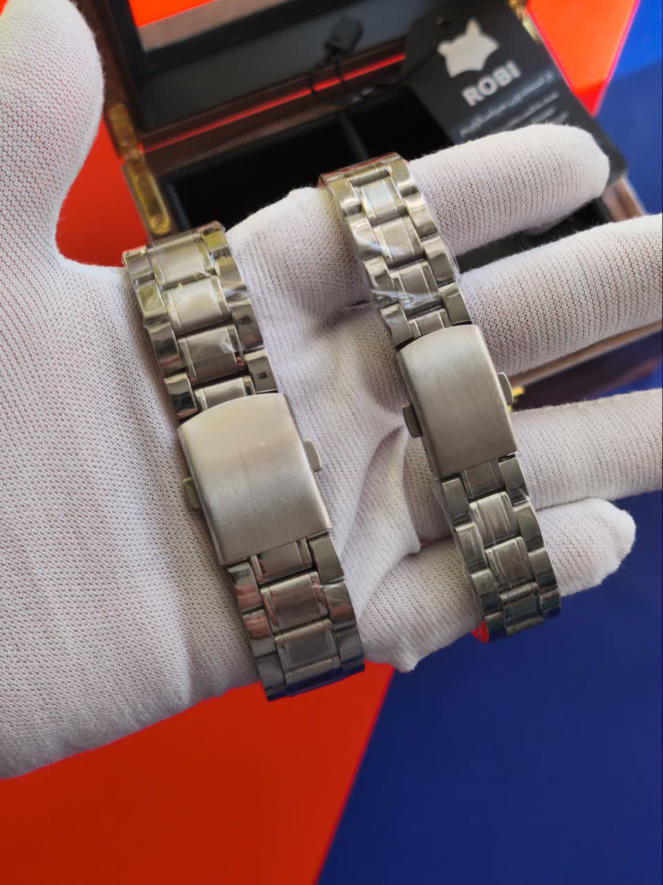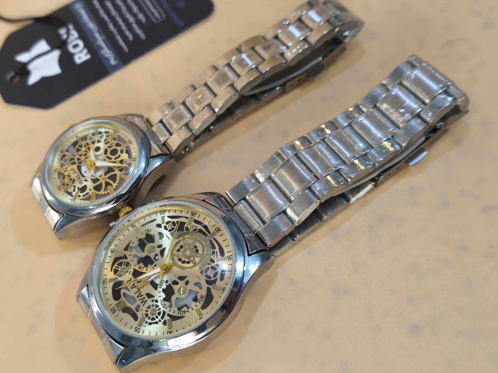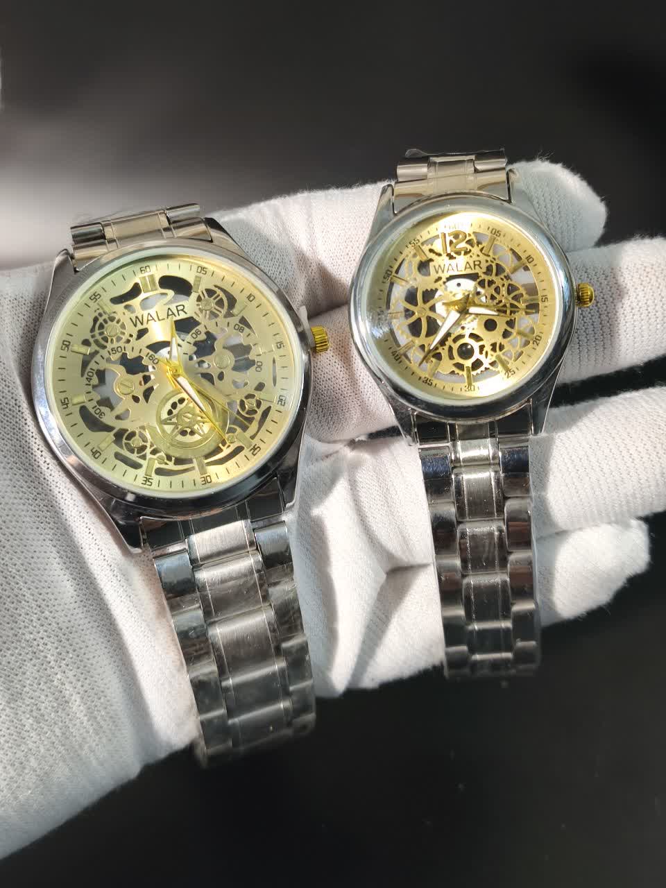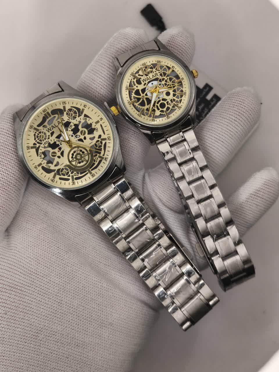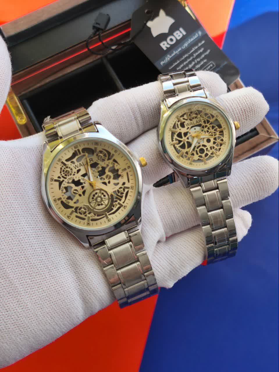 با ست ساعت مچی زنانه و مردانه والار WALAR با طرح اتوماتیک چرخ دنده استیل، نمادی از عشق و هماهنگی را به نمایش بگذارید. این ست با رنگ بند نقرهای و صفحه طلایی، ظاهری مجلل و چشمنواز دارد. مجهز به موتور کوارتز عقربهای، ضد آب و با طراحی جذاب چرخ دنده، این ساعتها انتخابی بینظیر برای زوجها هستند. قاب و بند استیل ضد زنگ، شیشه معدنی ضد خش و عقربه شب تاب از ویژگیهای برجسته این ست زیباست که در فروشگاه اینترنتی روبیمد به همراه جعبه هدیه 🎁 تقدیم شما میشود. یک دل و یک زمان ❤️ برای شما و عزیزانتان!