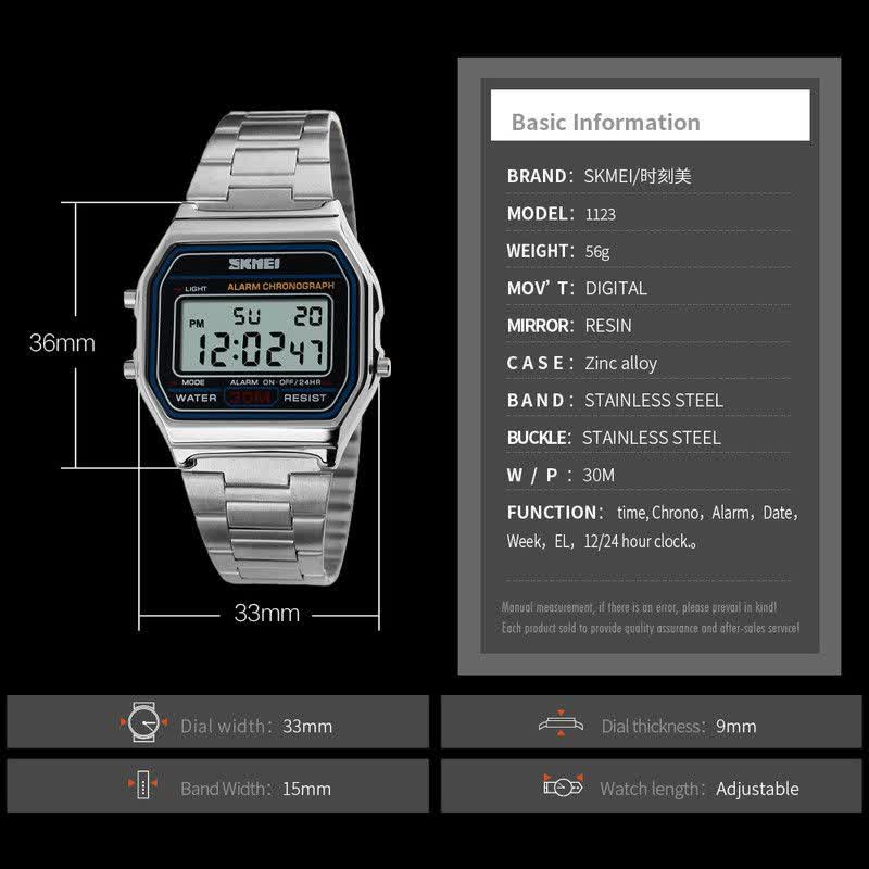 با ساعت مچی زنانه اسکمی SLMEI مدل 1451 نوستالژی، هدیهای ارزشمند و شیک به عزیزانتان هدیه دهید. این ساعت با طراحی نوستالژیک و رنگ بند سیلور، ظاهری جذاب و منحصر به فرد دارد. مجهز به نمایشگر دیجیتال، صفحه چراغ دار برای دید در شب و ضد آب بودن، این ساعت همواره شما را همراهی میکند. قاب استیل، بند استیل ضامن دار کلیپسی، ثانیه شمار، تاریخ، آلارم و صفحه ضد خط و خش از ویژگیهای برجسته این مدل است که در فروشگاه اینترنتی روبیمد به همراه جعبه هدیه 🎁 تقدیم شما میشود. برای تو که بهترینی!