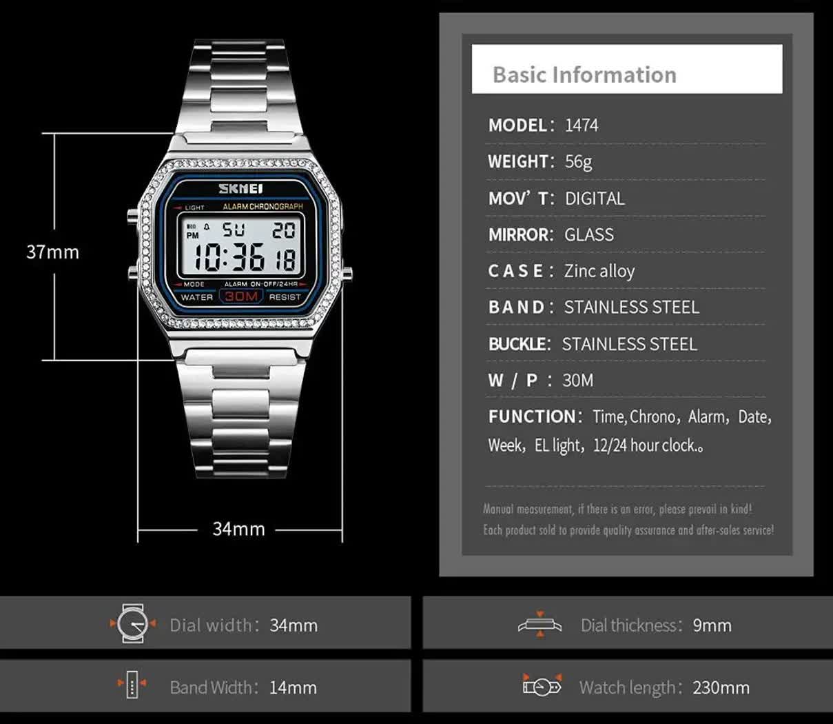 با ساعت مچی مردانه اسکمی SKMEI مدل 1474SL نوستالژی، استایلی خاص و متفاوت داشته باشید. این ساعت با طراحی نوستالژیک و رنگ بند سیلور، ظاهری شیک و مدرن دارد. مجهز به نمایشگر دیجیتال، صفحه چراغ دار برای دید در شب و ضد آب بودن، این ساعت همواره شما را در هر شرایطی همراهی میکند. قاب استیل، بند استیل ضامن دار کلیپسی، ثانیه شمار، تاریخ، آلارم و صفحه ضد خط و خش از ویژگیهای برجسته این مدل است که در فروشگاه اینترنتی روبیمد به همراه جعبه هدیه 🎁 تقدیم شما میشود. برای تو که بهترینی!