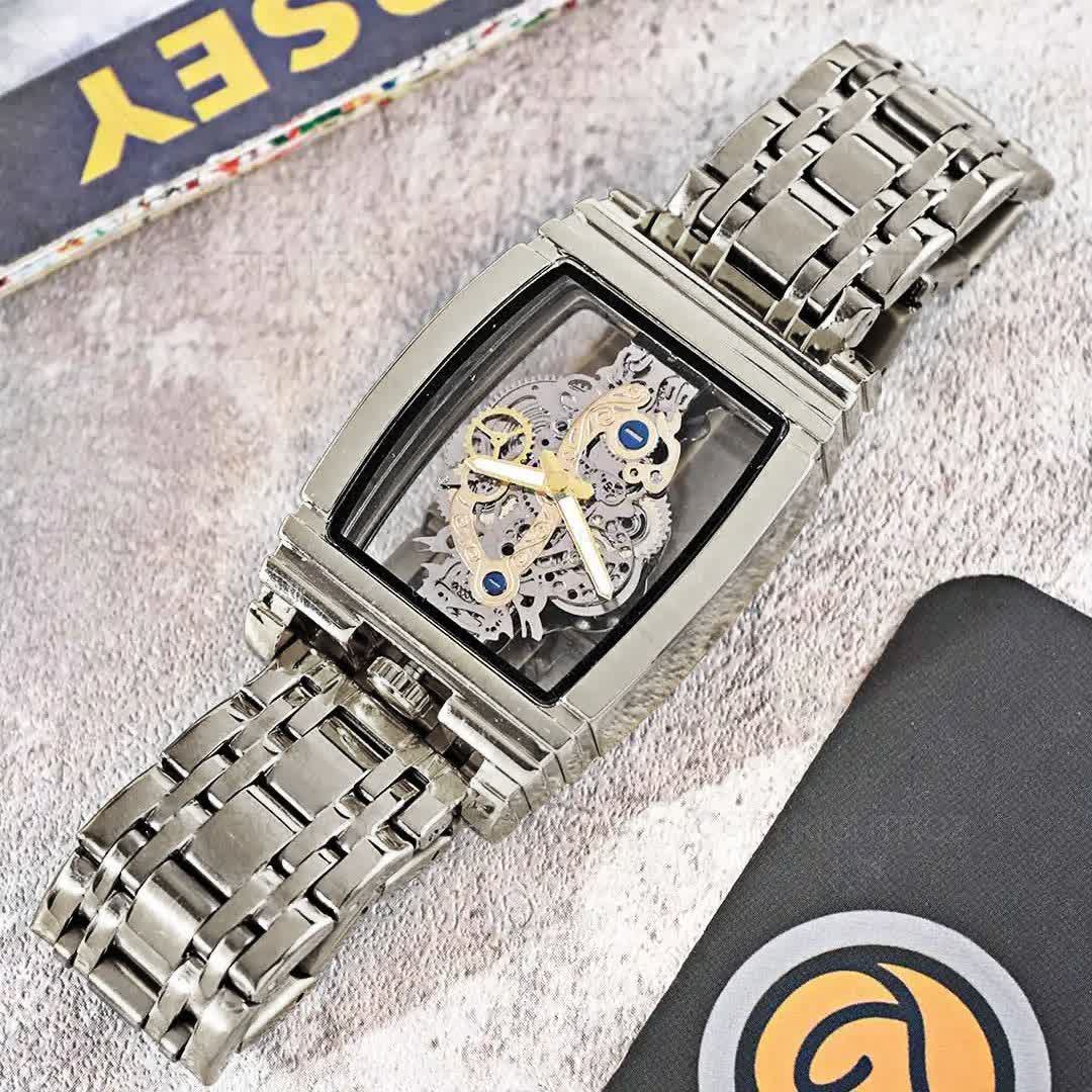با ساعت مچی مردانه بین باند BIN BOND استیل با طراحی پشت و رو نمایان چرخ دنده، ظاهری بینظیر و جذاب داشته باشید. این ساعت با رنگ بند و صفحه شفاف شیشه و چرخ دنده متحرک، جلوهای منحصربهفرد به استایل شما میبخشد. به عنوان یک محصول ارجینال شرکتی از برند بین باند، این ساعت با قاب و بند استیل ضد زنگ، شیشه معدنی ضد خش و عقربه شب تاب، همواره شما را در هر شرایطی همراهی میکند. در فروشگاه اینترنتی روبیمد به همراه جعبه هدیه 🎁 تقدیم شما میشود تا جذابیت دستانتان را دو چندان کنید.