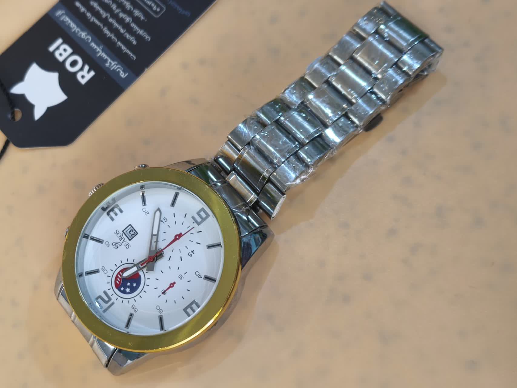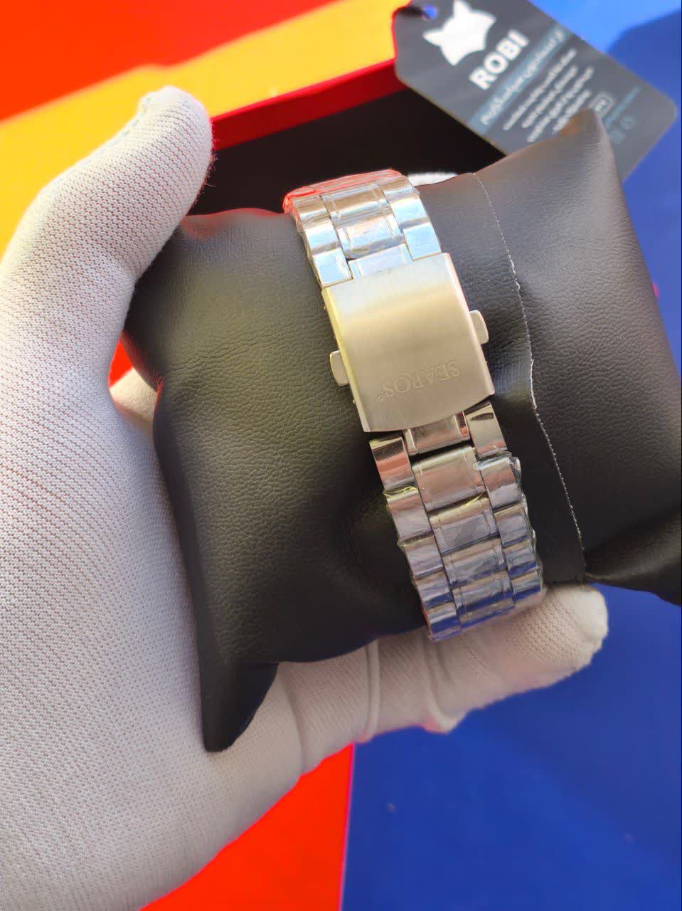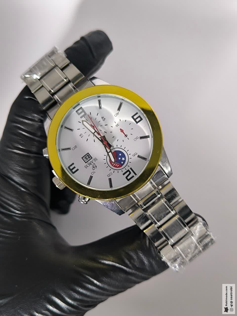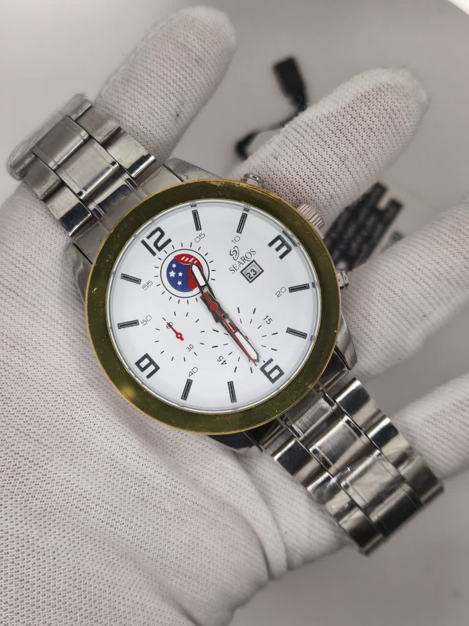 ساعت مچی مردانه ساروس SEAROS طرح سه موتوره با بند استیل رنگ ثابت و صفحه سفید انتخابی شیک و قدرتمند برای آقایان خوش سلیقه است که جذابیت بینهایت را به استایل شما می بخشد. صفحه دایره ای با عقربه های دید در شب در کنار موتور تکنولوژی کوارتز دقت و کارایی بالایی را تضمین می کند. قاب و بند استیل رنگ ثابت به همراه قفل کلیپسی ضامن دار دوام و راحتی استفاده را فراهم کرده است. این ساعت به همراه جعبه هدیه ارائه می شود و گزینه ای عالی برای هدیه دادن محسوب می شود. این مدل جذاب را می توانید از فروشگاه اینترنتی روبی مد تهیه کنید.