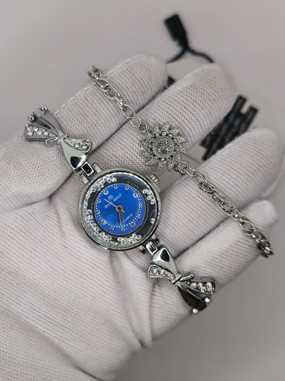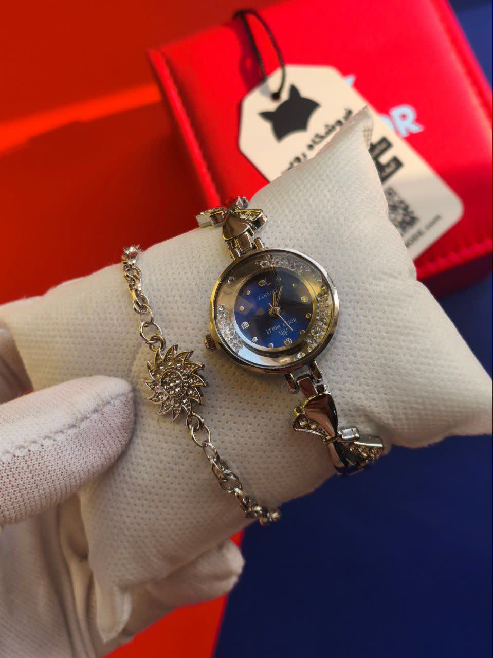 با ست ساعت و دستبند دخترانه نگینی هولی مولی بدرخشید! این ست مجلسی و یونانی با صفحه آبی و بند نقرهای، جلوهای بینظیر به استایل شما میده. قاب نگینی طرح بند الماسی و بند فلزی نگینکاری شدهاش، این ست رو خاص و چشمگیر میکنه. قفل دستبندی محکم و مدل شیکش، اطمینان خاطر شما رو تضمین میکنه و به همراه جعبه هدیه 🎁 تقدیم میشه تا یه هدیه کامل و دوستداشتنی باشه. همه نگاهها به دست شماست، این ست زیبا رو از فروشگاه اینترنتی روبیمد تهیه کنید!