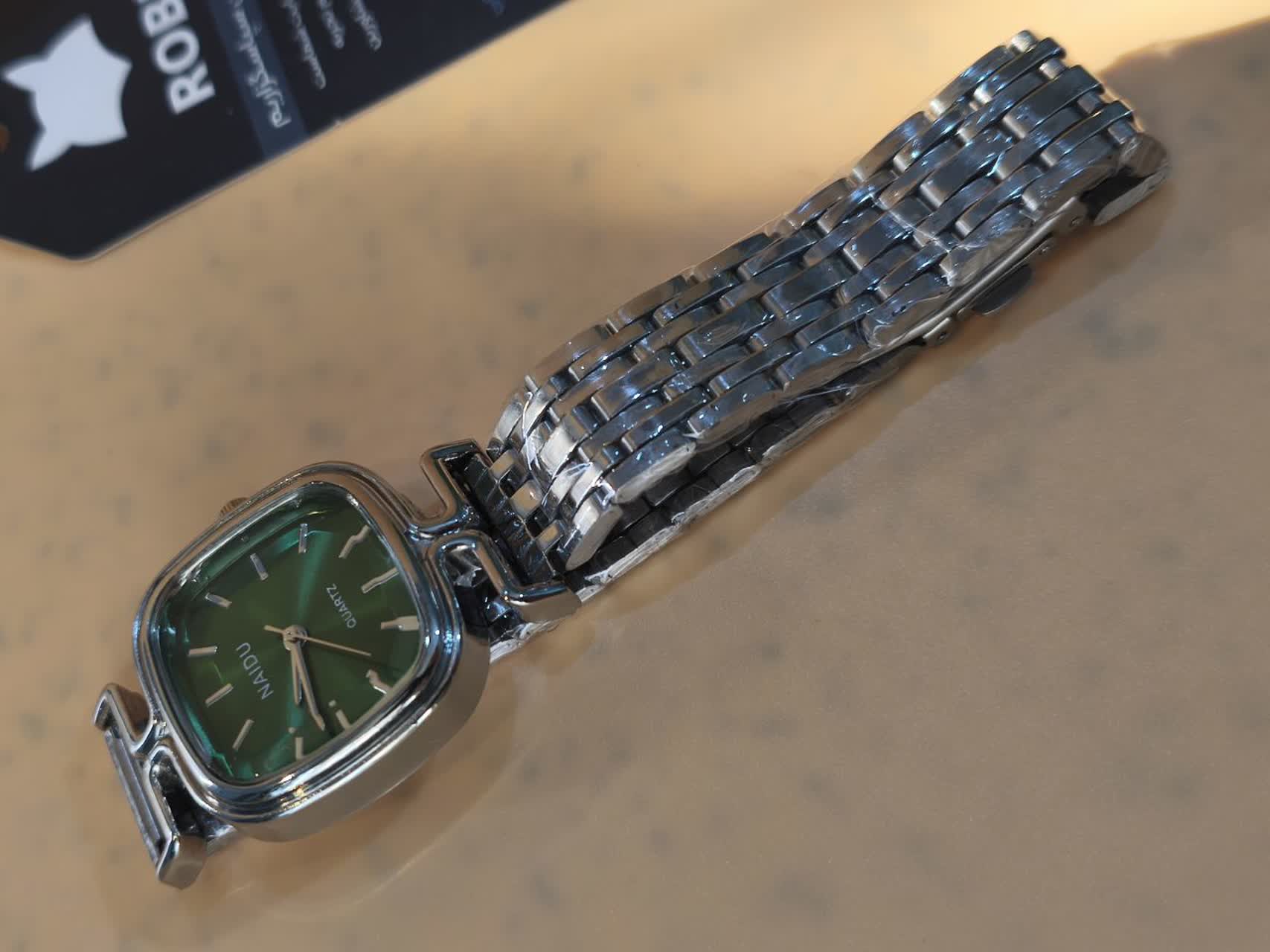 با ساعت مچی دخترانه نايدو NAIDU پاپیونی، ظاهری شیک و جذاب داشته باشید! این ساعت با صفحه سبز پاپيوني جذاب و بند نقرهای، انتخابی بینظیر برای کوچولوهای عزیز است. کیفیت درجه یک، استیل با طرح کوبیک، شیشه الماسی ضد خش و موتور کوارتز دقیق، تضمینی برای دوام و کارایی آن است. طرح پاپیونی و فرم مربع صفحه، به این ساعت ظاهری منحصر به فرد میبخشد و با قفل کلیپسی راحت و رنگ بندی کامل، هر سلیقهای را راضی میکند. به همراه جعبه هدیه 🎁 از فروشگاه اینترنتی روبیمد تهیه کنید و جذابیت دستان خود را دوچندان کنید!