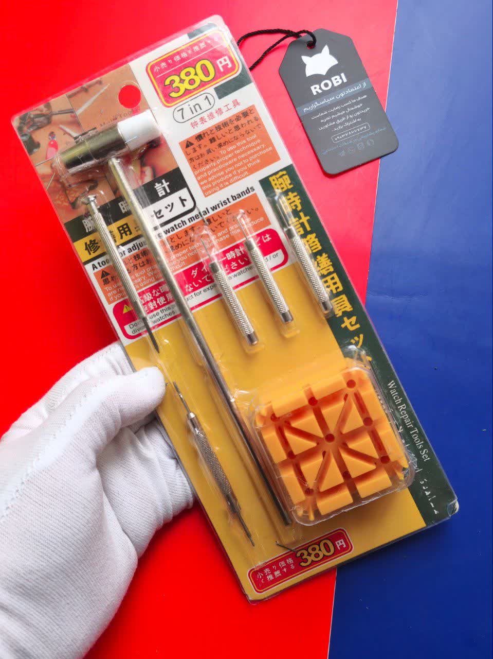 مجموعه ۷ تکه کیت ابزار تعویض بند ساعت ابزاری کامل و کاربردی برای تعویض بند ساعت در خانه است. این مجموعه دارای چکش دو سر کاربردی به همراه پنج مدل سوزن و گیره نگهدارنده بند میباشد و استفاده آسان و راحتی دارد. جنس باکیفیت وارداتی ابزار دوام و عملکرد دقیق آن را تضمین میکند. این کیت برای تعمیرات خانگی و حرفهای مناسب است و کار تعویض بند را سریع و مطمئن میکند. مجموعه ۷ تکه کیت ابزار تعویض بند ساعت از فروشگاه اینترنتی روبی مد با کیفیت بالا عرضه میشود.