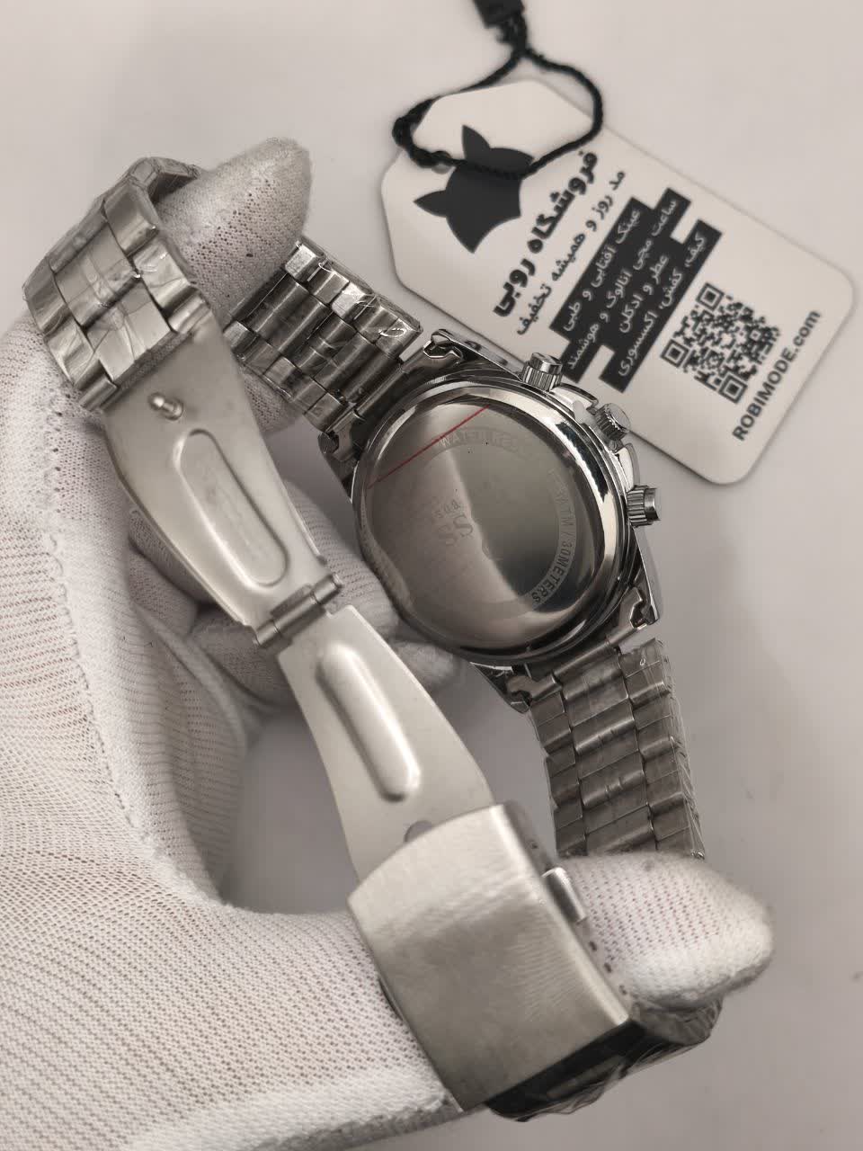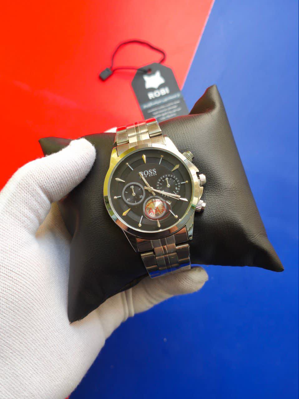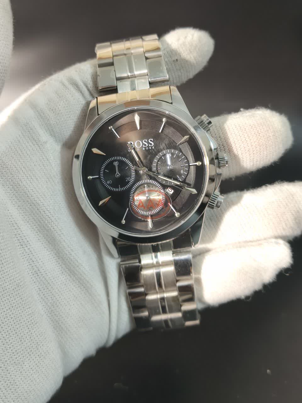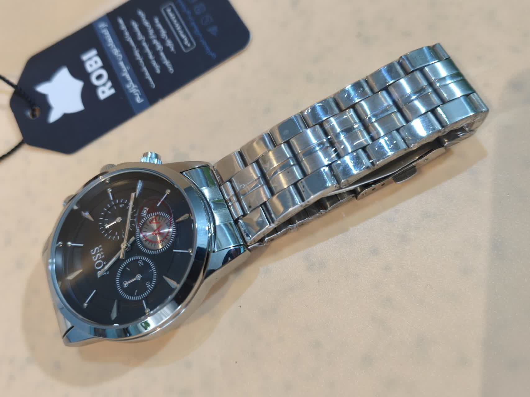 ساعت مچی مردانه طرح کرنوگراف باس BOOS با کیفیت فوقالعاده و طراحی لوکس دارای بند استیل رنگ ثابت و صفحه مشکی گرد است و رنگهای دیگر شامل طلایی، استیل و استیل با صفحه مشکی نیز موجود است (پیام بدین). این مدل به موتور تکنولوژی کوارتز مجهز بوده و ضد آب، تقویم دار و دارای صفحه شب نما است. شیشه معدنی کریستال و ضد خط و خش در کنار قفل کلیپسی تاشو ضامندار و بند ضد حساسیت دوام و راحتی استفاده را تضمین میکند. برند شرکتی ارجینال باس و طراحی ضد زنگ و ضد حساسیت آن برای افراد سختپسند مناسب است. این ساعت به همراه جعبه هدیه و جا کلیدی چرمی از فروشگاه اینترنتی روبی مد با کیفیت بالا عرضه میشود.