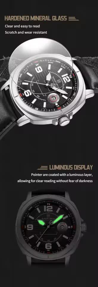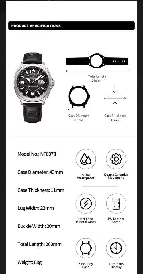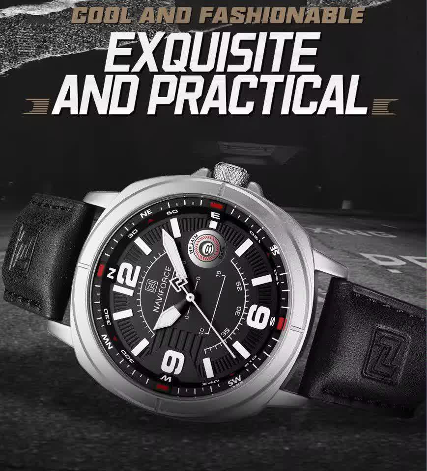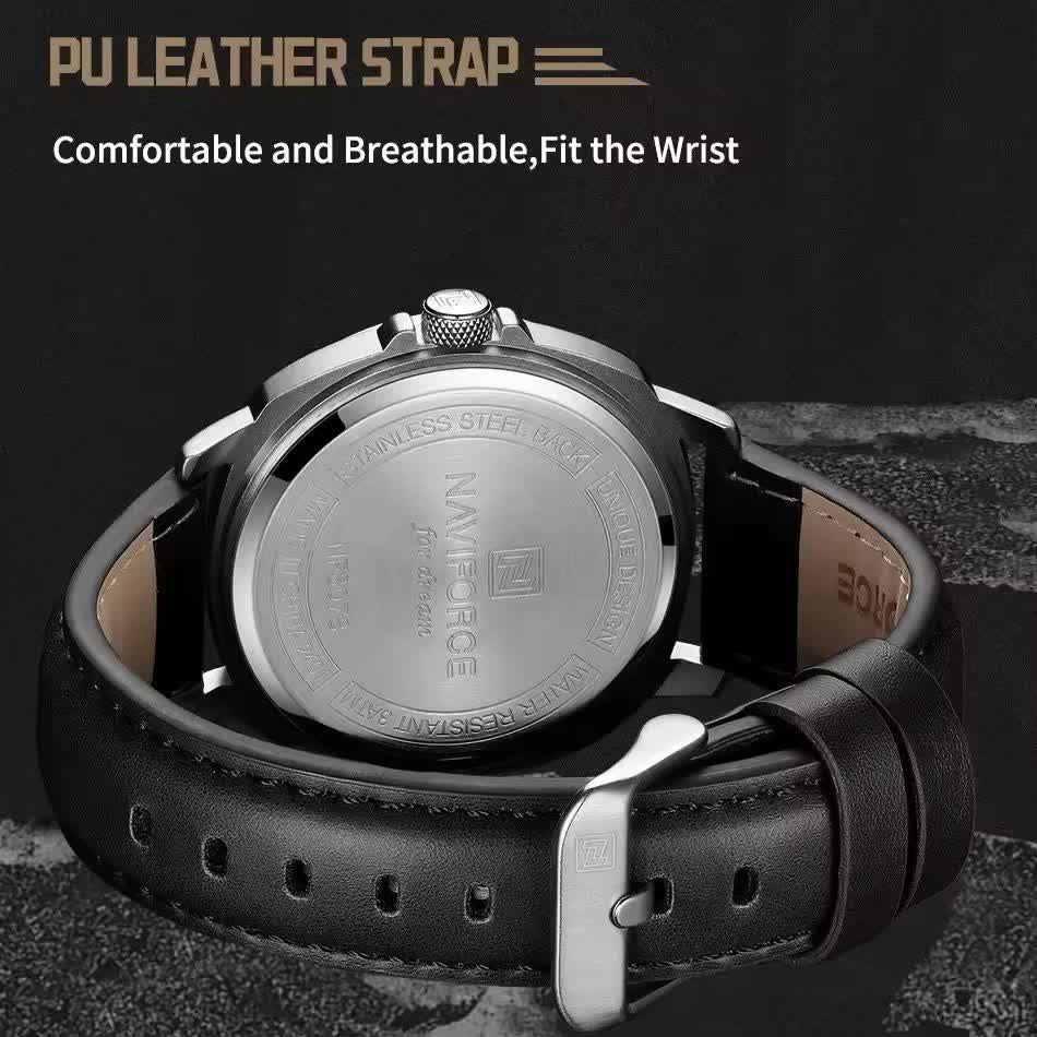 ساعت مچی عقربه ای مردانه نیوی فورس NAVIFORCE مدل NF8078 بند چرمی انتخابی شیک و کاربردی برای آقایان خوش سلیقه است. این ساعت دارای بند چرمی مشکی دور دوخت و ضد تعریق با صفحه گرد مشکی و قاب استیل رنگ ثابت میباشد که جلوهای کلاسیک و جذاب ایجاد میکند. موتور ژاپن کوارتز دقیق به همراه تقویم و عقربههای شب نما عملکردی قابل اعتماد را تضمین میکند. شیشه معدنی مقاوم قفل سگکی استاندارد و خاصیت ضد آب بودن آن را برای استفاده روزمره مناسب کرده است. این محصول به صورت کاملا ارجینال با جعبه و کارت گارانتی و همراه با گارانتی نیوی فورس ایران از فروشگاه اینترنتی روبی مد عرضه میشود.