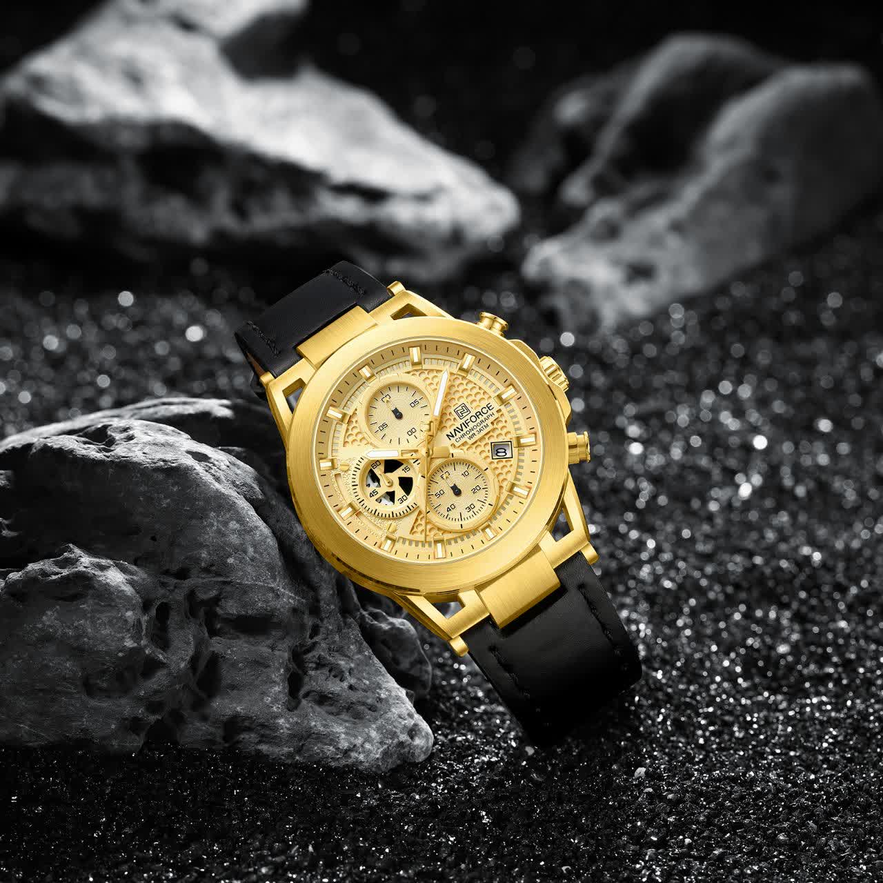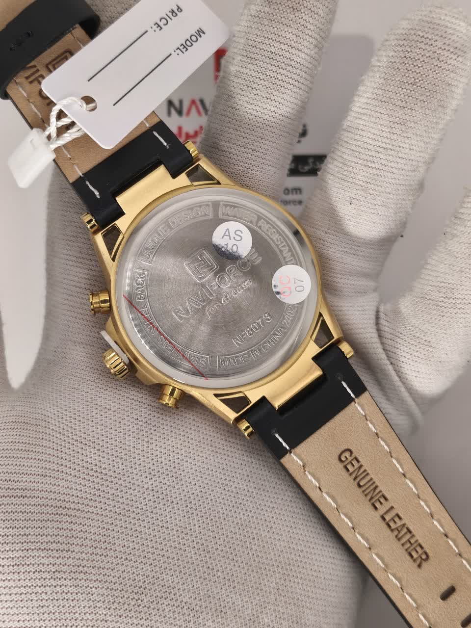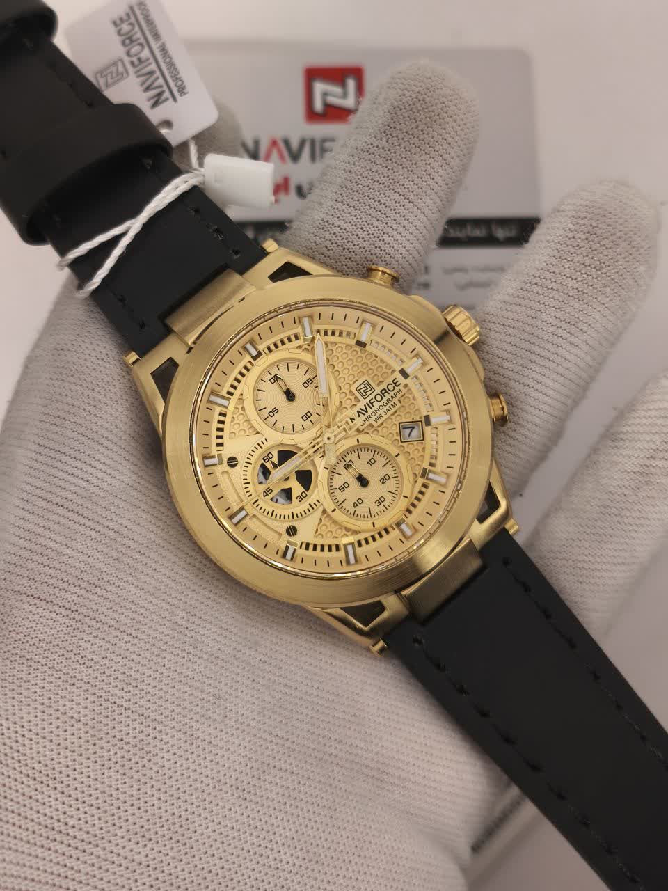 ساعت مچی کرنوگراف مردانه نیوی فورس NAVIFORCE مدل NF8073 با موتور ژاپن انتخابی لوکس و قدرتمند برای آقایان خوش استایل است. این مدل با بند چرم مشکی اصلی و باکیفیت دور دوخت و ضد حساسیت پوستی به همراه صفحه و قاب طلایی جلوهای رسمی و چشمگیر دارد. سه موتور فعال کرنوگراف به همراه تقویم و موتور ژاپن کوارتز دقت و کارایی بالایی را فراهم میکند. قاب استیل مقاوم شیشه معدنی ضد خش عقربههای شب تاب و خاصیت ضد آب بودن دوام و کیفیت ساعت را تضمین میکند. این محصول به صورت کاملا ارجینال با جعبه و کارت گارانتی و همراه با گارانتی نیوی فورس ایران از فروشگاه اینترنتی روبی مد عرضه میشود.