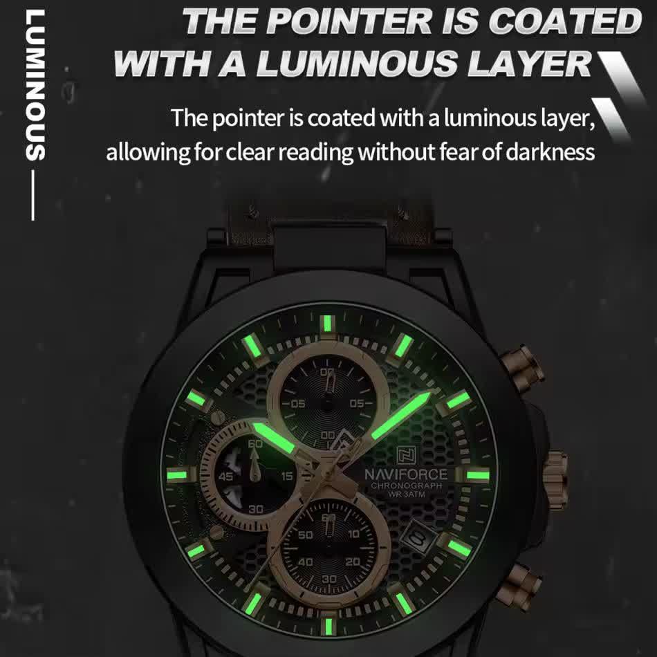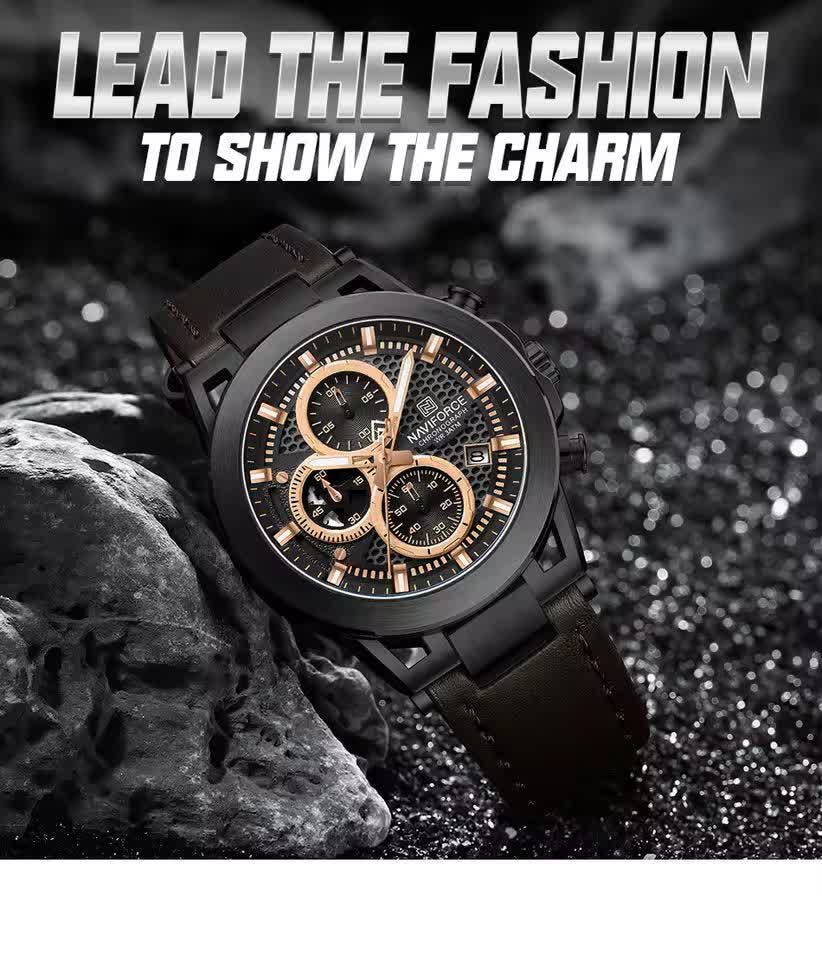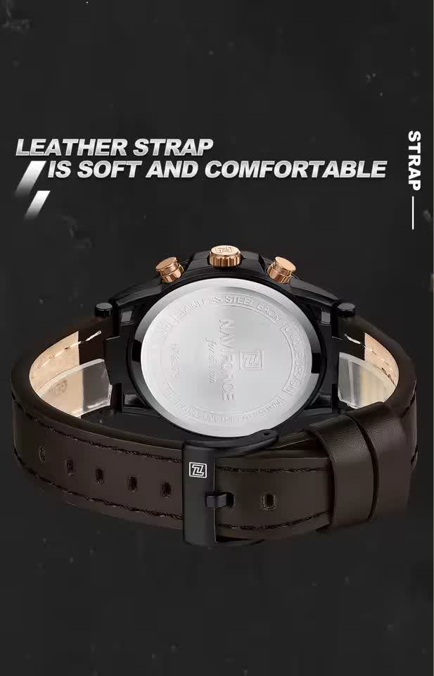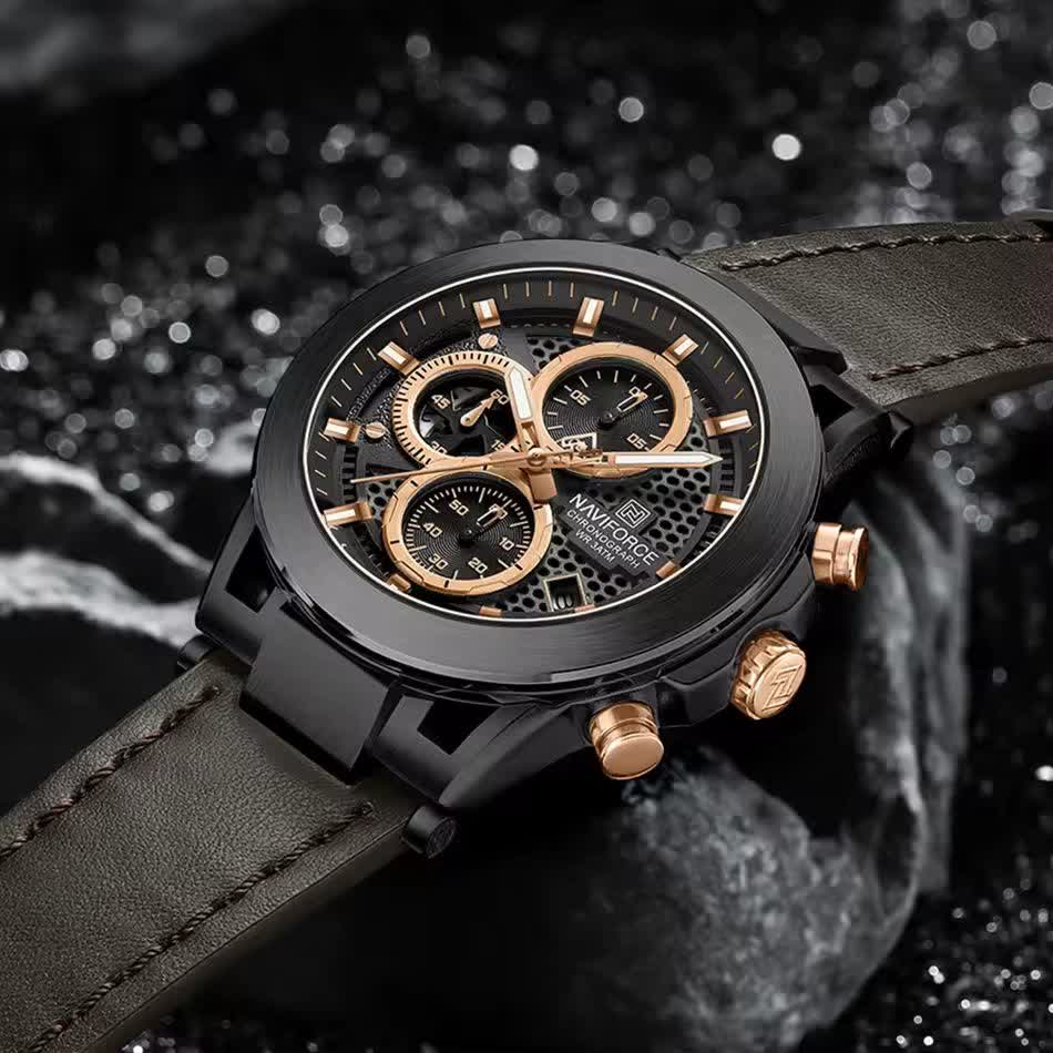 ساعت مچی کرنوگراف مردانه نیوی فورس NAVIFORCE مدل NF8073 با موتور ژاپن انتخابی شیک و حرفهای برای آقایان خوشسلیقه است. این ساعت با بند چرم قهوهای اصلی و باکیفیت دور دوخت و ضد حساسیت پوستی به همراه صفحه و قاب مشکی دایرهای جلوهای کلاسیک و جذاب دارد. سه موتور فعال کرنوگراف به همراه تقویم و موتور ژاپن کوارتز دقت و عملکرد قابل اعتمادی ارائه میدهد. قاب استیل مقاوم شیشه معدنی ضد خش عقربههای شب تاب و خاصیت ضد آب بودن دوام و کیفیت بالای ساعت را تضمین میکند. این محصول به صورت کاملا ارجینال با جعبه و کارت گارانتی و همراه با گارانتی نیوی فورس ایران از فروشگاه اینترنتی روبی مد عرضه میشود.