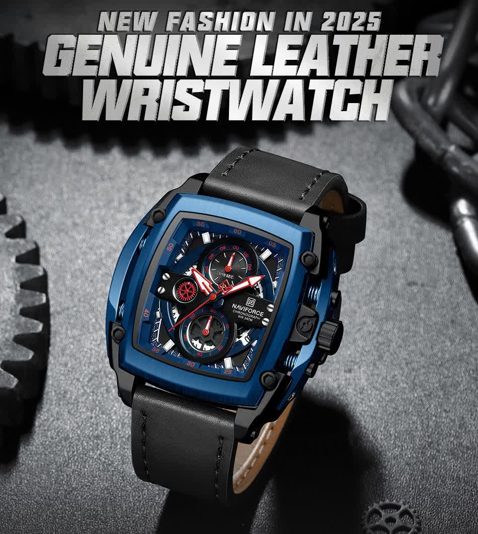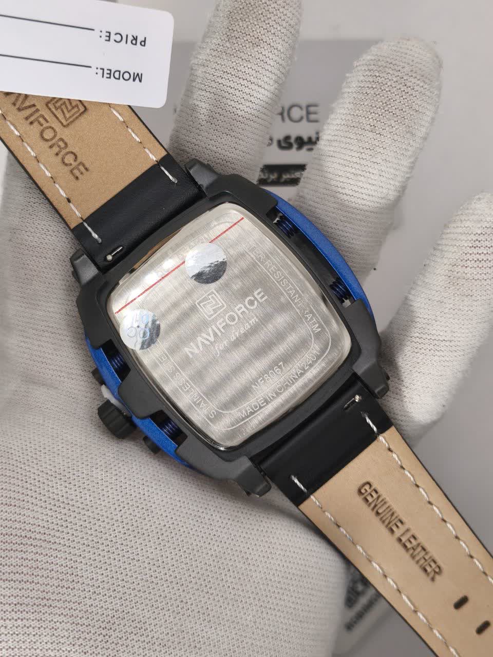 ساعت مچی کرنوگراف مردانه نیوی فورس NAVIFORCE مدل NF8067 با موتور ژاپن انتخابی شیک و حرفهای برای آقایان خوشسلیقه است. این ساعت با بند چرم مشکی اصلی و باکیفیت دور دوخت و ضد حساسیت پوستی به همراه صفحه مستطیل ترکیب سرمهای و مشکی و قاب استیل جلوهای کلاسیک و مدرن دارد. سه موتور فعال کرنوگراف به همراه تقویم و موتور ژاپن کوارتز دقت و عملکرد قابل اعتماد را ارائه میدهد. شیشه معدنی ضد خش عقربههای شب تاب قفل سگکی و خاصیت ضد آب بودن دوام و کیفیت بالای ساعت را تضمین میکند. این محصول به صورت کاملا ارجینال با جعبه و کارت گارانتی و همراه با گارانتی نیوی فورس ایران از فروشگاه اینترنتی روبی مد عرضه میشود.