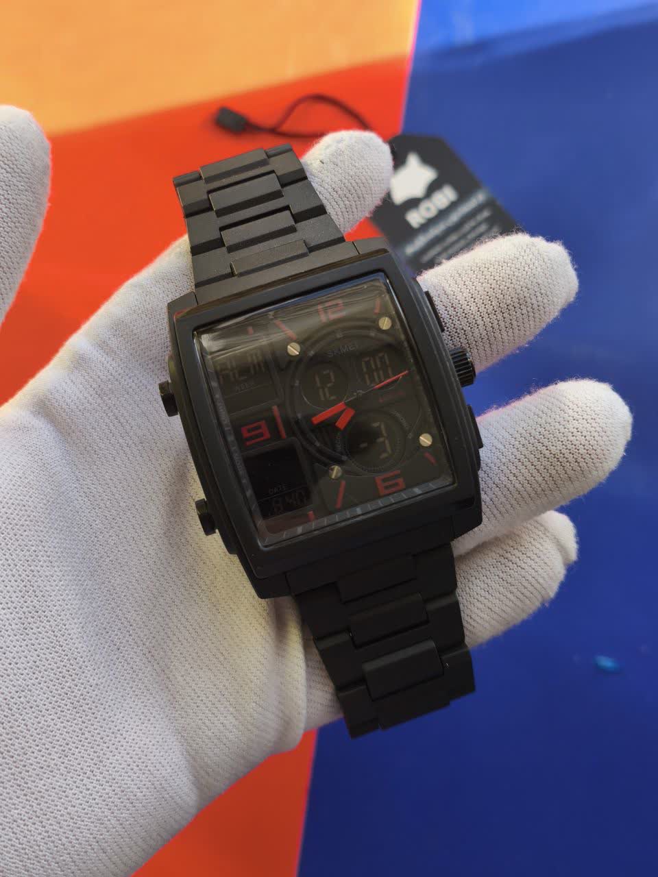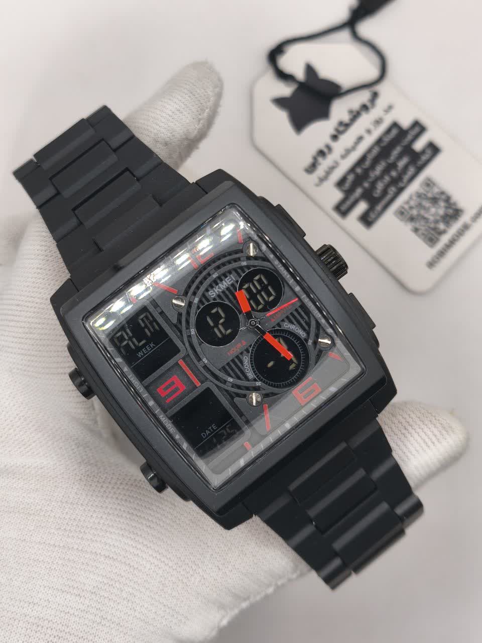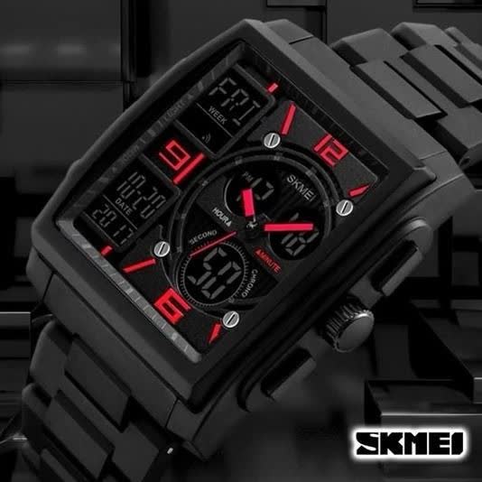ساعت مچي مردانه ديجيتال و عقربه اي اسکمي مدل SKMEI 1274 اورجينال با بند مشکی و صفحه مشکی قرمز دوزمانه و ضد آب تضمینی مجهز به صفحه چراغ دید در شب تاریخ شمار آلارم تایمر و قابلیتهای کاربردی دیگر بند پلی اورتان با بند کلیپسی ضامن دار و شیشه رزین و سافایر ضد خط و خش این ساعت ارجينال به همراه جعبه هدیه 🎁 از فروشگاه اینترنتی روبی مد قابل تهیه است و ترکیبی از استایل اسپرت و کیفیت بالا را به شما ارائه میدهد