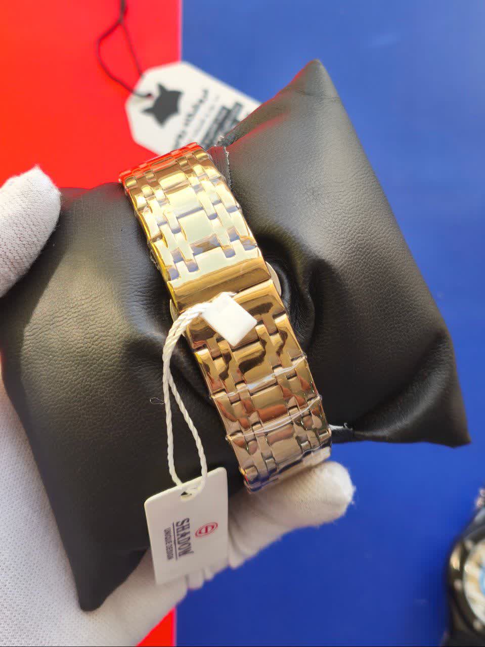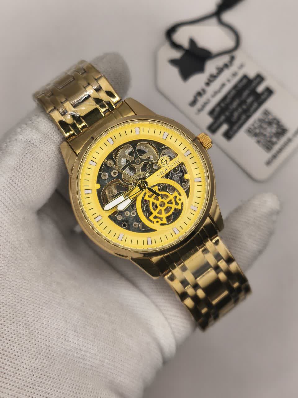 ساعت مچي مردانه اتوماتيک برند شدو SHADOW با بند نقرهای و صفحه طلایی فرم گرد طراحی بینظیر و کیفیت ساخت فوق العاده عالی بدون نیاز به باطری با موتور اتومات و صفحه چرخ دنده متحرک شیشه سافایر ضد خط و خش و پشت و رو نمایان با لنگر متحرک بند ضد حساسیت پوستی رنگ ثابت و ضد آب با قفل جدید پروانهای این ساعت اورجينال و کار خاص بدون مشابه به همراه جعبه هدیه 🎁 از فروشگاه اینترنتی روبی مد قابل تهیه است و یه اتوماتیک فوق العاده جذاب برای تکمیل استایل شما