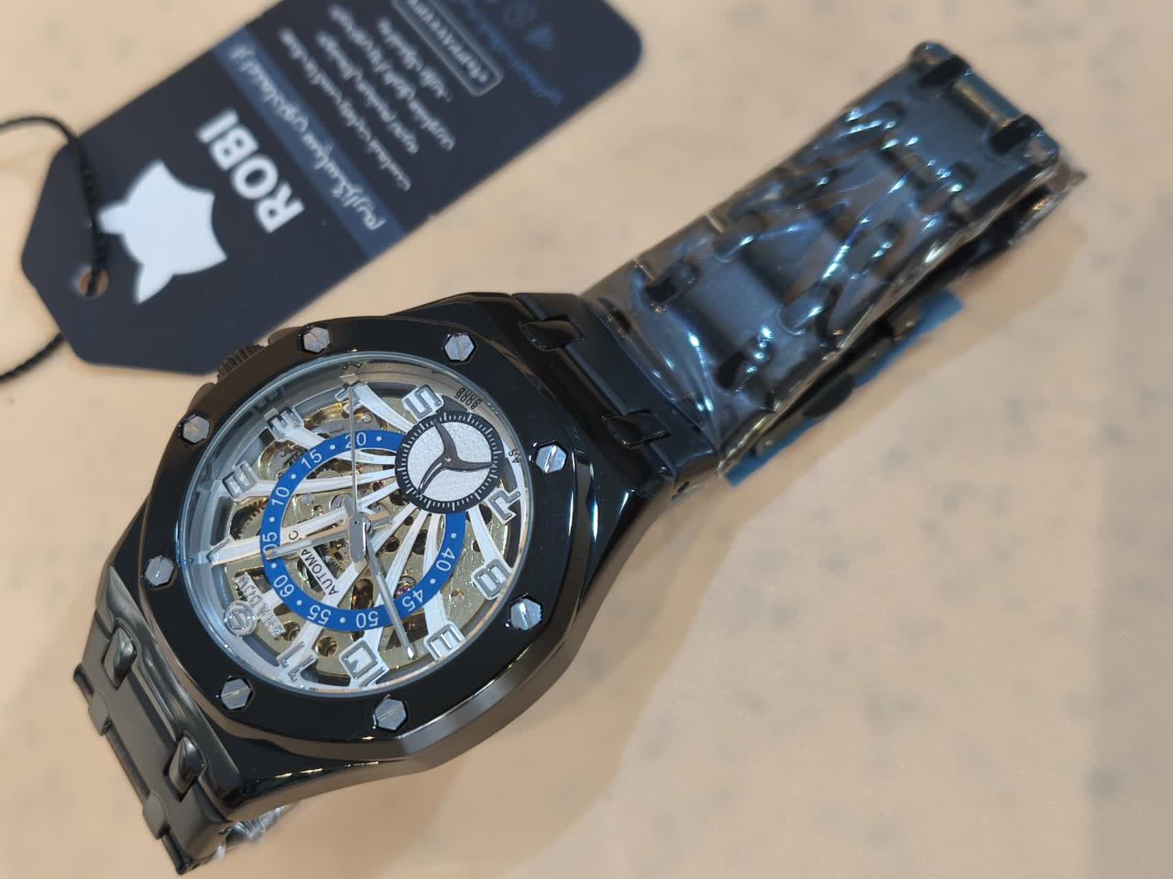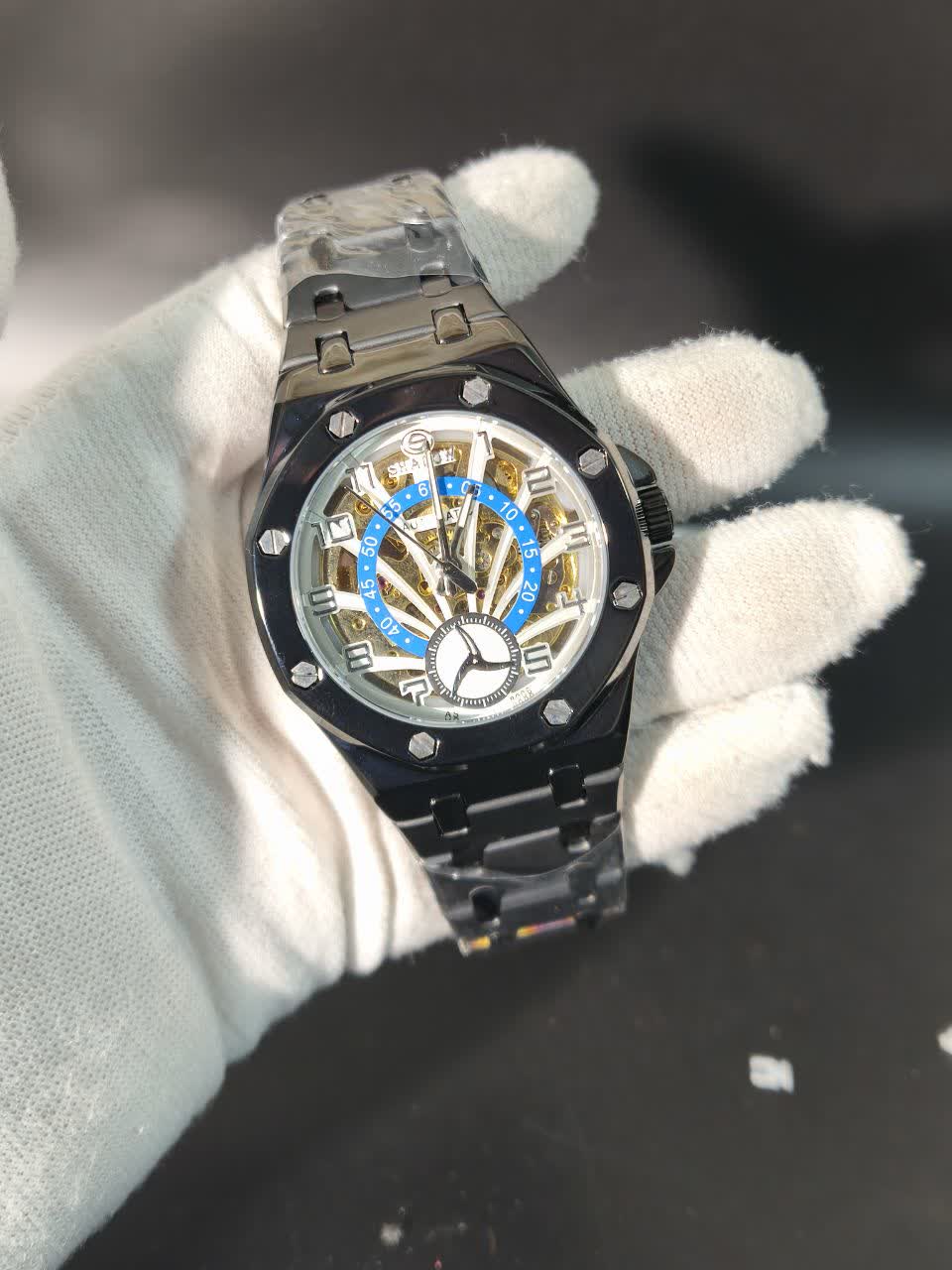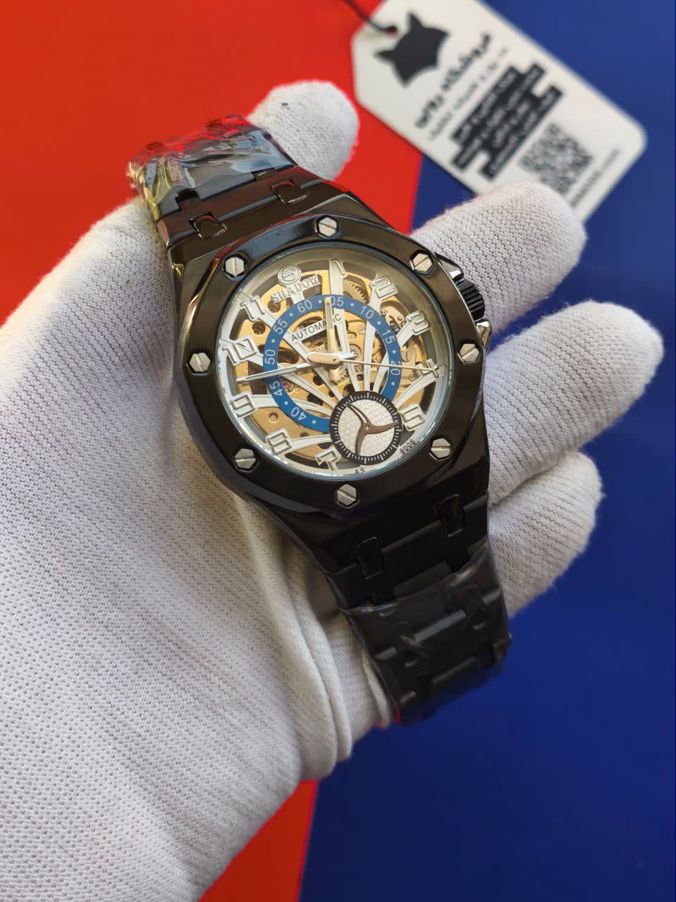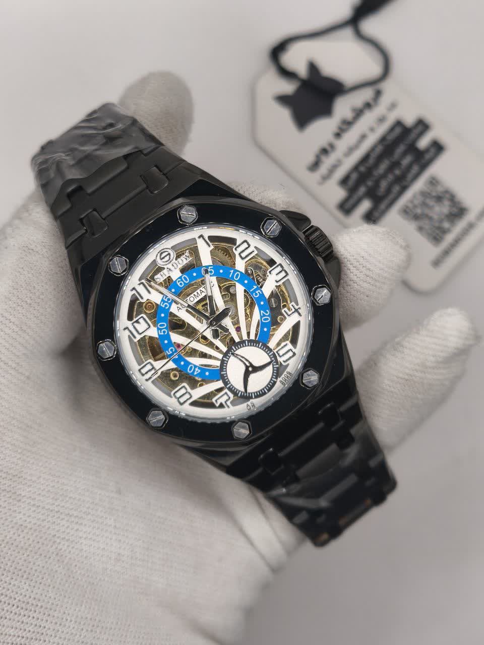 ساعت مچي مردانه اتوماتيک برند شدو SHADOW با بند مشکی و صفحه چند رنگ طراحی بینظیر و کیفیت ساخت فوق العاده عالی بدون نیاز به باطری با موتور اتومات و صفحه چرخ دنده متحرک شیشه سافایر ضد خط و خش و پشت و رو نمایان با لنگر متحرک بند ضد حساسیت پوستی رنگ ثابت و ضد آب با قفل کلیپسی ضامن دار این ساعت اورجينال و کار خاص بدون مشابه به همراه جعبه هدیه 🎁 از فروشگاه اینترنتی روبی مد قابل تهیه است و یک اتوماتیک بینظیر برای تکمیل استایل شما