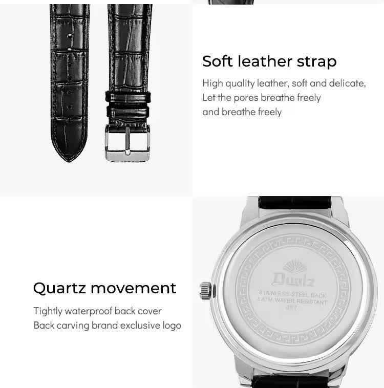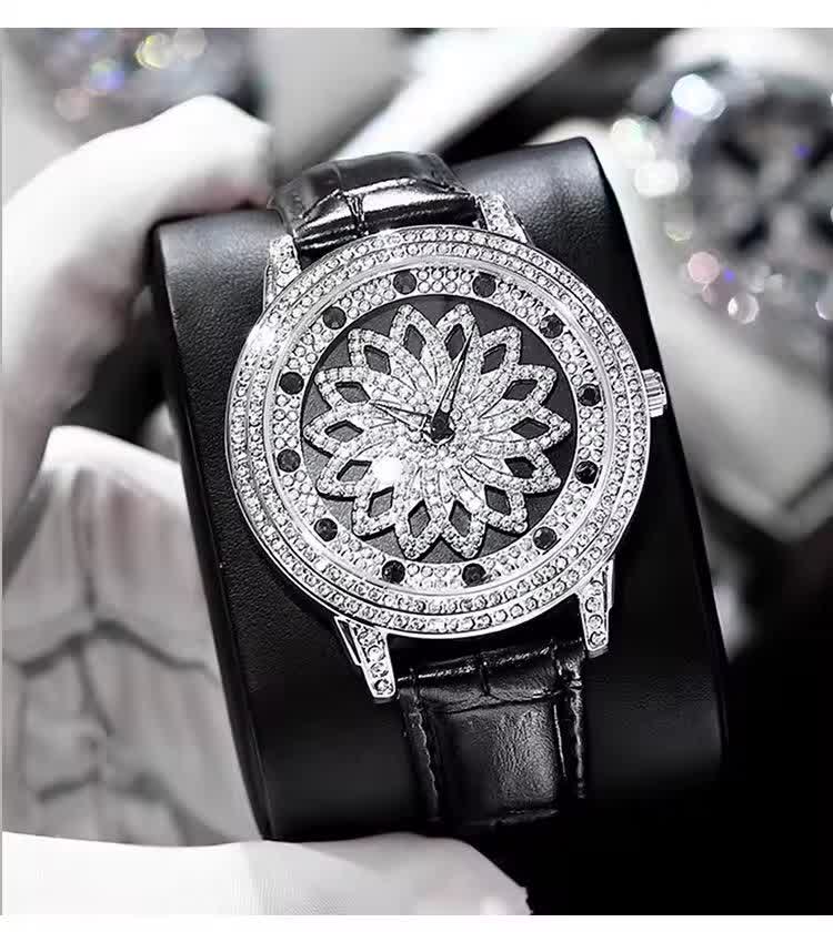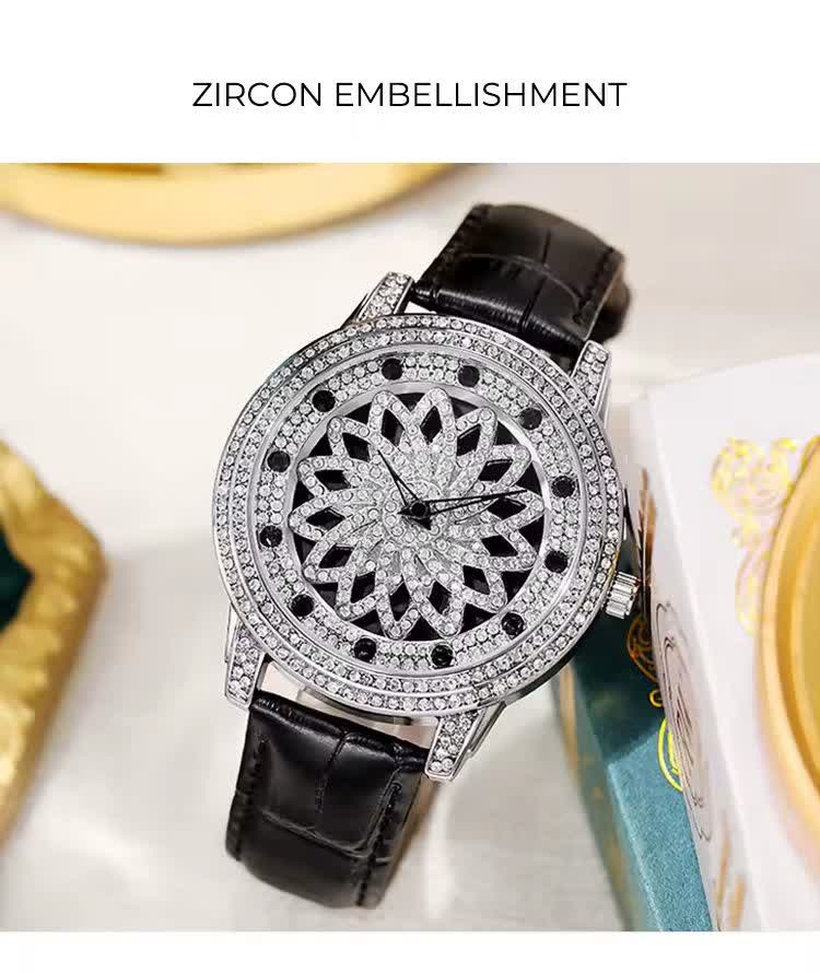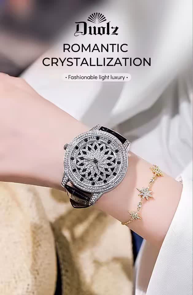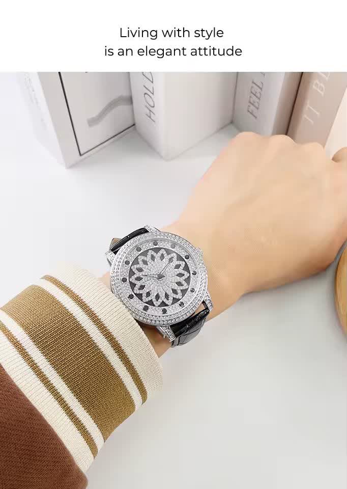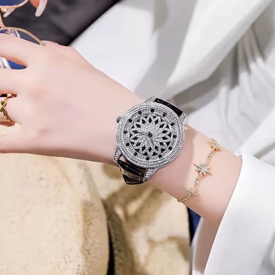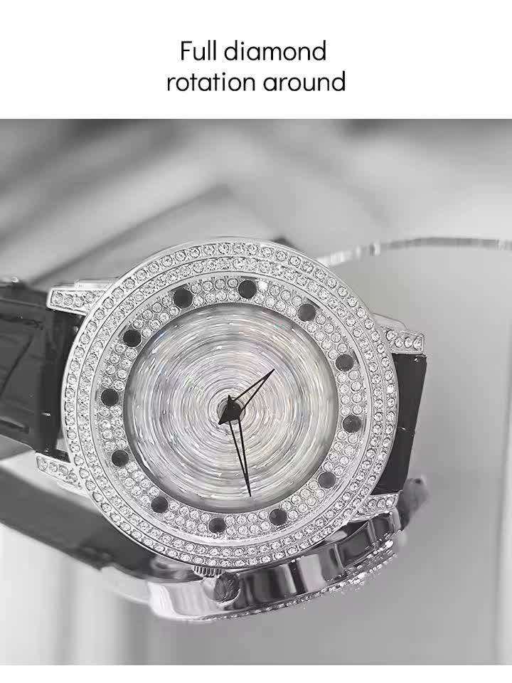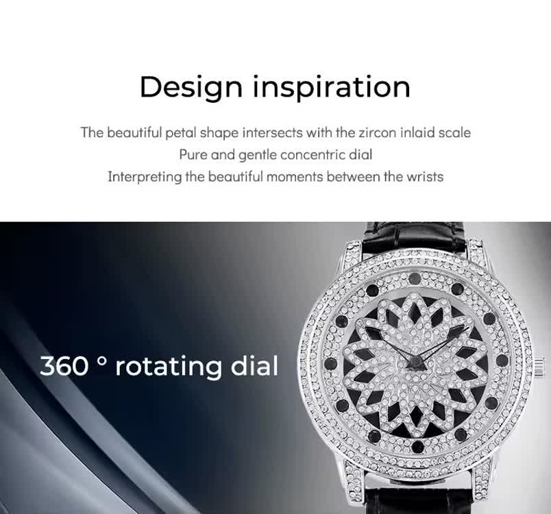 ساعت مچي زنانه رينگي چرخشي با بند چرمی باکیفیت رنگ مشکی و صفحه نقرهای طراحی دایرهای و صفحه متحرک با حرکت دست مجهز به موتور کوارتز با دقت بالا و صفحه فول نگین قاب استیل و شیشه معدنی ضد خش سافایر بند چرمی دور دوخت ضد حساسیت پوستی با قفل سوزنی سگکی کمربندی و ضد آب این ساعت زیبا و شیک از فروشگاه اینترنتی روبی مد قابل تهیه است و استایل شما را با جذابیت و کیفیت بالا تکمیل میکند