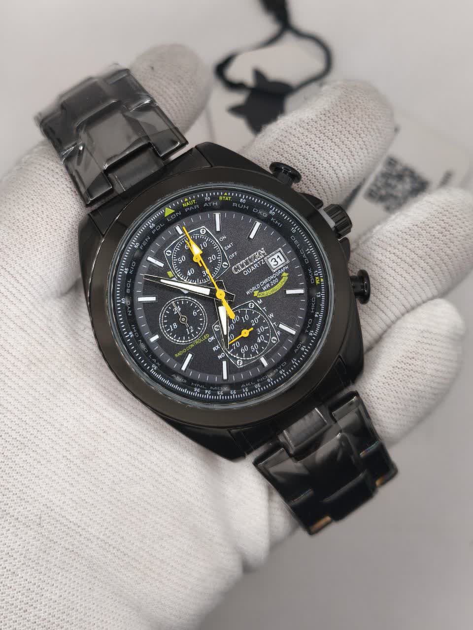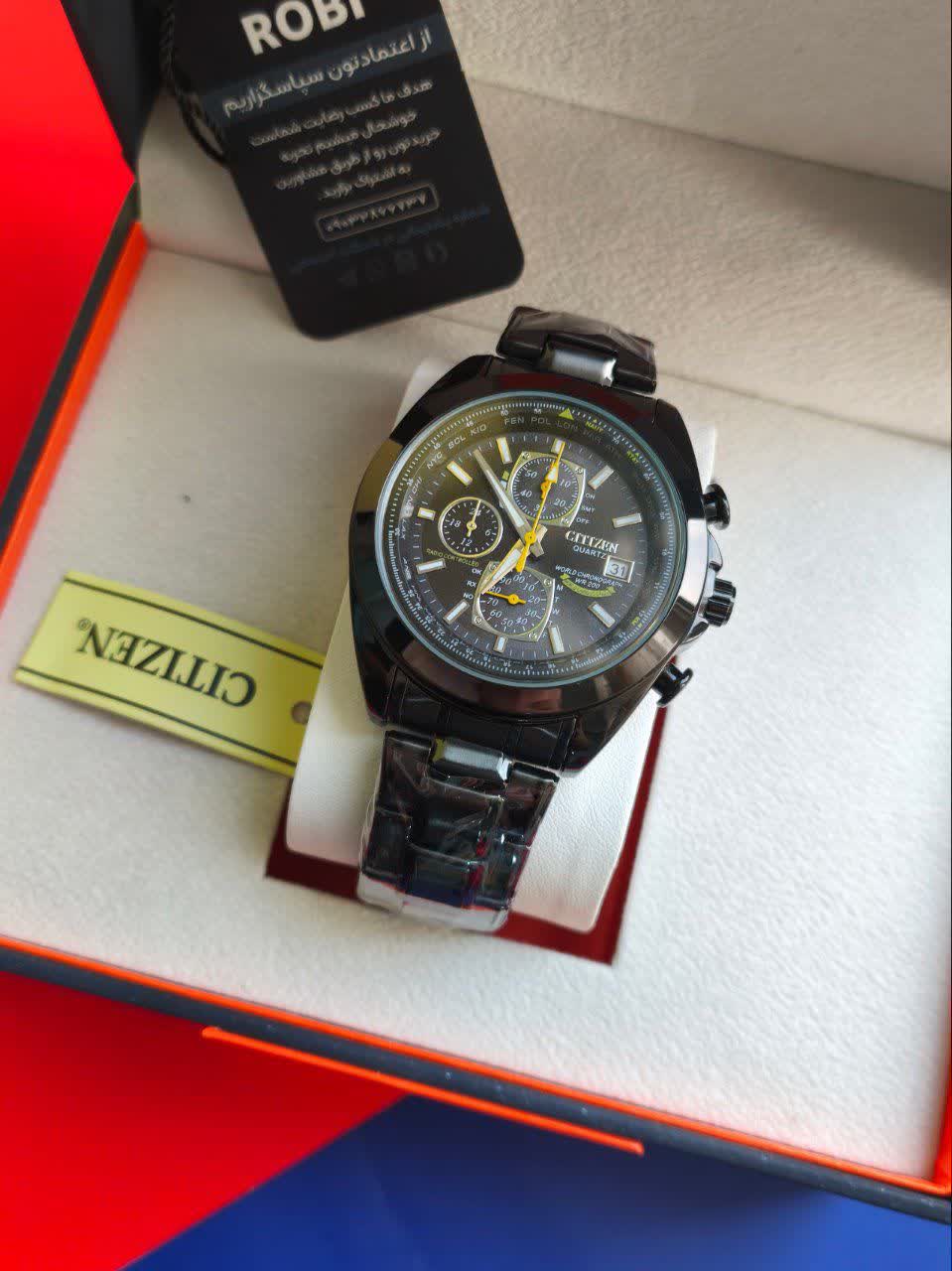 ساعت مچي مردانه کرنوگراف برند سيتيزن CITEZEN مدل 3310 سه موتوره فول مشکي با بند و صفحه مشکی فرم دایرهای و سه موتور فعال کرنوگراف طراحی کژوال لوکس فشن خلبانی مجهز به تقویم و عقربه شب نما موتور کوارتز ژاپنی اورجينال شیشه معدنی ضد خش سافایر و بند استیل توپُر سنگین درجه 1 ضد حساسیت پوستی و رنگ ثابت با قفل کلیپسی ضامن دار ضد آب صددرصد این ساعت با گارانتی و جعبه از فروشگاه اینترنتی روبی مد قابل تهیه است و در رنگهای دیگر هم موجود میباشد کافیست پیام بدهید