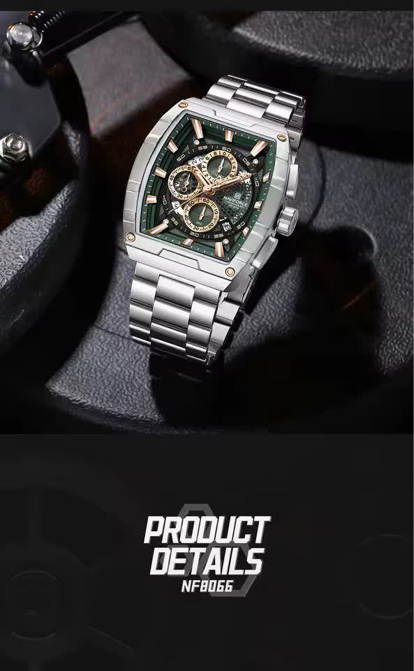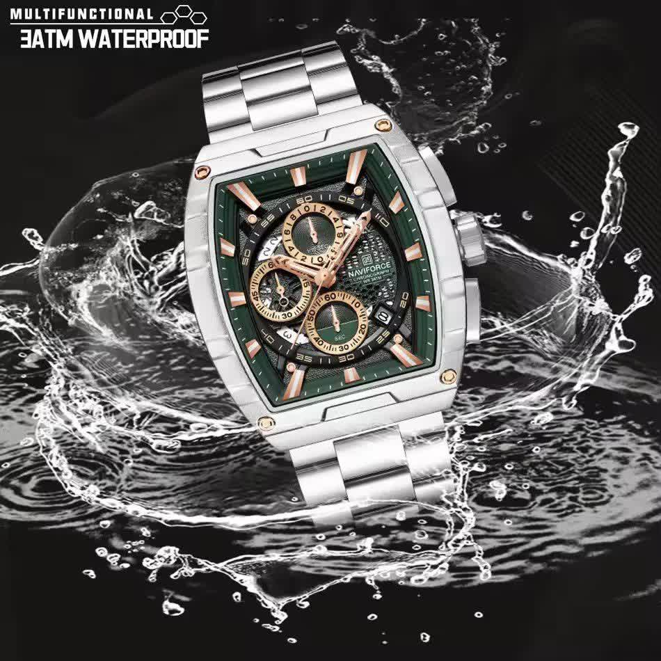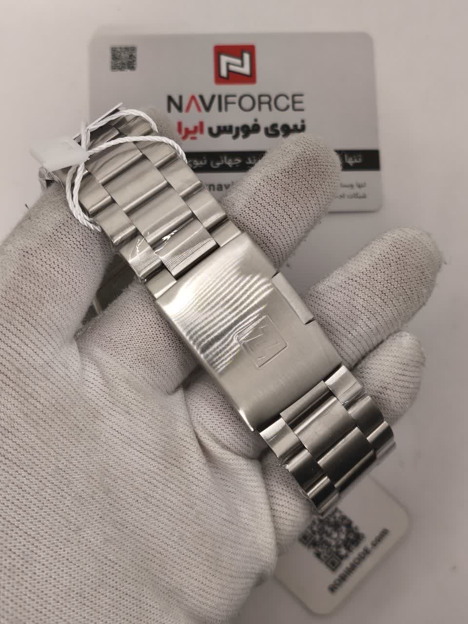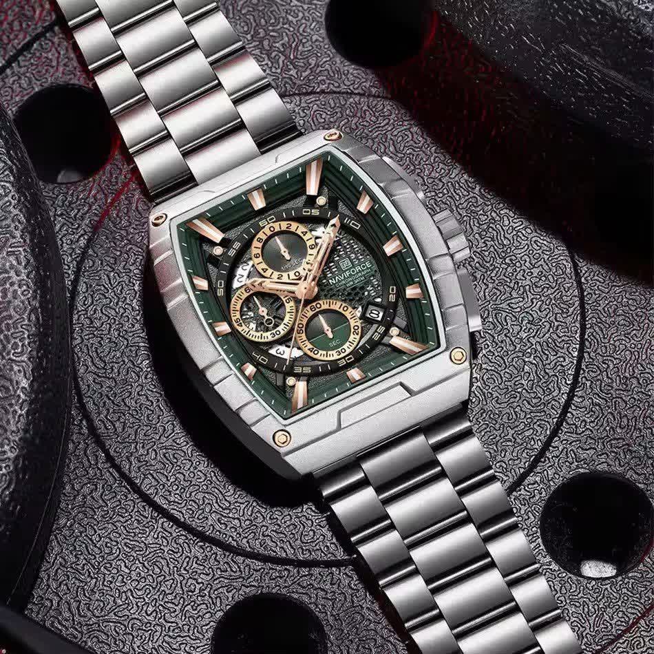 ساعت مچی کرنوگراف مردانه نیوی فورس NAVIFORCE مدل Nf8066 با صفحه سبز و موتور ژاپن کوارتز انتخابی خاص و متفاوت برای آقایان خوش سلیقه است. این مدل با بند استیل ضد زنگ توپُر و سنگین و صفحه مستطیلی طراحی شده و جلوه ای مدرن و لوکس دارد. سه موتوره کرنوگراف تقویم دار قاب استیل عقربه های شب تاب شیشه معدنی ضد خش و مقاومت در برابر آب از ویژگی های کاربردی این ساعت هستند. بند ضد حساسیت پوستی در کنار قفل کلیپسی ضامن دار راحتی و ایمنی بالایی فراهم می کند. این محصول اصل به همراه جعبه و کارت گارانتی معتبر نیوی فورس ایران از فروشگاه اینترنتی روبی مد عرضه می شود.