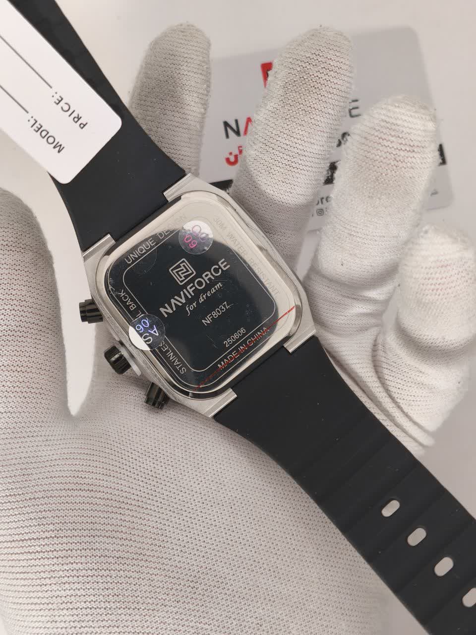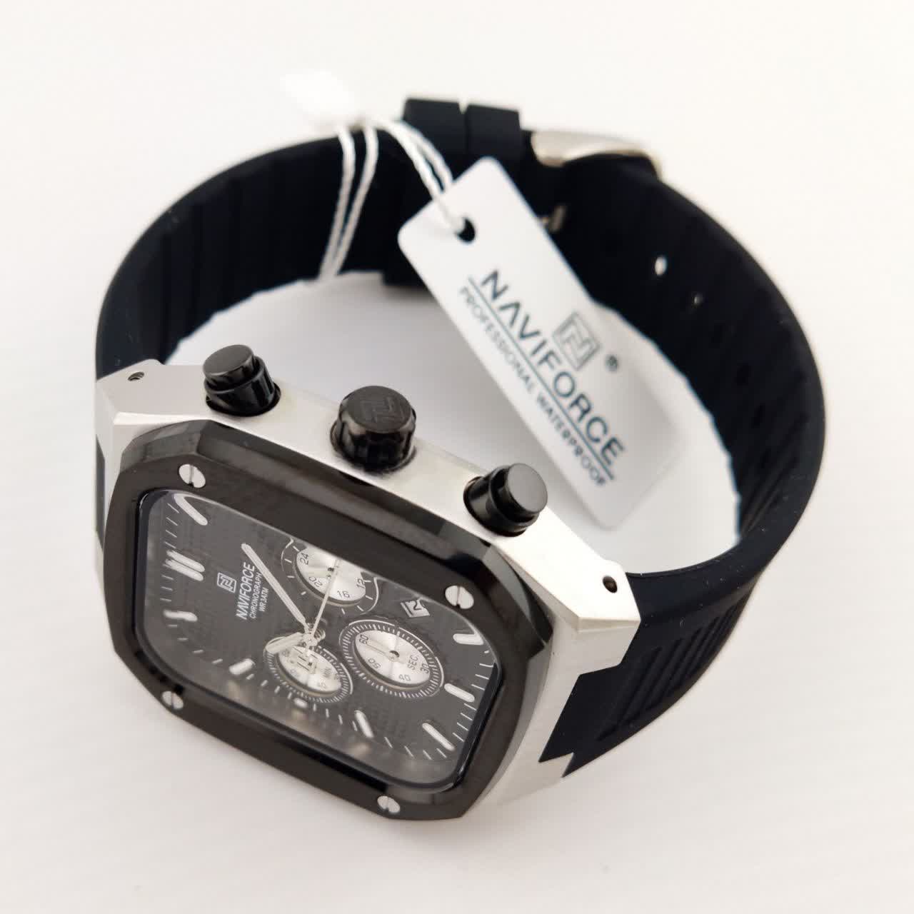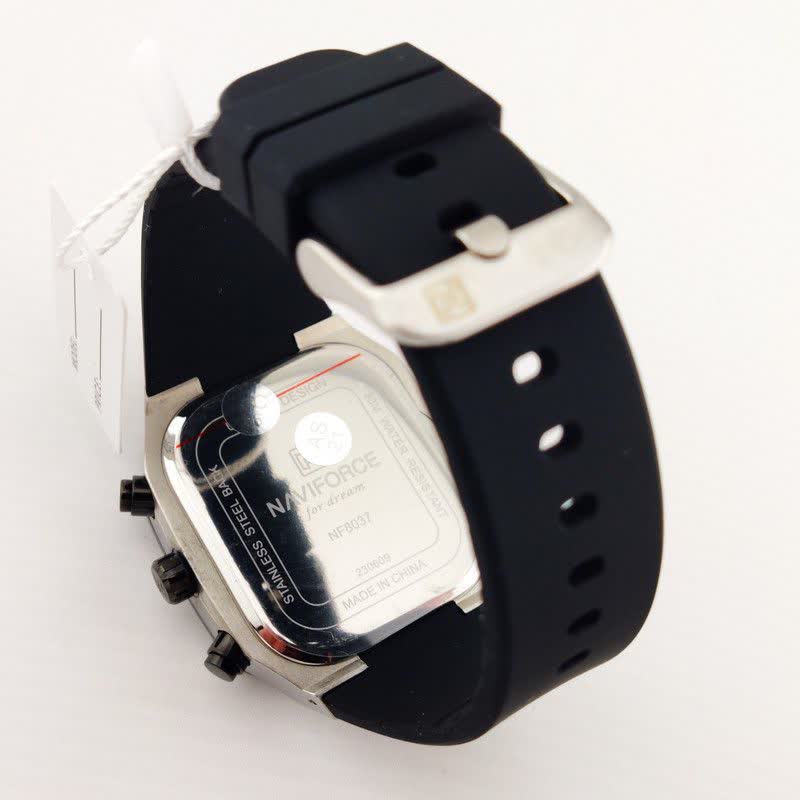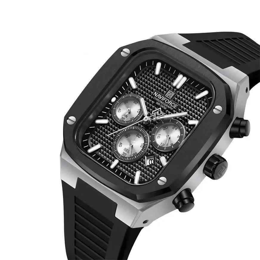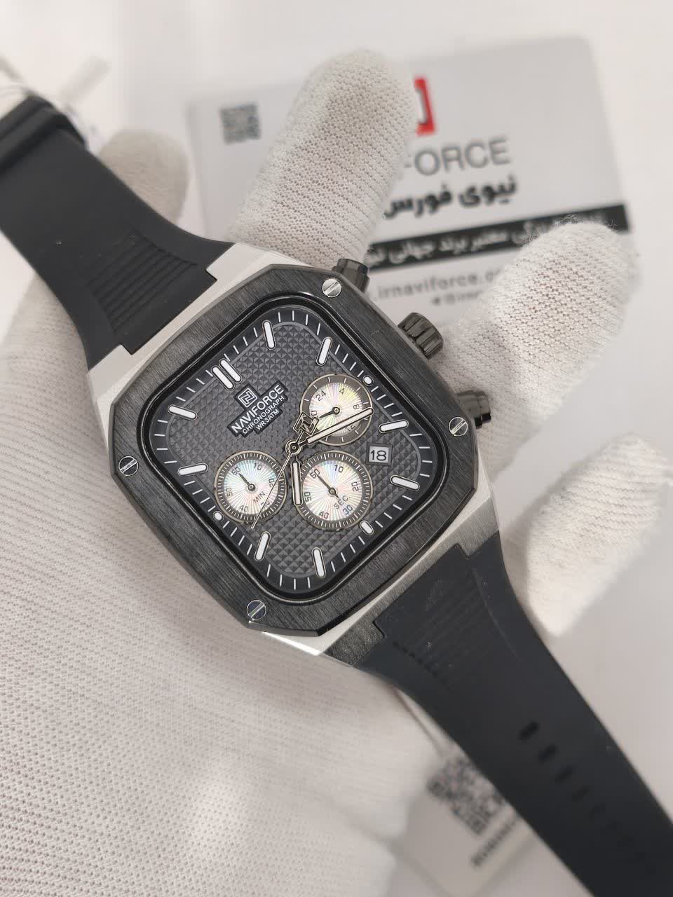 ساعت مچی مردانه سه موتوره نیوی فورس NAVIFORCE مدل Nf8037 اورجینال با طراحی کاملا مشکی انتخابی اسپرت و قدرتمند برای استفاده روزمره است. این مدل با بند رابر مقاوم و صفحه مشکی دارای سه موتور فعال موتور ژاپن تقویم و قابلیت ضد آب می باشد. برند نیوی فورس به صورت حکاکی شده روی قفل قاب و صفحه اصالت کالا را نشان می دهد. شیشه معدنی ضد خش خاصیت شب نما و رنگ ثابت تضمینی دوام و کارایی ساعت را افزایش می دهد. این محصول اصل به همراه جعبه و کارت گارانتی معتبر نیوی فورس ایران از فروشگاه اینترنتی روبی مد ارائه می شود.