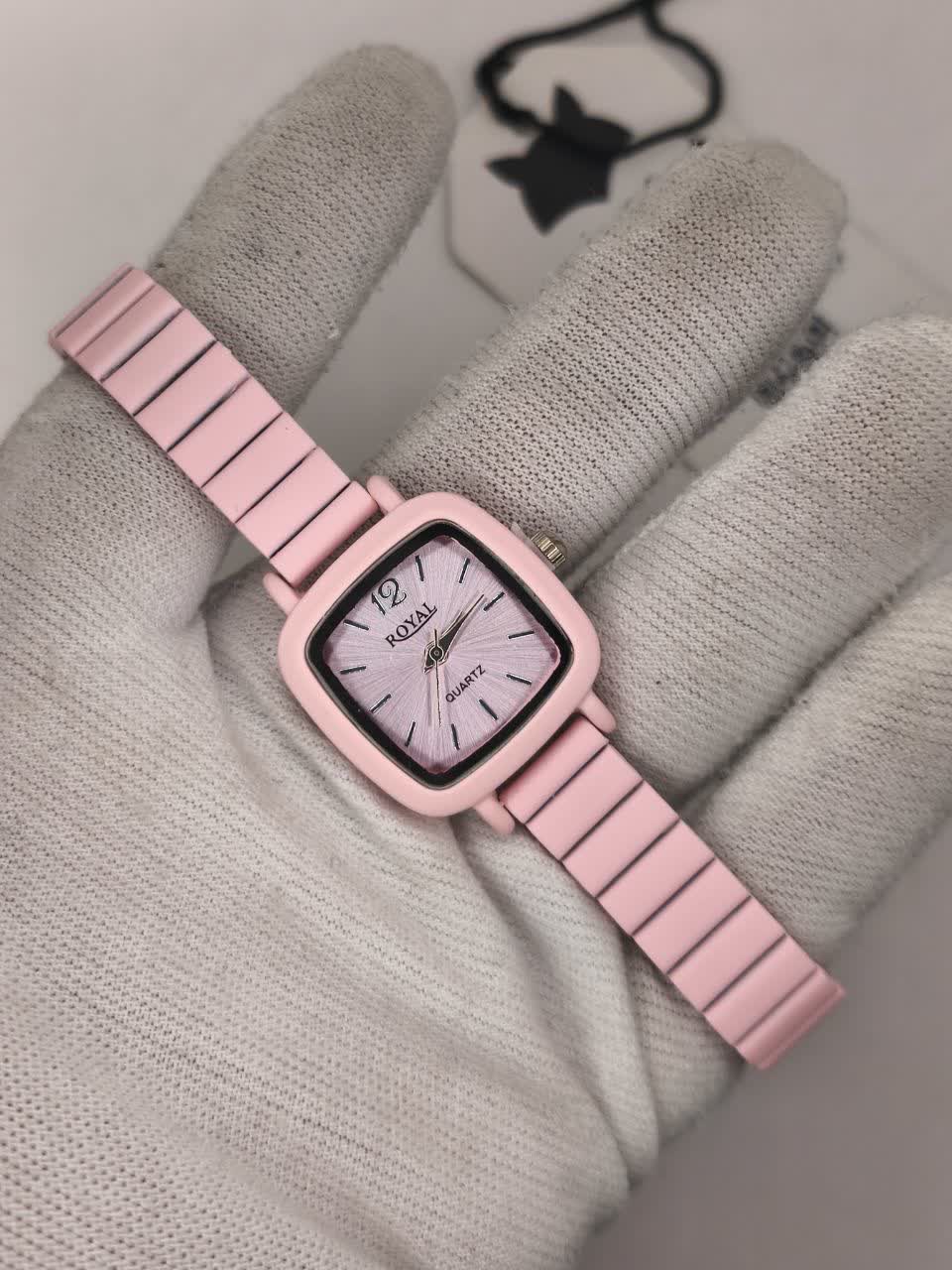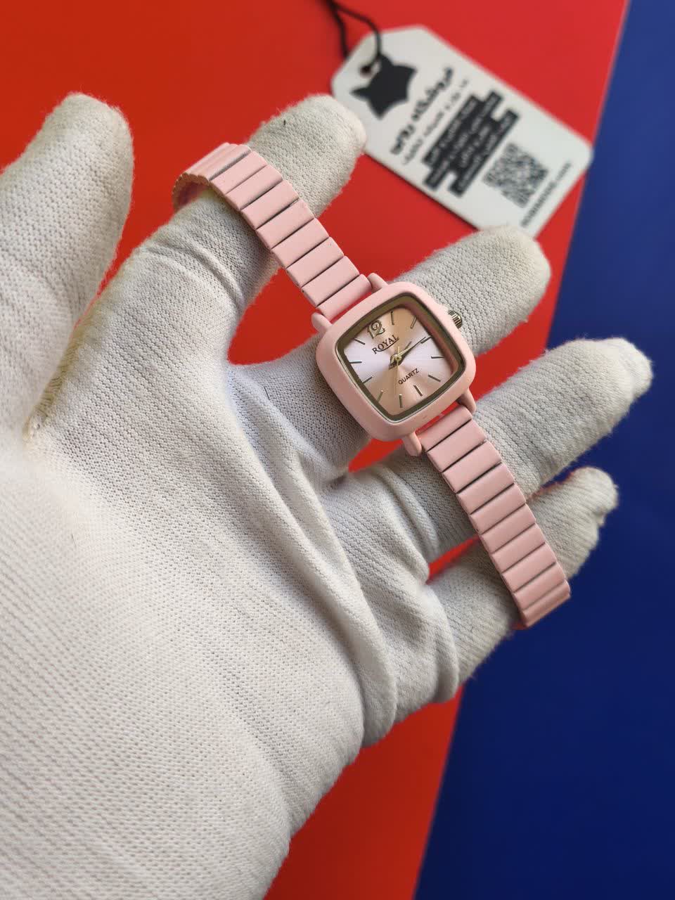 ساعت مچی دخترانه رویال با بند کرکرهای یونانی و صفحه مربعی صورتی از برند شرکتی با کیفیت عالی و رنگ ثابت ارائه میشود صفحه چندضلعی تراشکاری شده و شب نما دارد و با موتور کوارتز دقیق همراه است بند کرکرهای جذاب و ضد حساسیت با قابلیت ضد آب مناسب برای استفاده روزمره است رنگ کورهای آن زیبا و ضد زنگ است و در فروشگاه اینترنتی روبی مد با رنگهای متنوع و صفحه دایرهای نیز موجود است برای سفارش پیام دهید