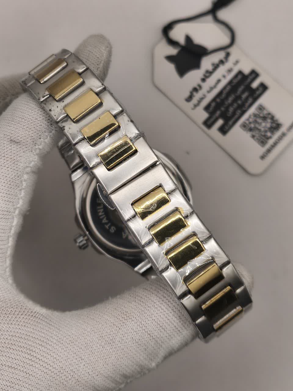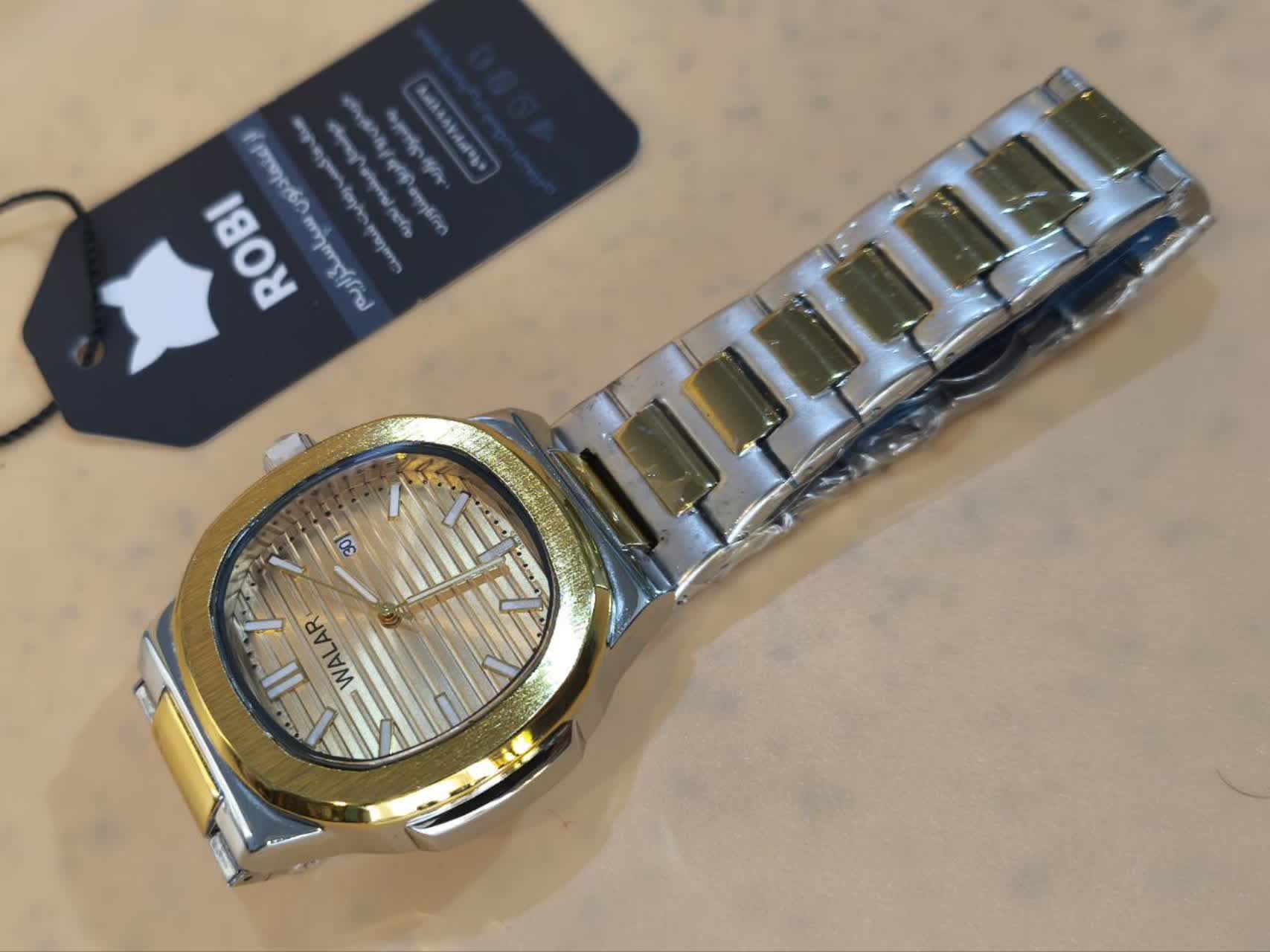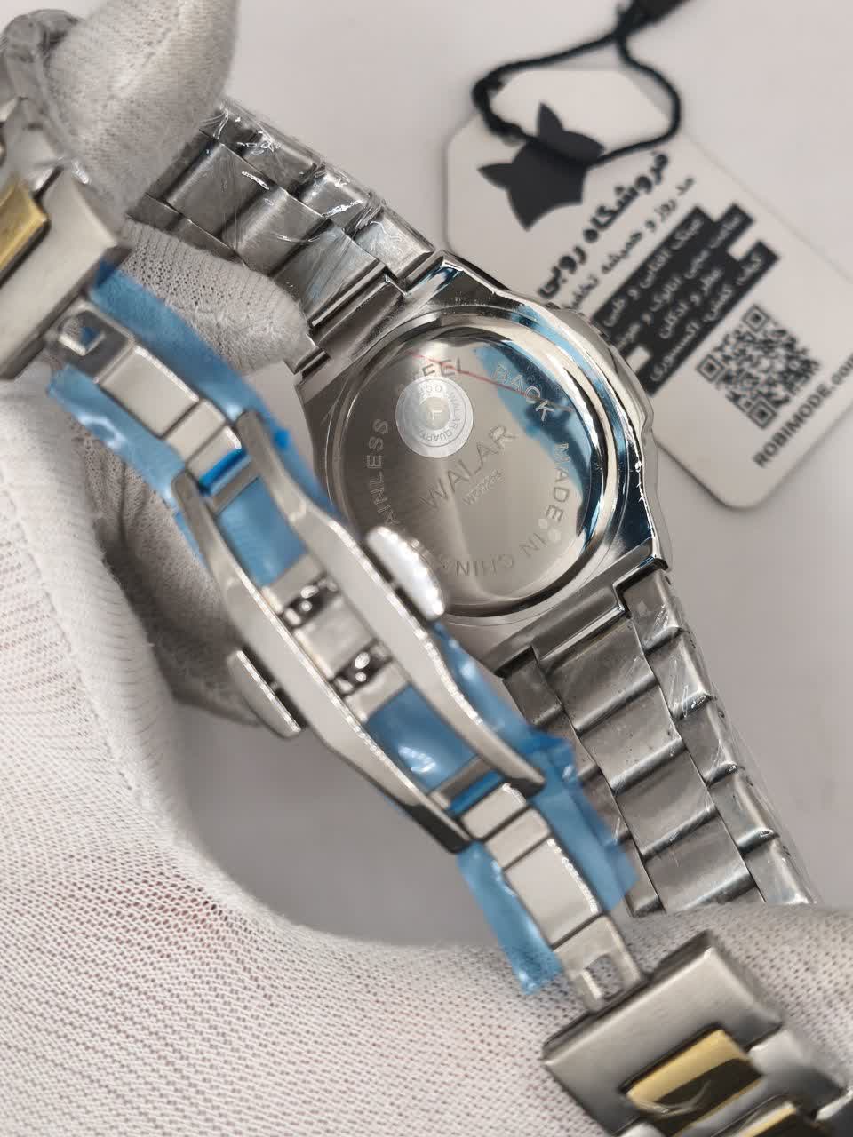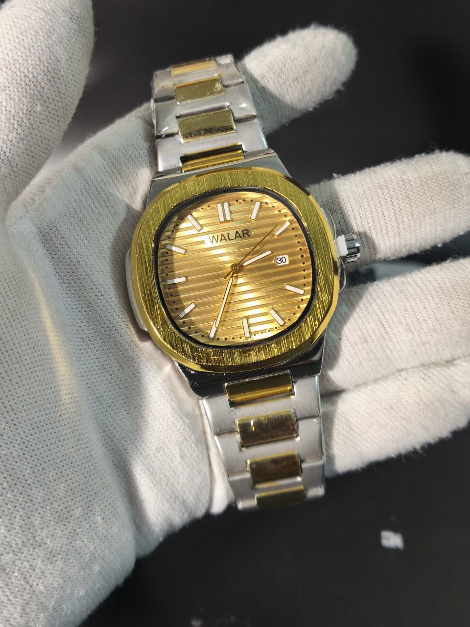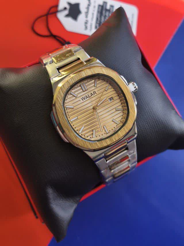 ساعت مچی مردانه پتک فیلیپ از برند شرکتی والار با طراحی لوکس و رگه طلایی روی بند نقرهای و صفحه طلایی تولید شده است این ساعت با بند استیل رنگثابت و بند توپور سنگین بینظیر همراه است و قفل پروانهای مخفی دارد فرم صفحه چندضلعی و تقویم دارد و ضد آب است تضمین رنگ و کیفیت ارائه میشود و به همراه جعبه هدیه عرضه میگردد در فروشگاه اینترنتی روبی مد رنگهای دیگر نیز موجود است پیام دهید