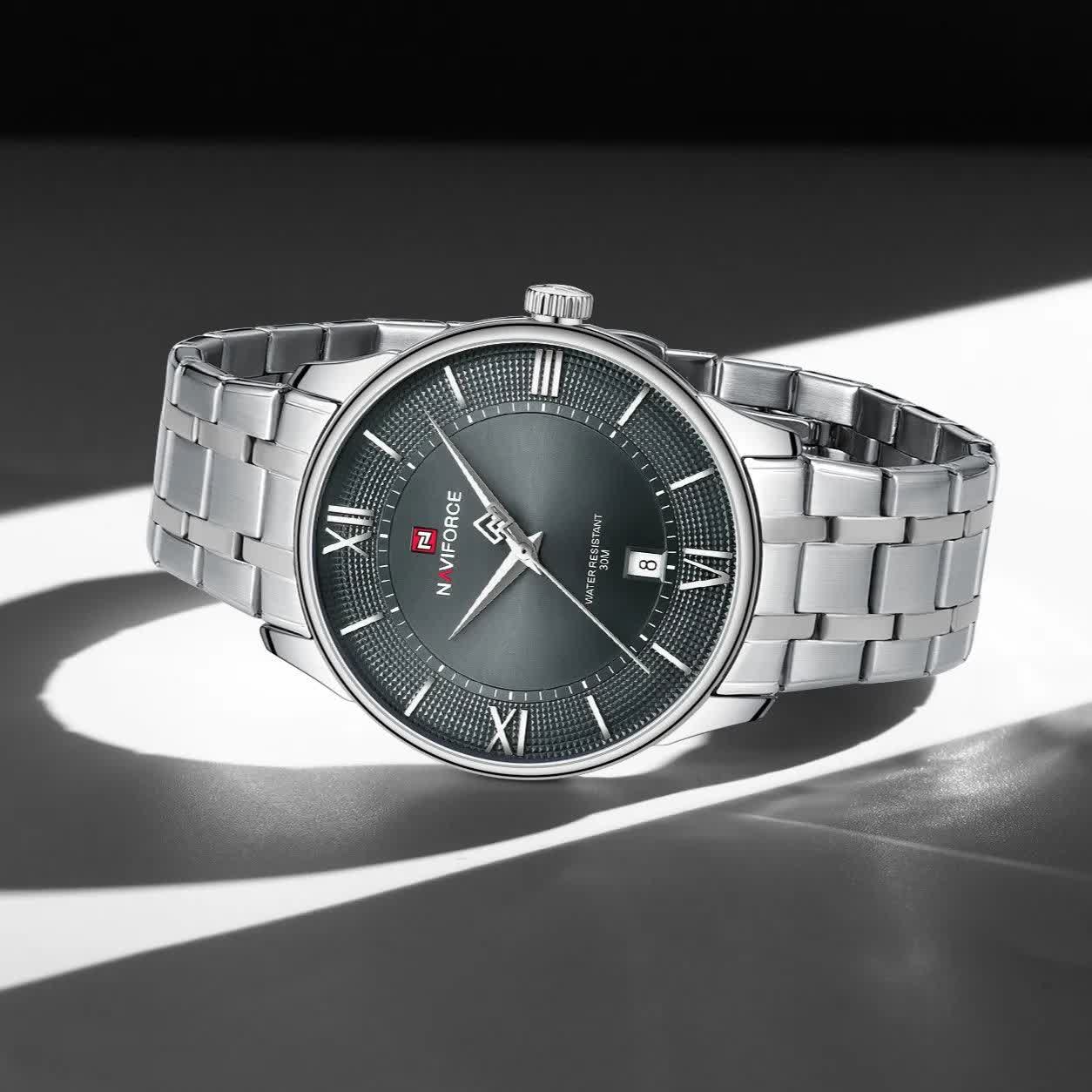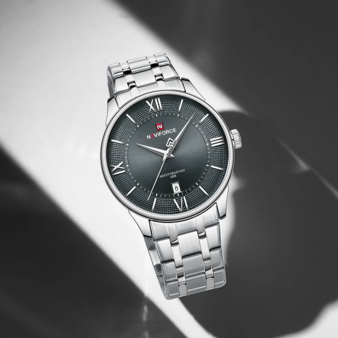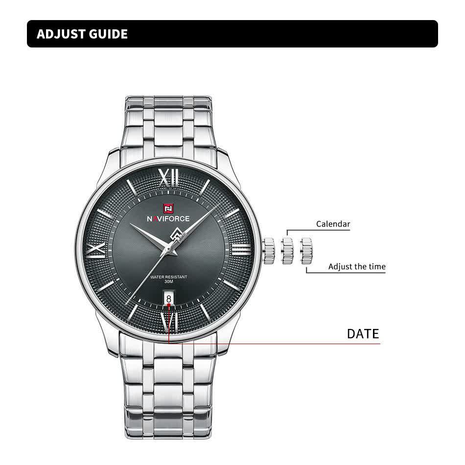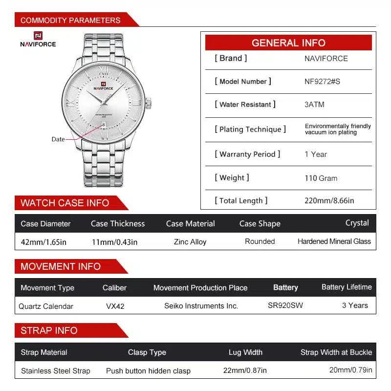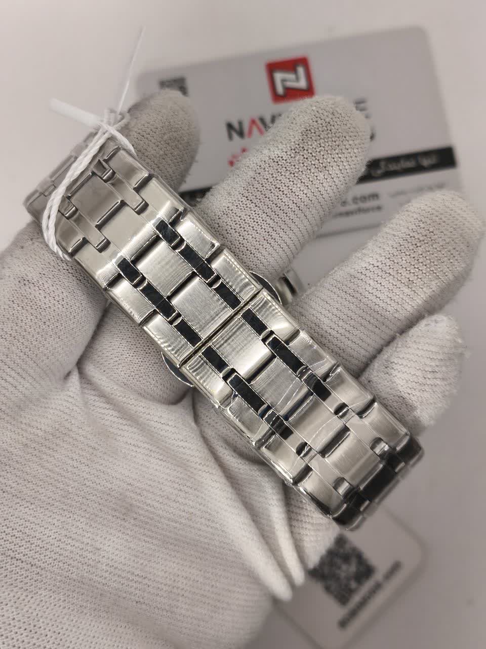ساعت مچی عقربه ای مردانه نیوی فورس مدل Nf9272s با بندسفيد و صفحه مشکی، یک انتخاب شیک و بادوام است. این مدل ارجینال با کارت گارانتی و جعبه به همراه گارانتی نیوی فورس ایران عرضه میشود. دارای موتور ژاپن با تکنولوژی کوارتز، تقویم، دقت موتور بالا، قاب و بند استیل ضد زنگ توپُر سنگین، عقربه شب تاب و شیشه معدنی ضد خش است. همچنین دارای بند ضد حساسیت پوستی و قفل پروانه ای دو قفله میباشد. برای مشاهده و خرید این ساعت باکیفیت به فروشگاه اینترنتی روبیمد سر بزنید.