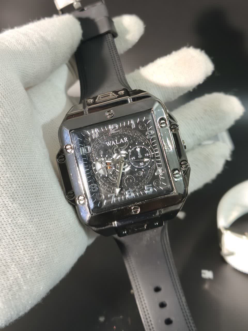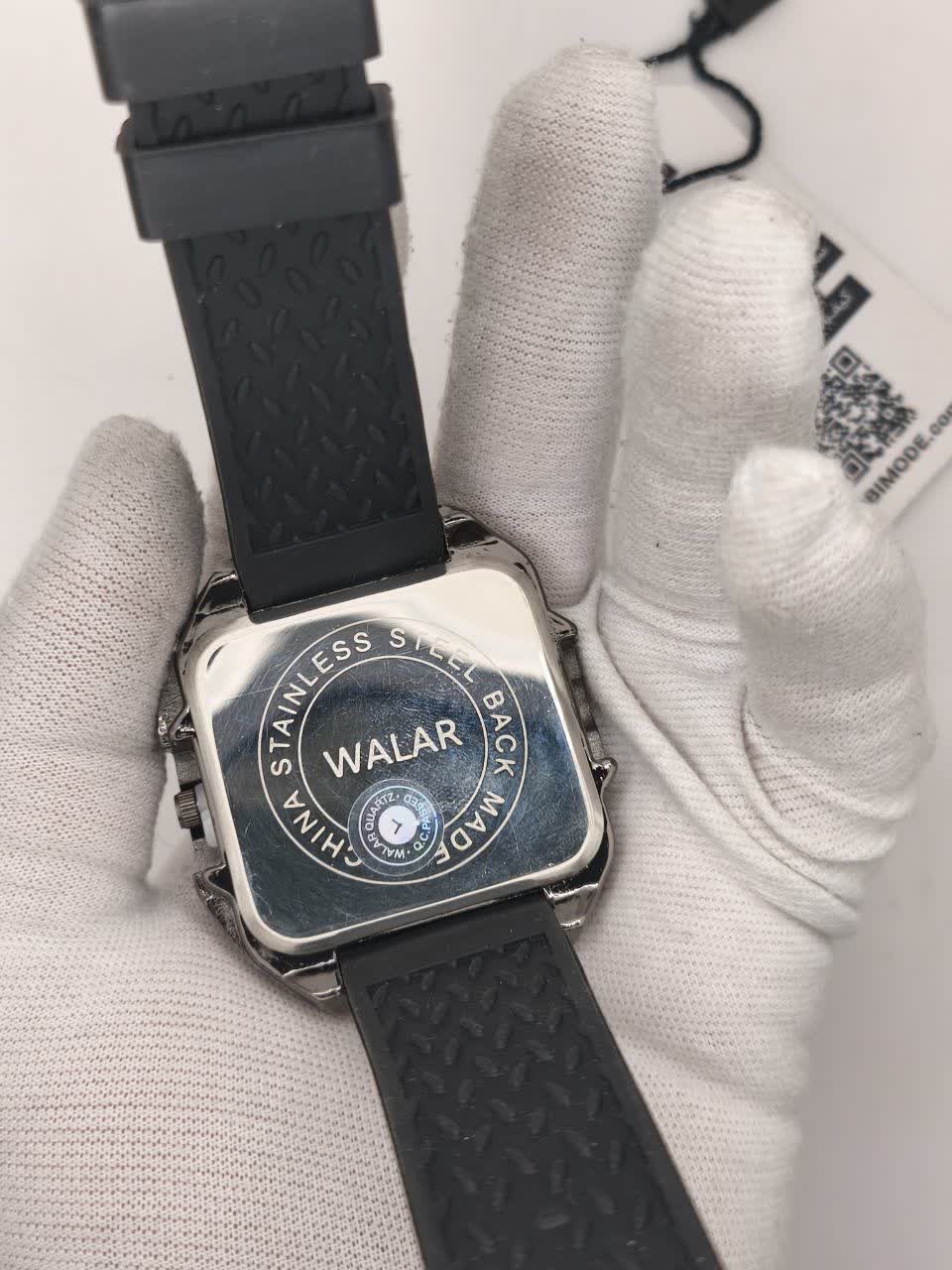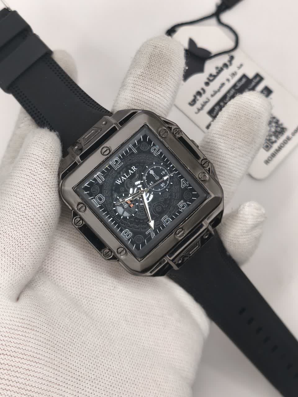 ساعت مچی مردانه والار WALAR طرح سه موتوره با بند سیلیکونی مشکی و صفحه مشکی انتخابی شیک و مدرن برای آقایان خوش سلیقه است. این مدل ارجینال شرکتی والار با موتور کوارتز دقت بالا و قاب استیل مقاوم طراحی شده و عقربه های شب تاب آن خوانایی عالی در شب را فراهم می کند. شیشه معدنی ضد خش و خاصیت ضد آب در کنار بند سیلیکونی ضد حساسیت پوستی و قفل سگکی کمربندی راحتی و دوام را تضمین می کند. فرم صفحه مربع جلوه ای خاص و متفاوت به استایل شما می بخشد و جذابیت دستان شما را دوچندان می کند. این محصول با کیفیت را می توانید از فروشگاه اینترنتی روبی مد با اطمینان تهیه کنید.