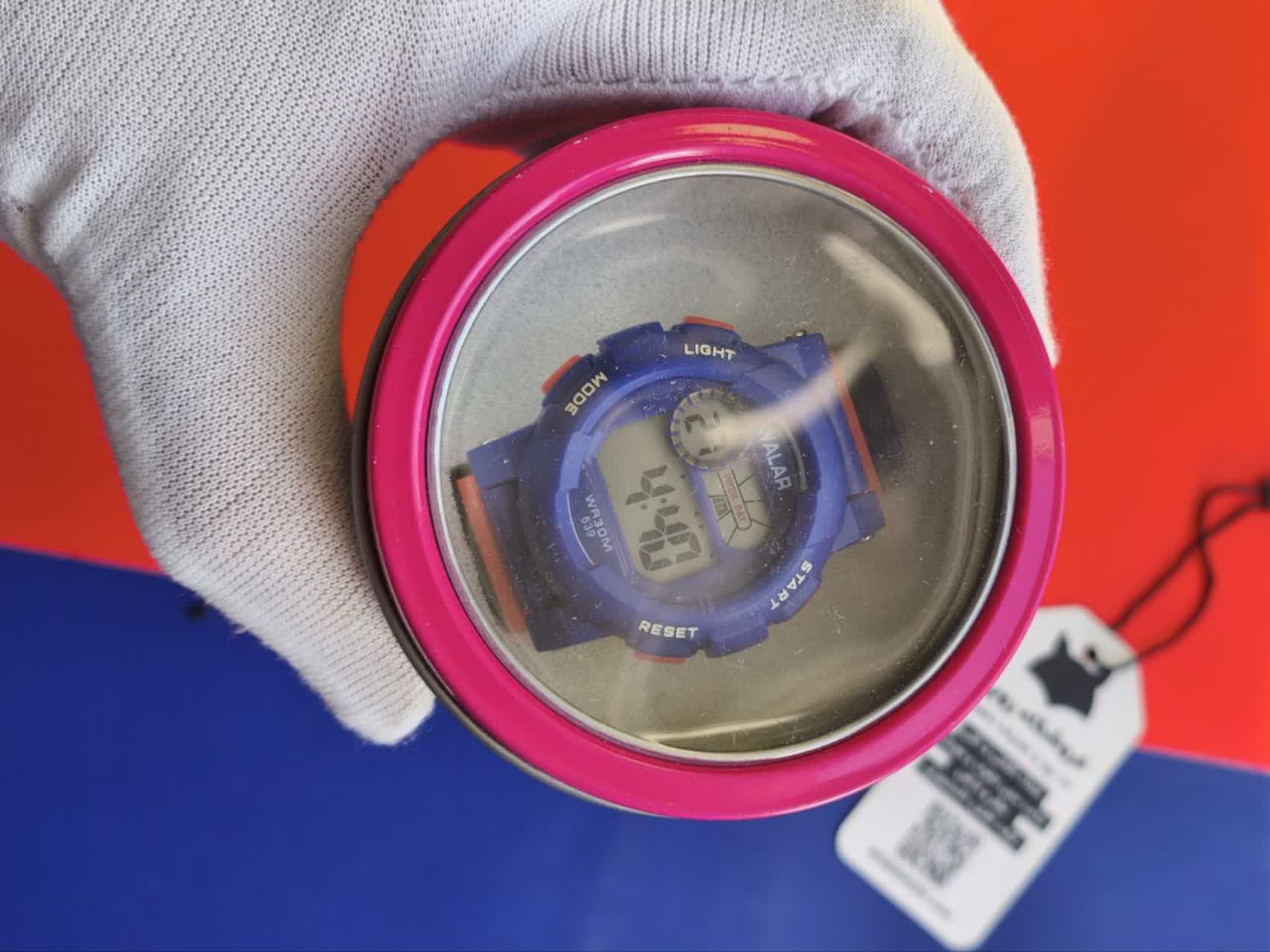 ساعت بچگانه کامپیوتری برند والار همراه با قوطی فلزی محکم و کاربردی انتخابی جذاب و بادوام برای کودکان است. این مدل ارجینال شرکتی والار با موتور کوارتز دقت بالا و قابلیت ضد آب صددرصد برای استفاده روزمره کاملا مناسب است. صفحه چراغ دار امکان دید در شب را فراهم می کند و بند سیلیکونی ضد حساسیت با قفل سگکی کمربندی راحتی و امنیت را تضمین می کند. این ساعت در رنگ های متنوع عرضه می شود و جهت انتخاب رنگ می توانید پیام دهید. جذابیت دستان کودک شما با این محصول از فروشگاه اینترنتی روبی مد دوچندان خواهد شد.